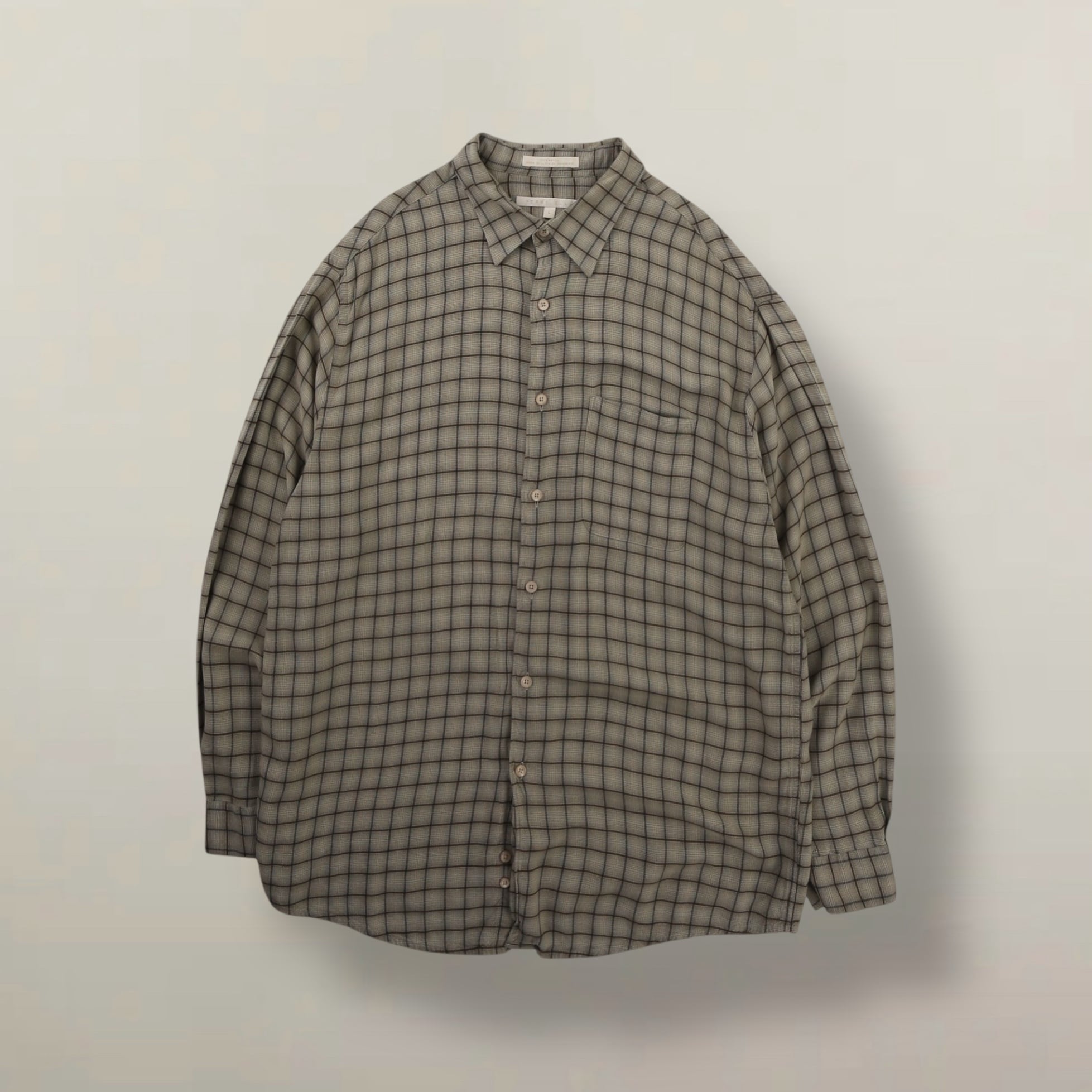 1990's "PERRY ELLIS" checkered rayon shirt【MM-1145】