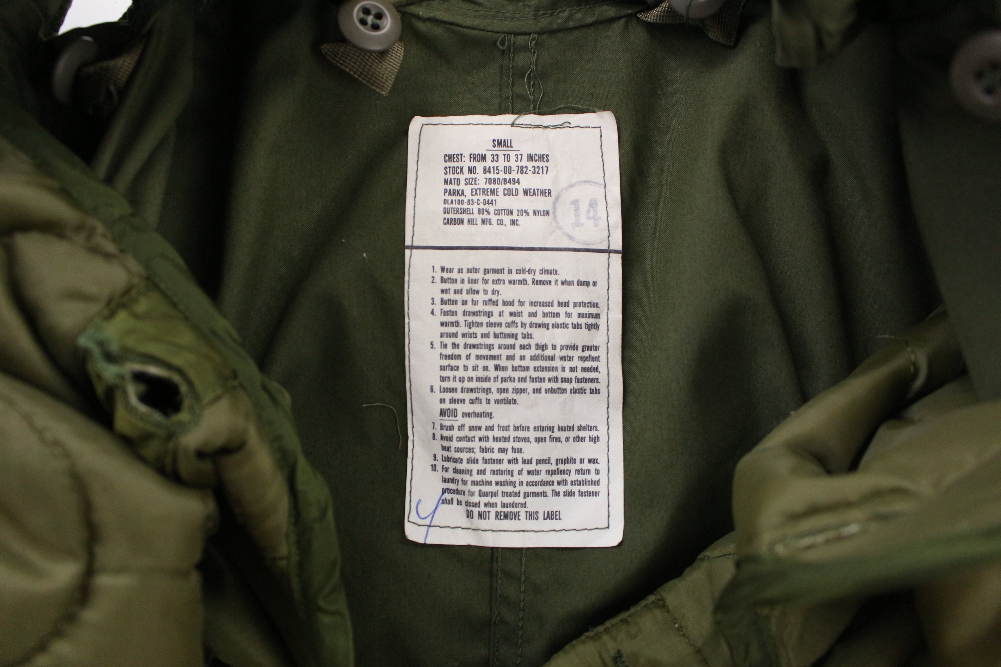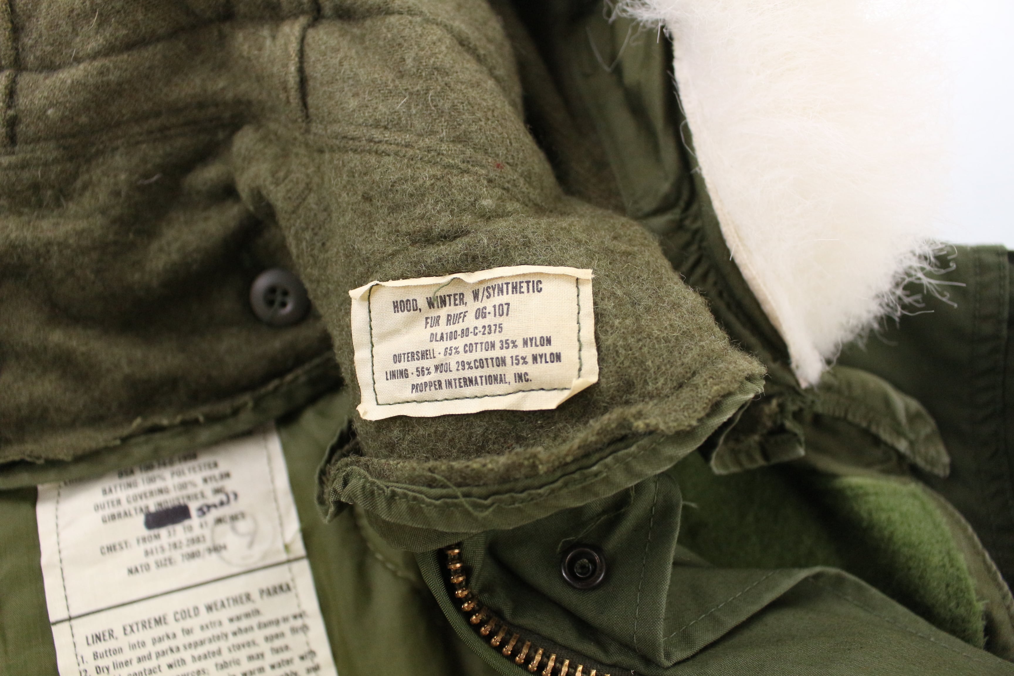 シェルが1983年製。ライナーが1974年製。フードが1980年製となっております。