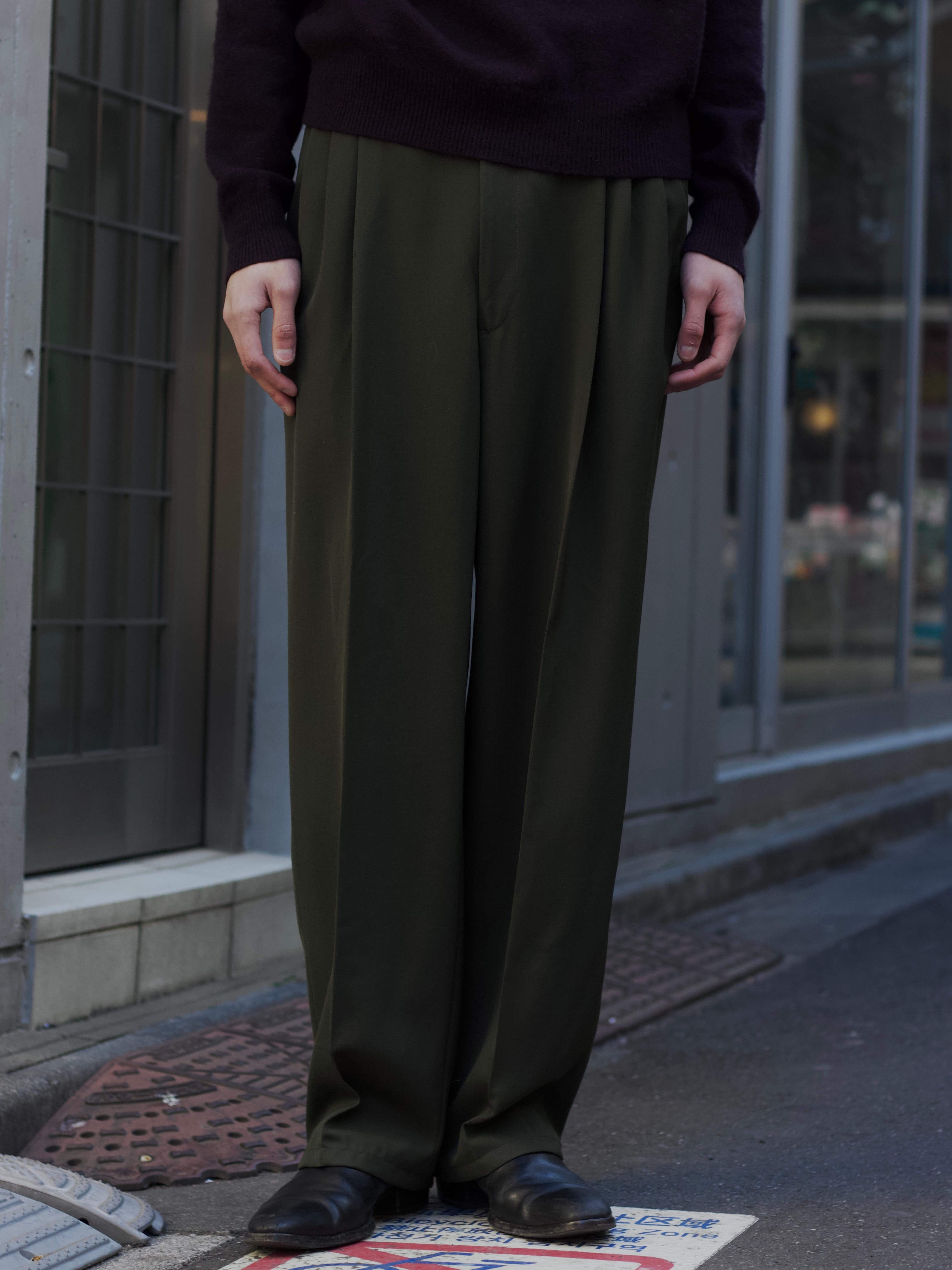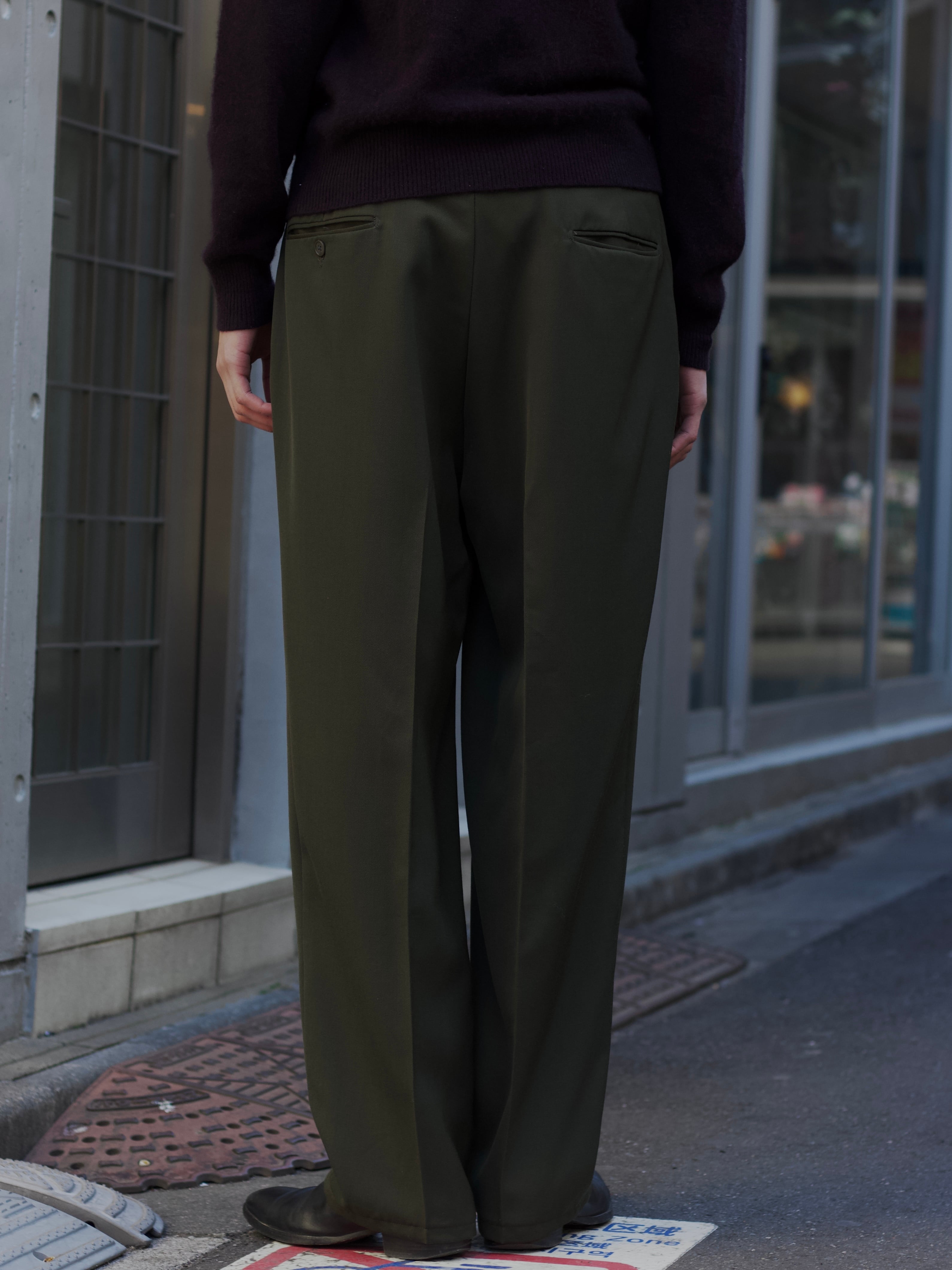 1980s vintage "GIVENCHY MONSIER" wool gabardine 3-tuck wide slacks【CU-9054】