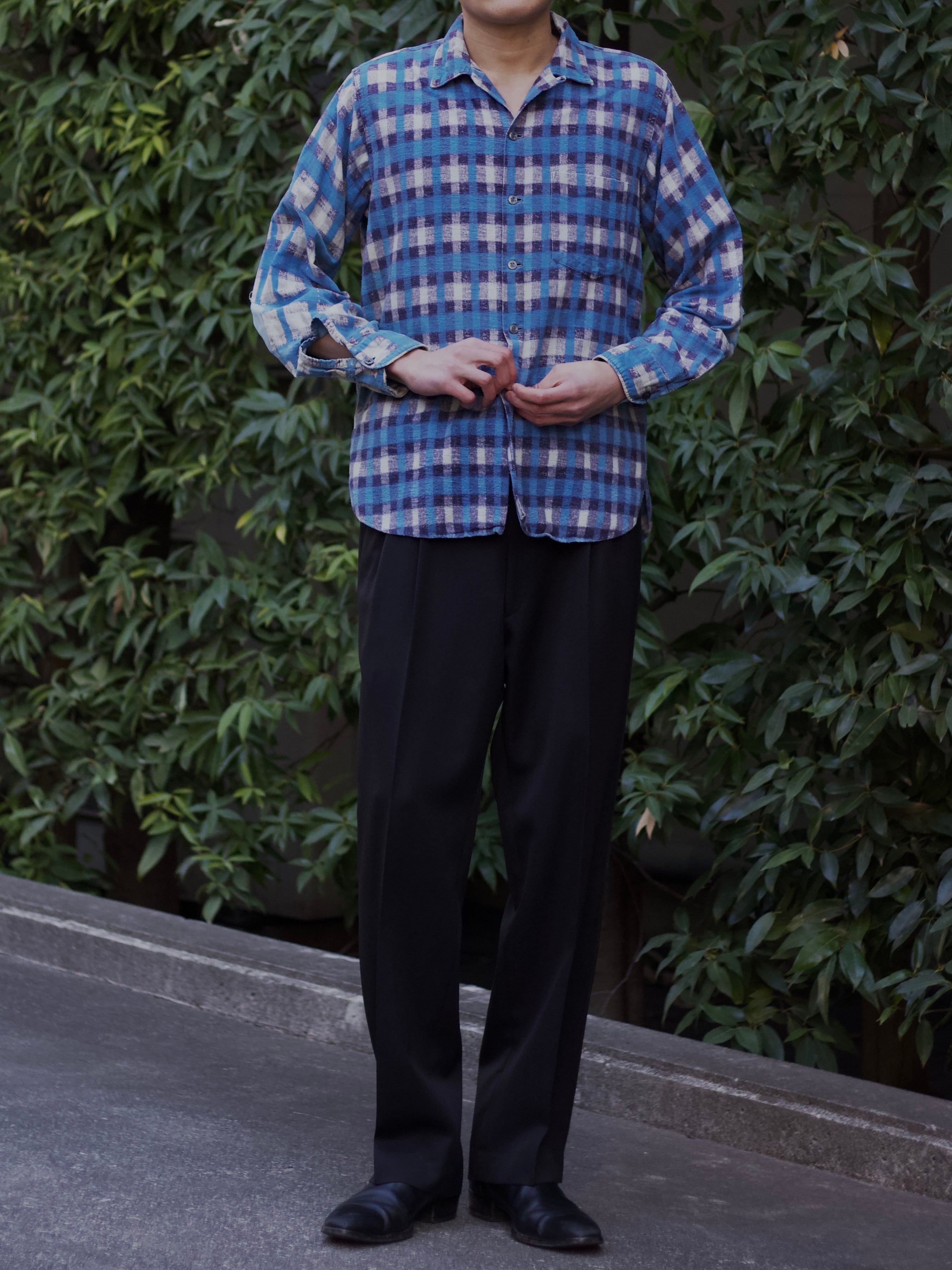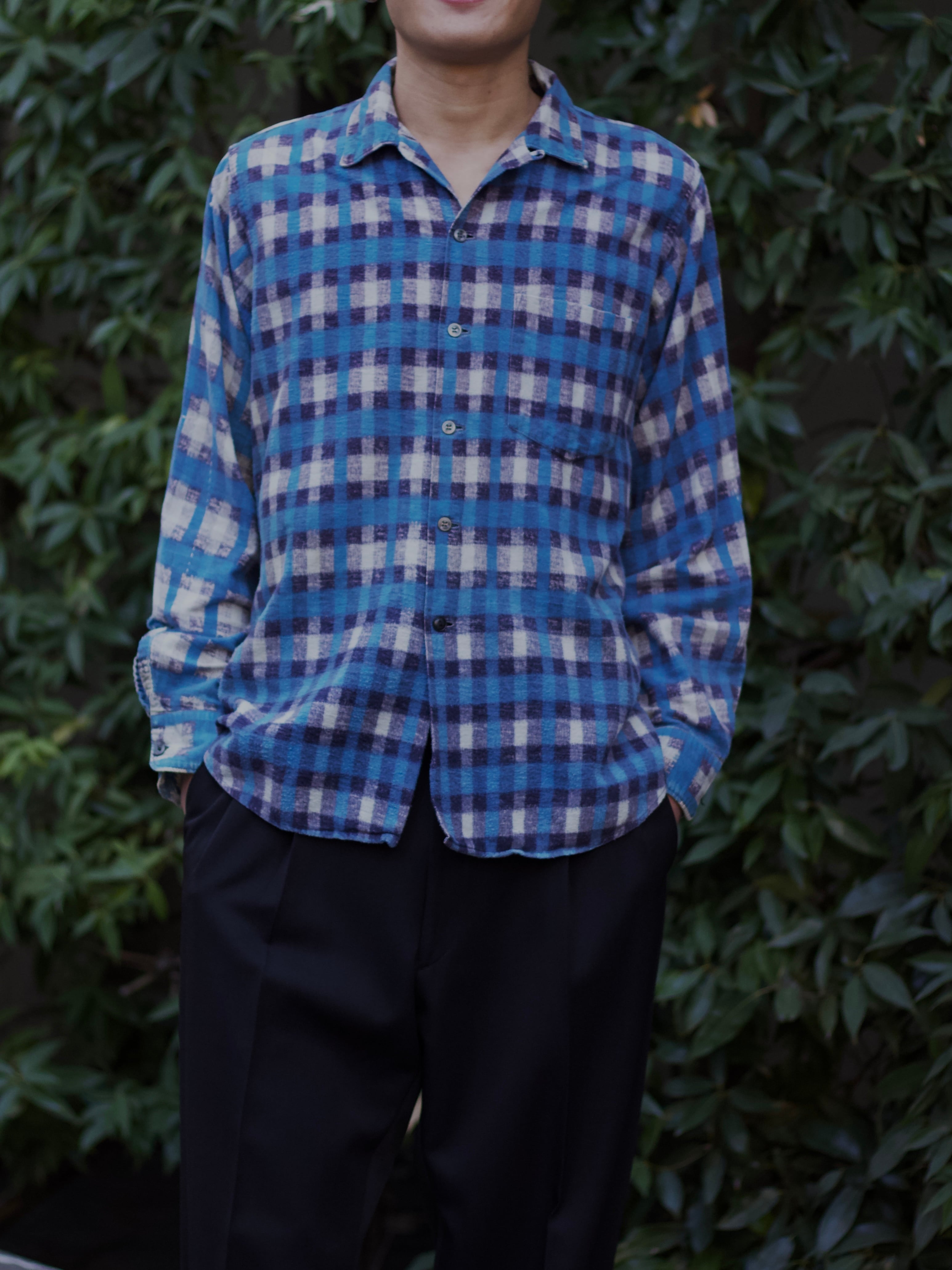 1950s vintage "Cunningham" nice repair check shirts 【CU-9055】