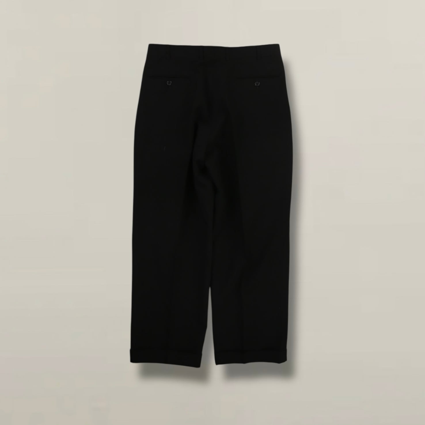 ブラックカラーのモダンな色使いながら、腰回りに3タック入ることで、たっぷり履くことができるワイドシルエット。