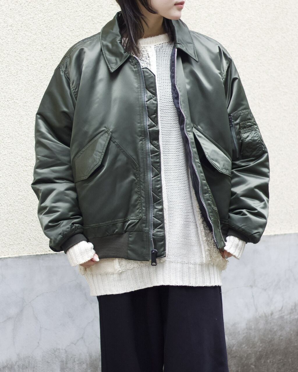 CWUフライトジャケットをベースに再構築されたミリタリーパデッドジャケット。