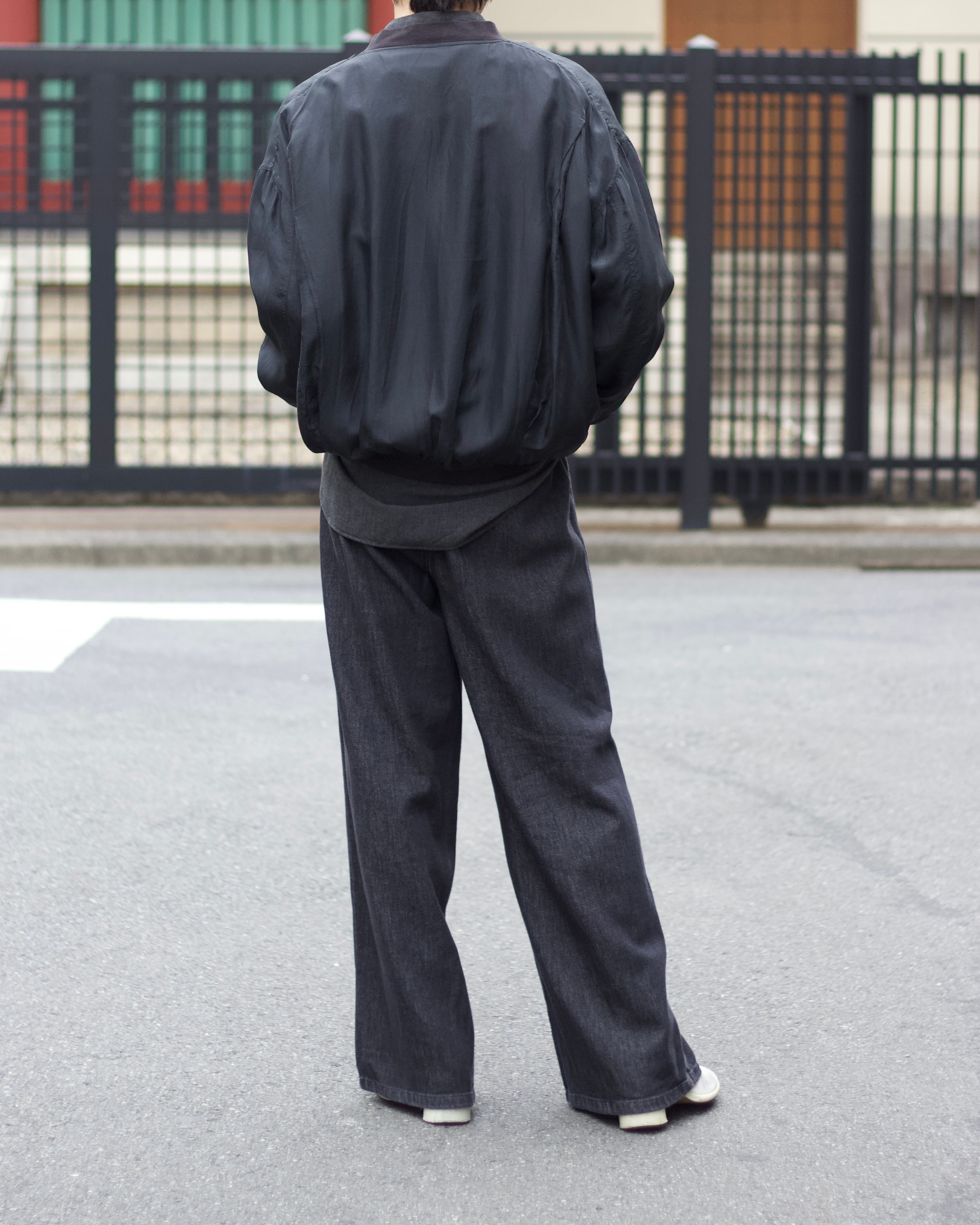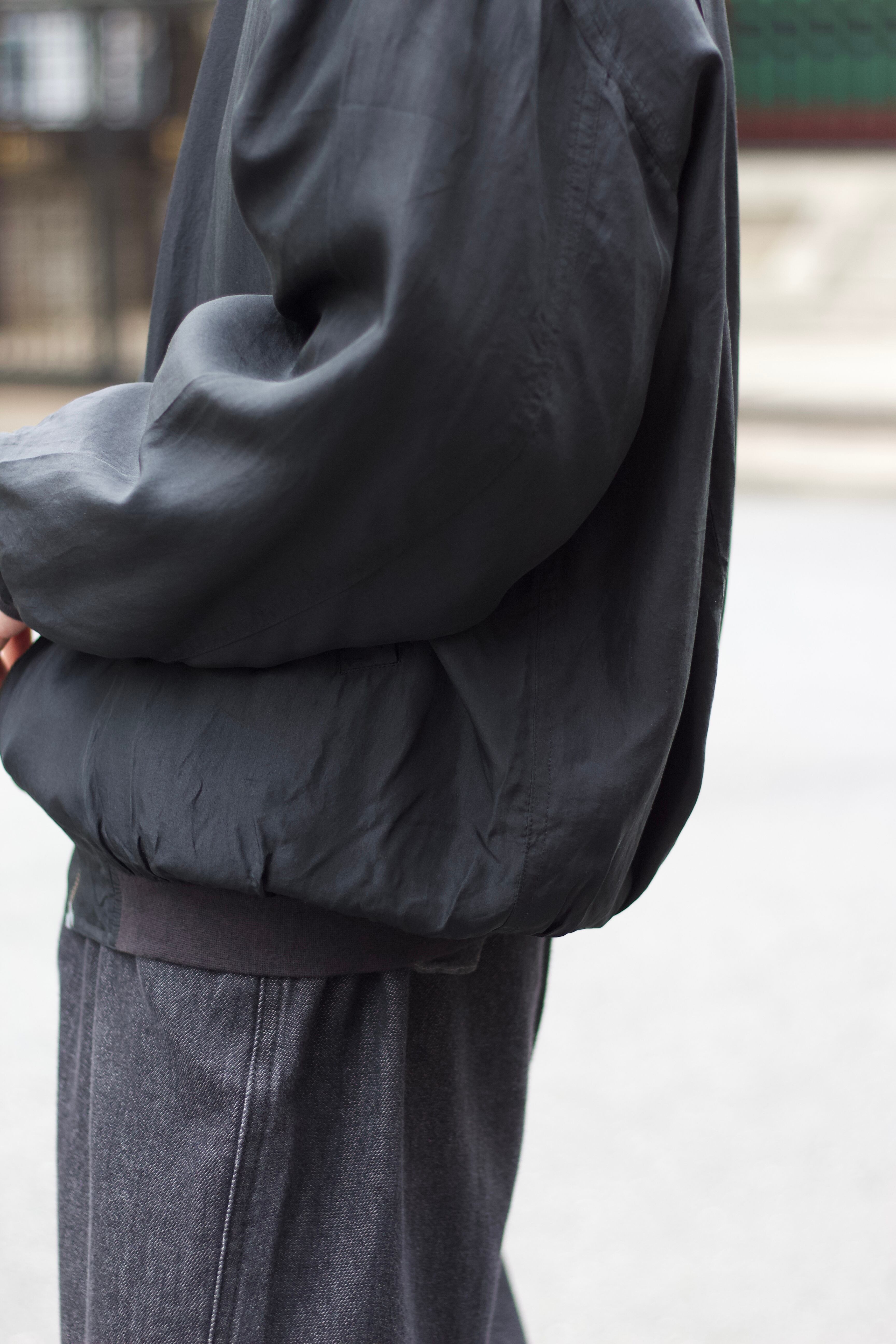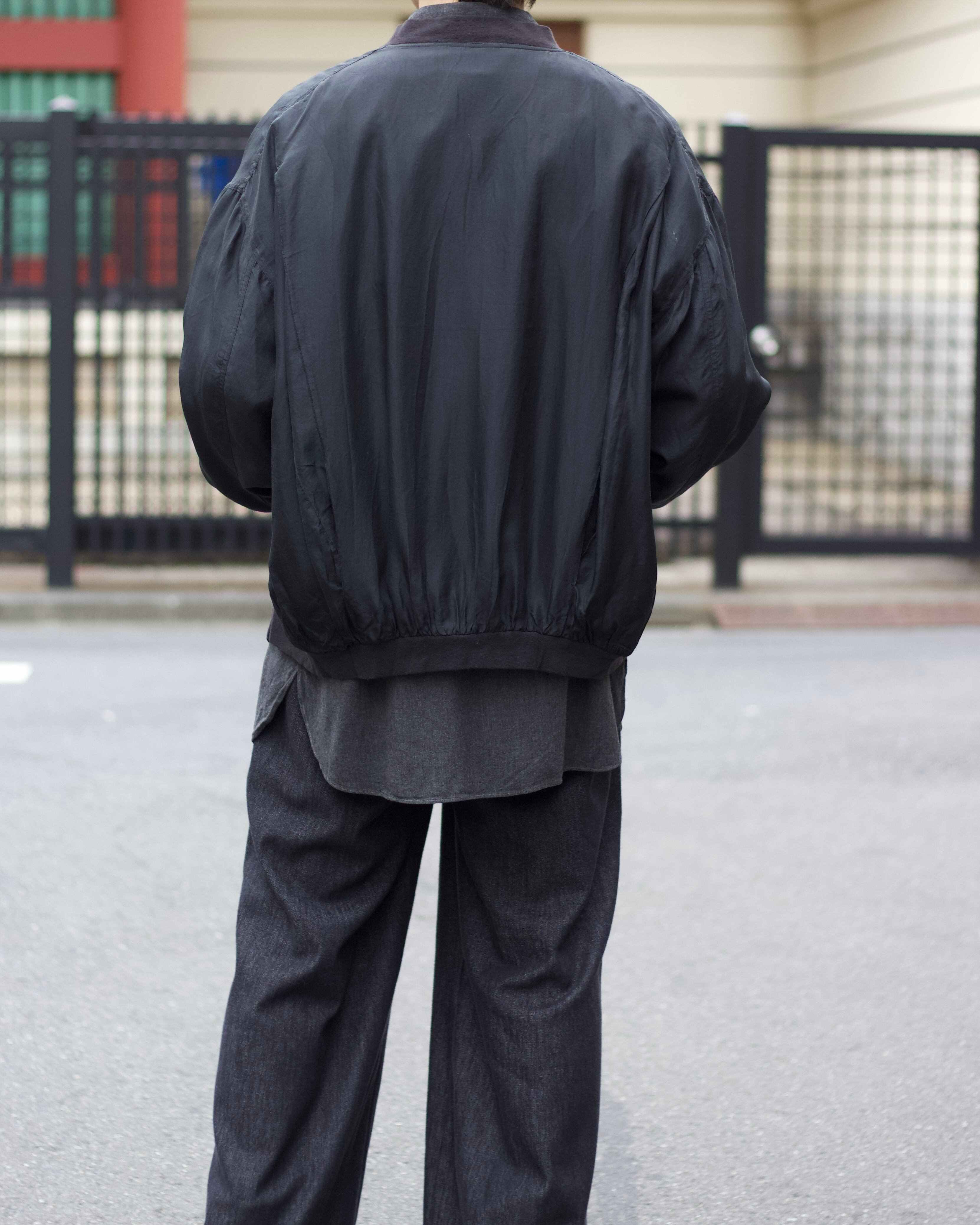 個人的にも愛用しておりますが極薄で兎に角軽く羽織りやすいブルゾン。しっとりと滑らかな素材感が癖になると思います☺︎