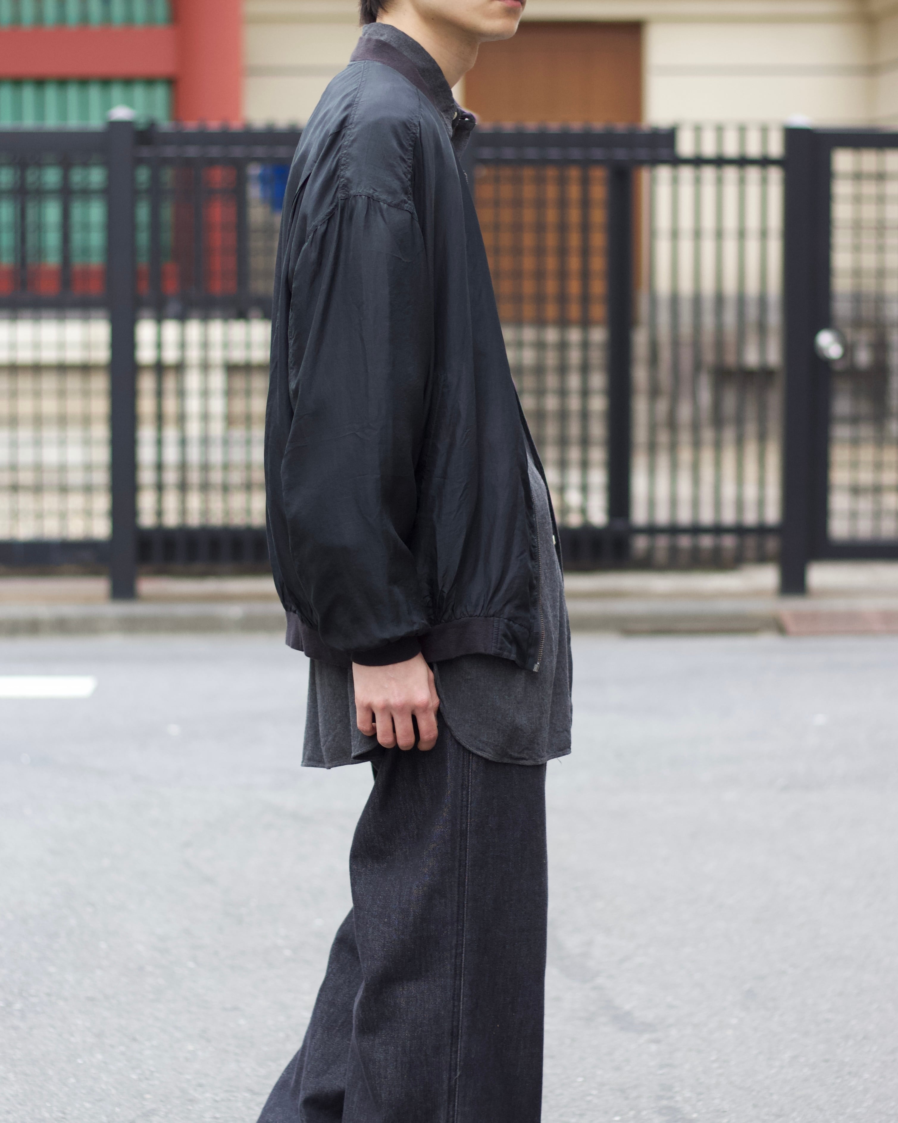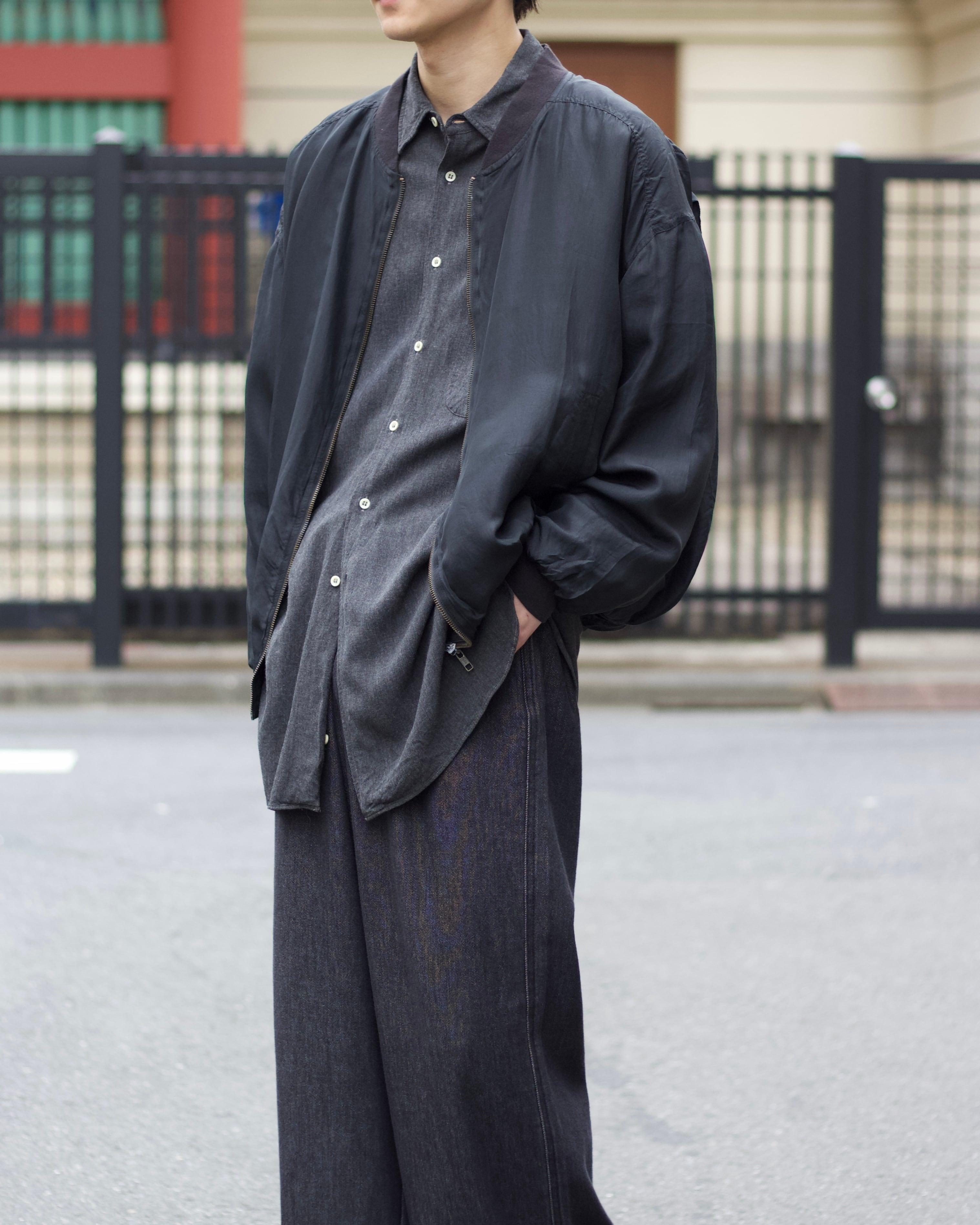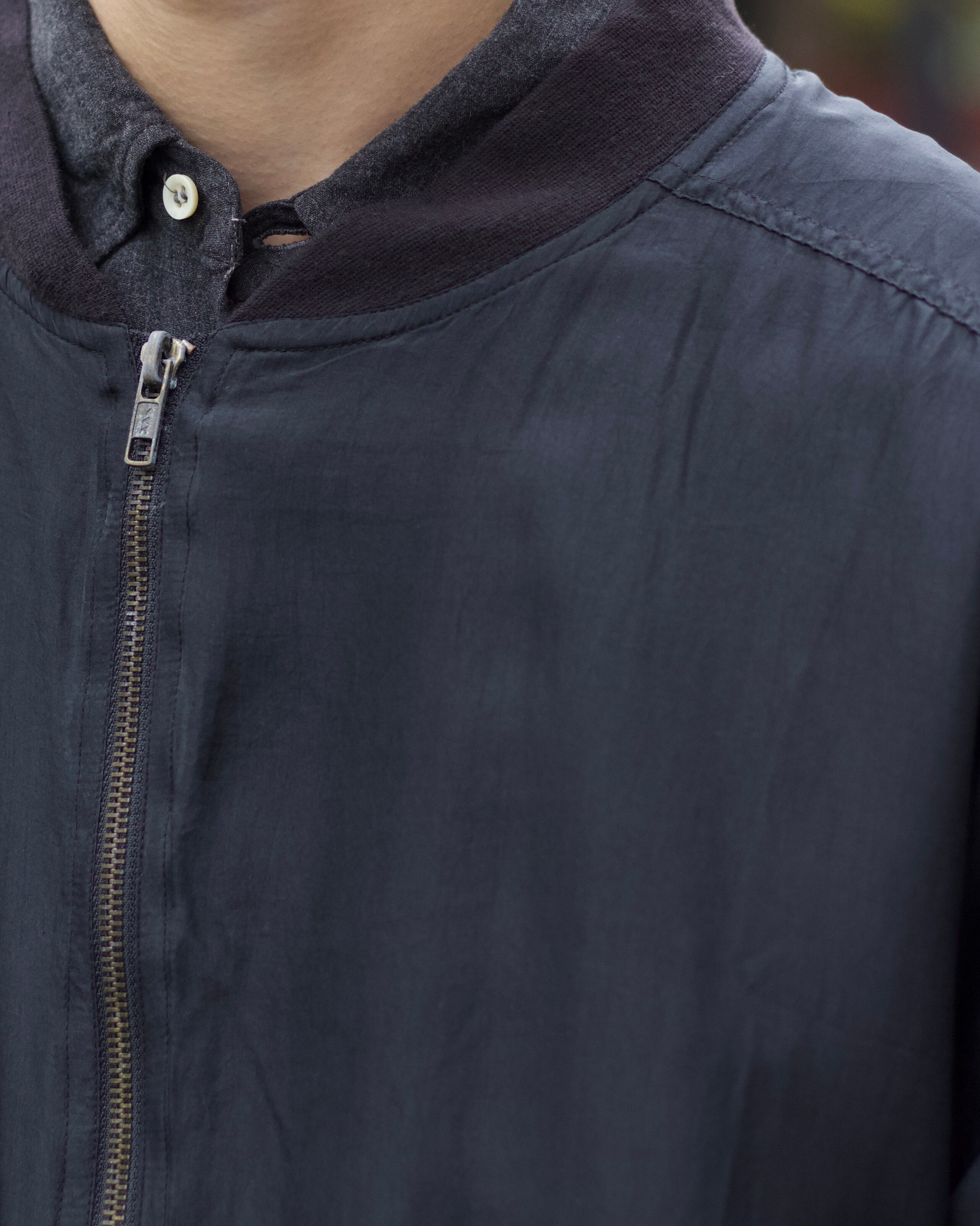個人的にも愛用しておりますが極薄で兎に角軽く羽織りやすいブルゾン。しっとりと滑らかな素材感が癖になると思います☺︎