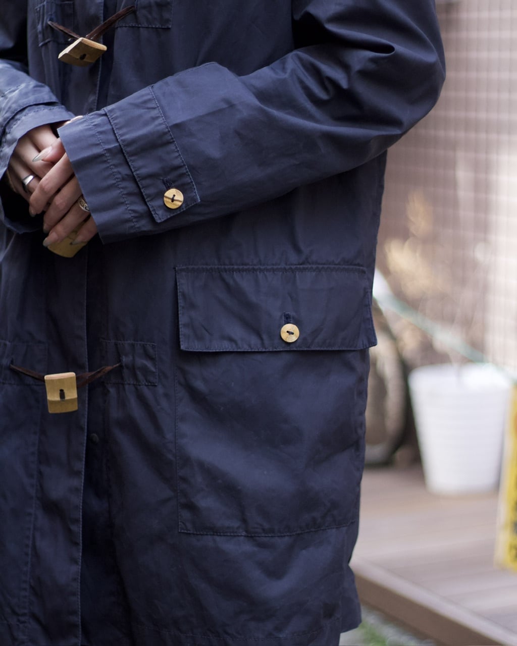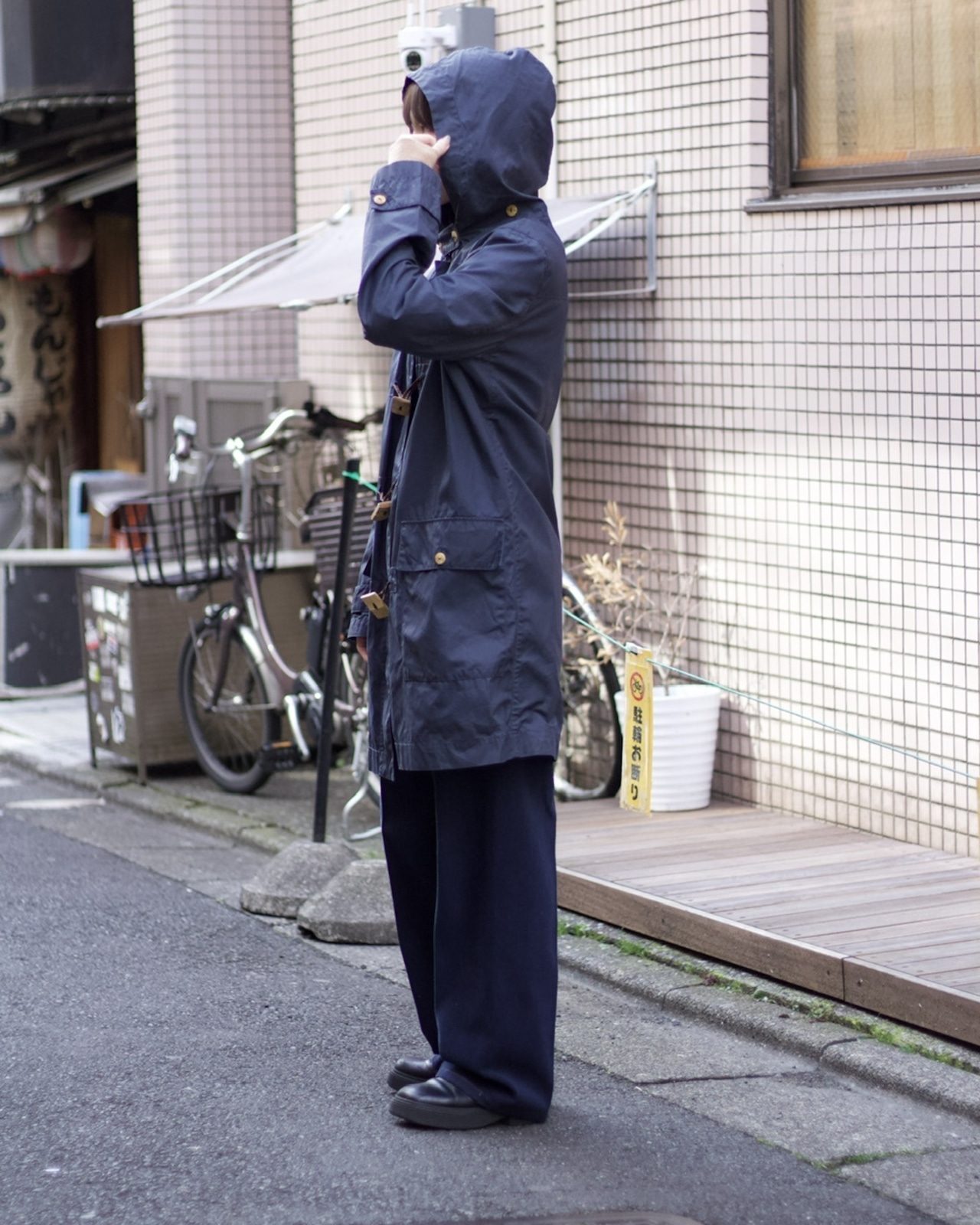 フード付きで実用性も高く、秋冬はもちろん、春先のライトアウターとしても活躍するかと〇