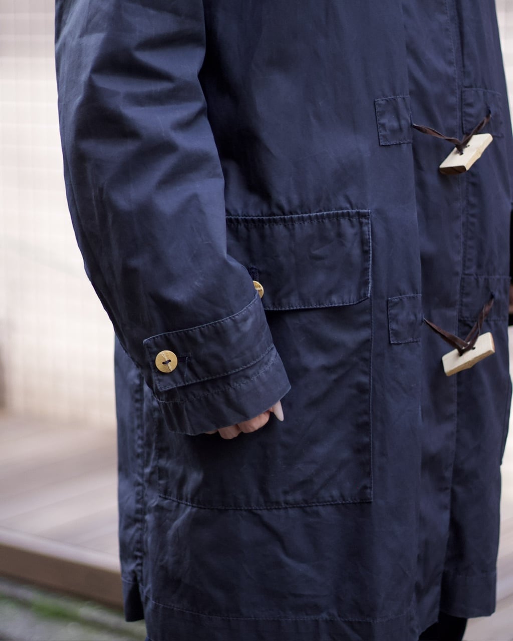 フロントはトグル仕様で無駄を削ぎ落としたディテールが都会的な雰囲気を演出。