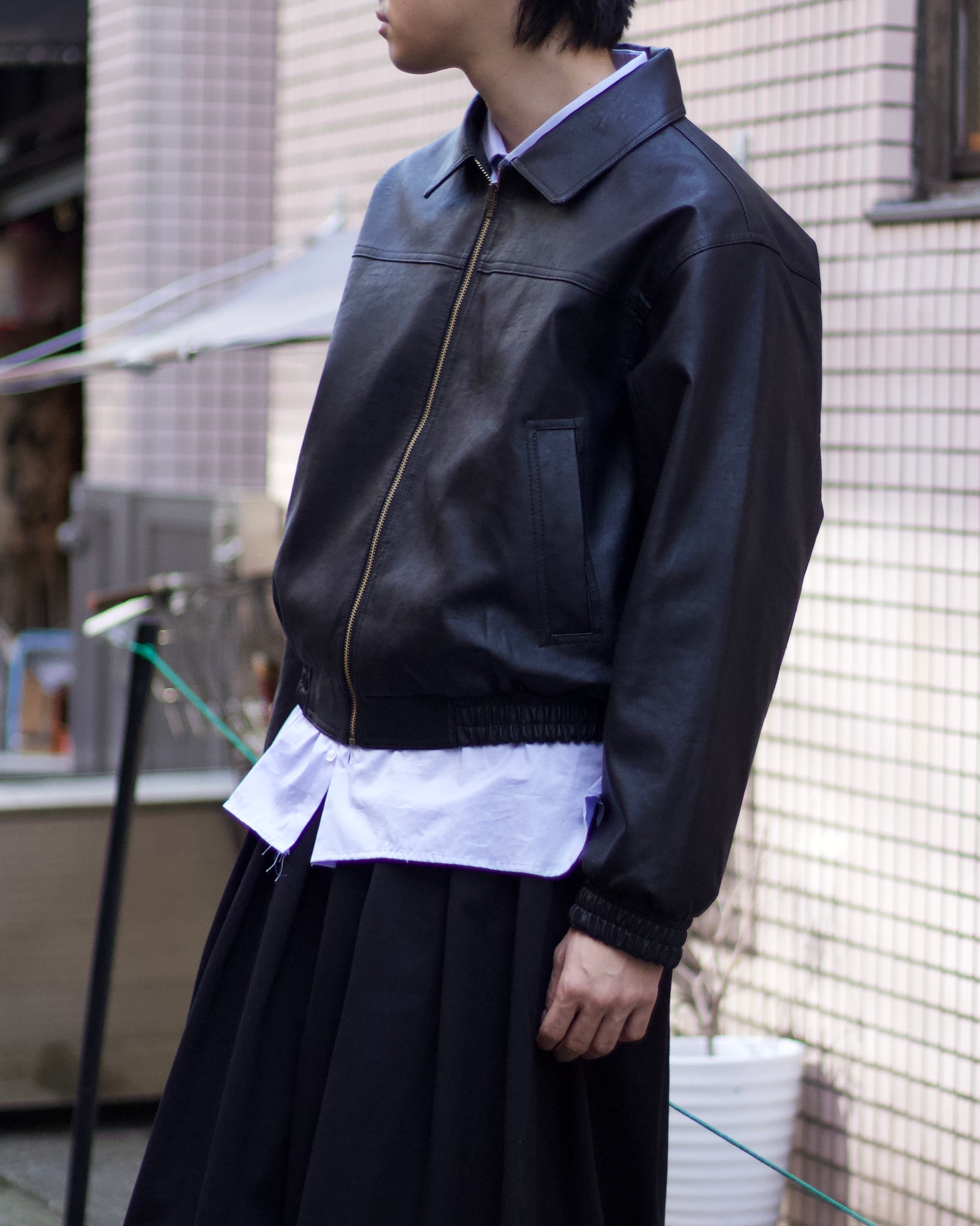 フェイクレザーのブルゾンが入荷。