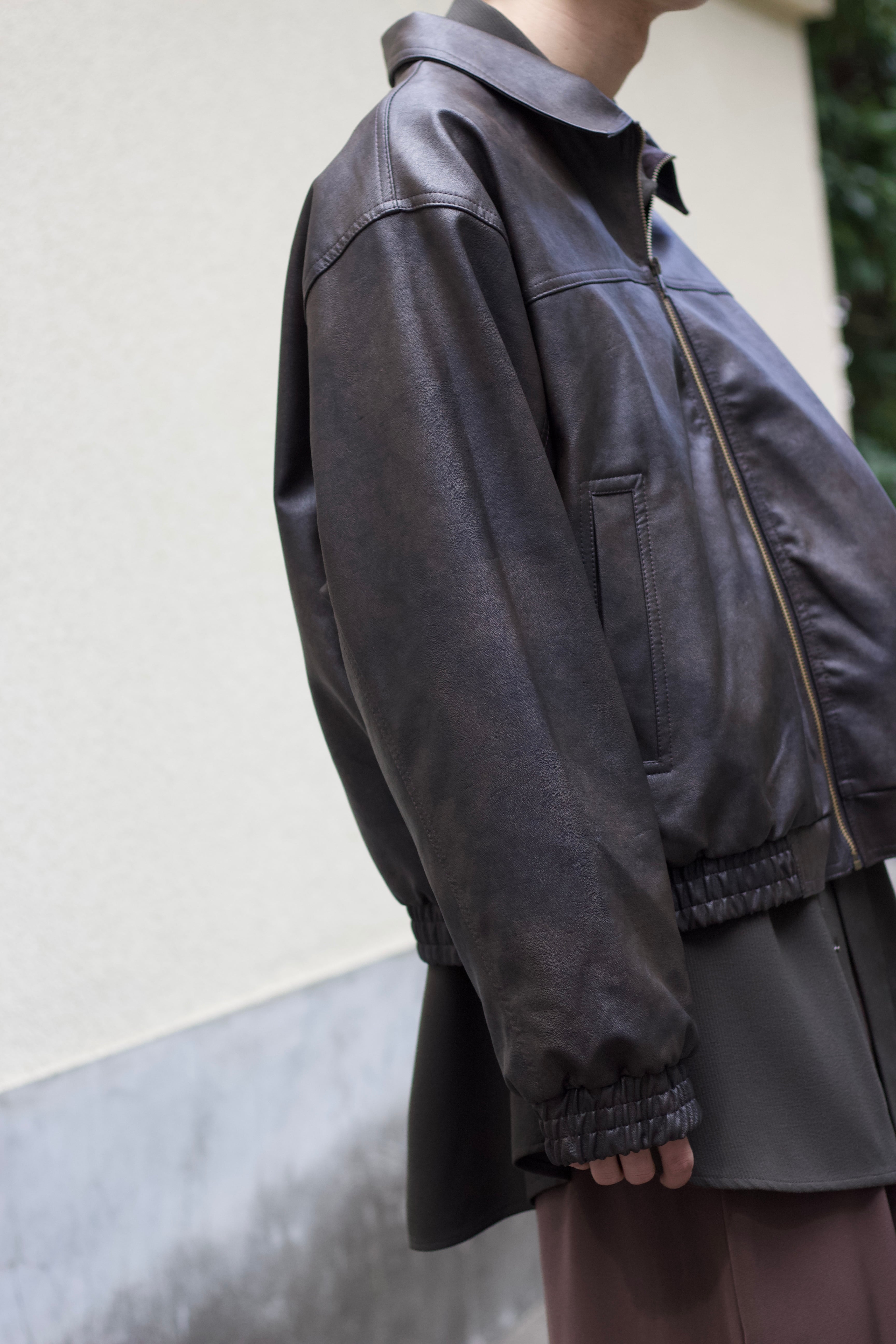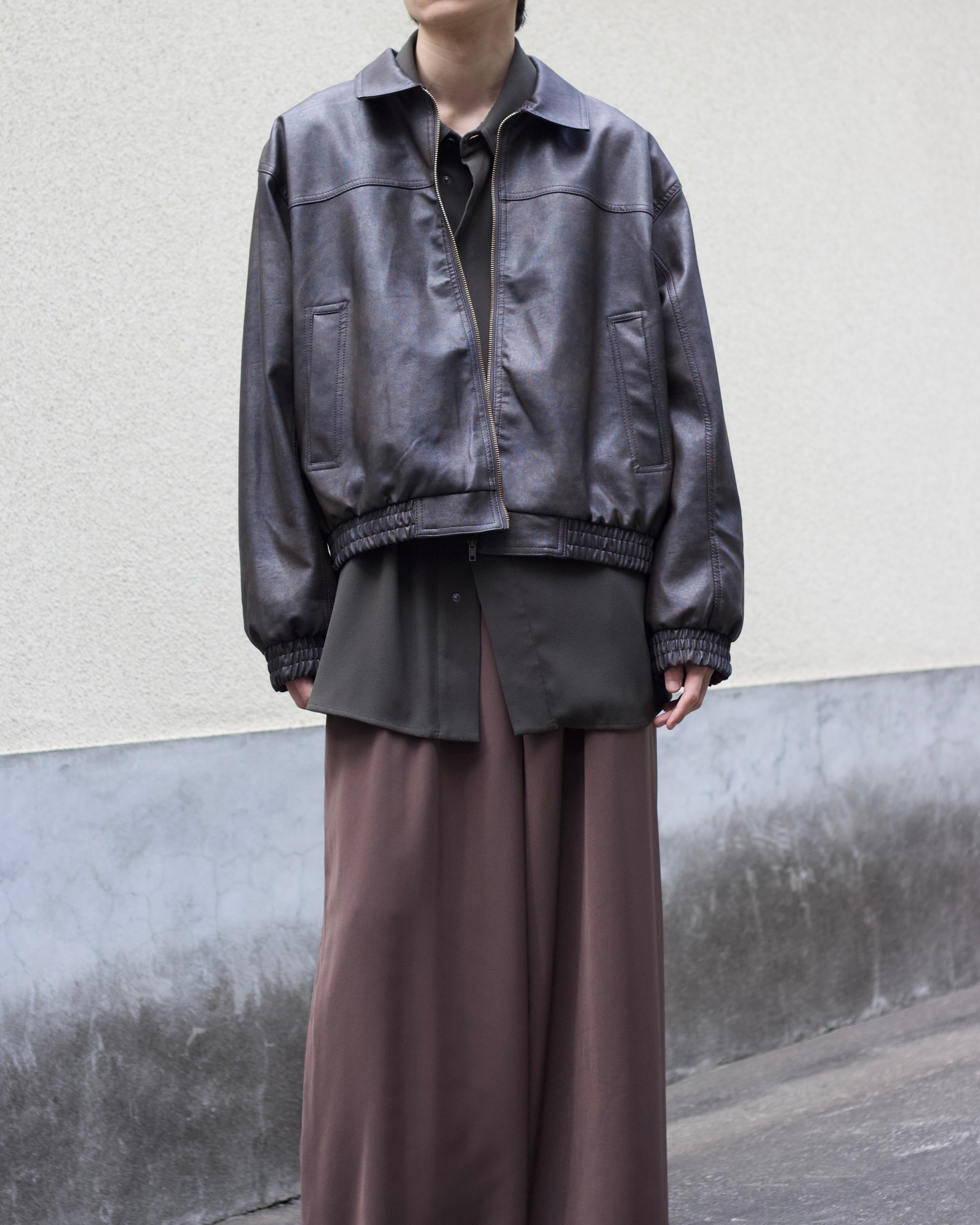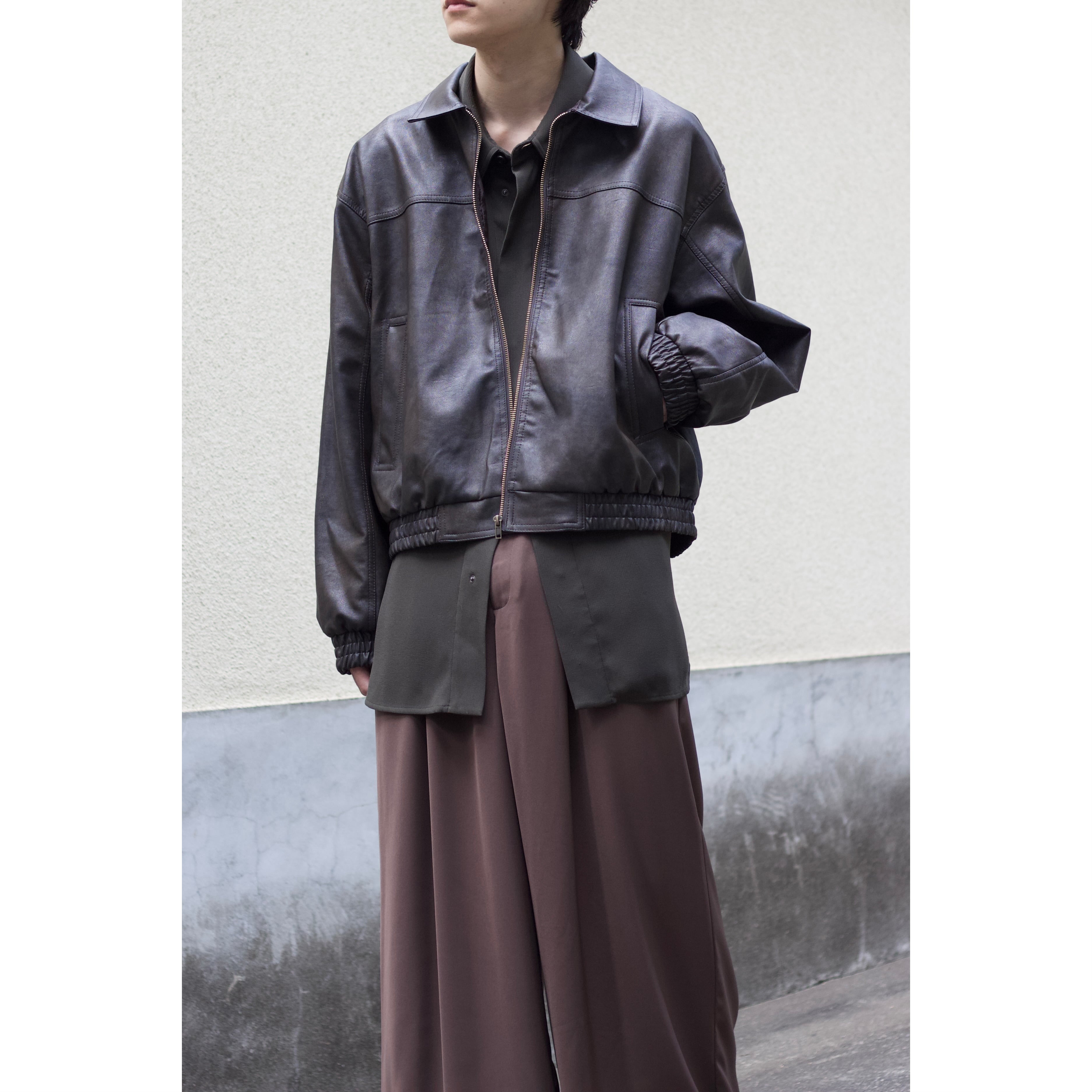faux leather lib design fade zip blouson【OT-22001】