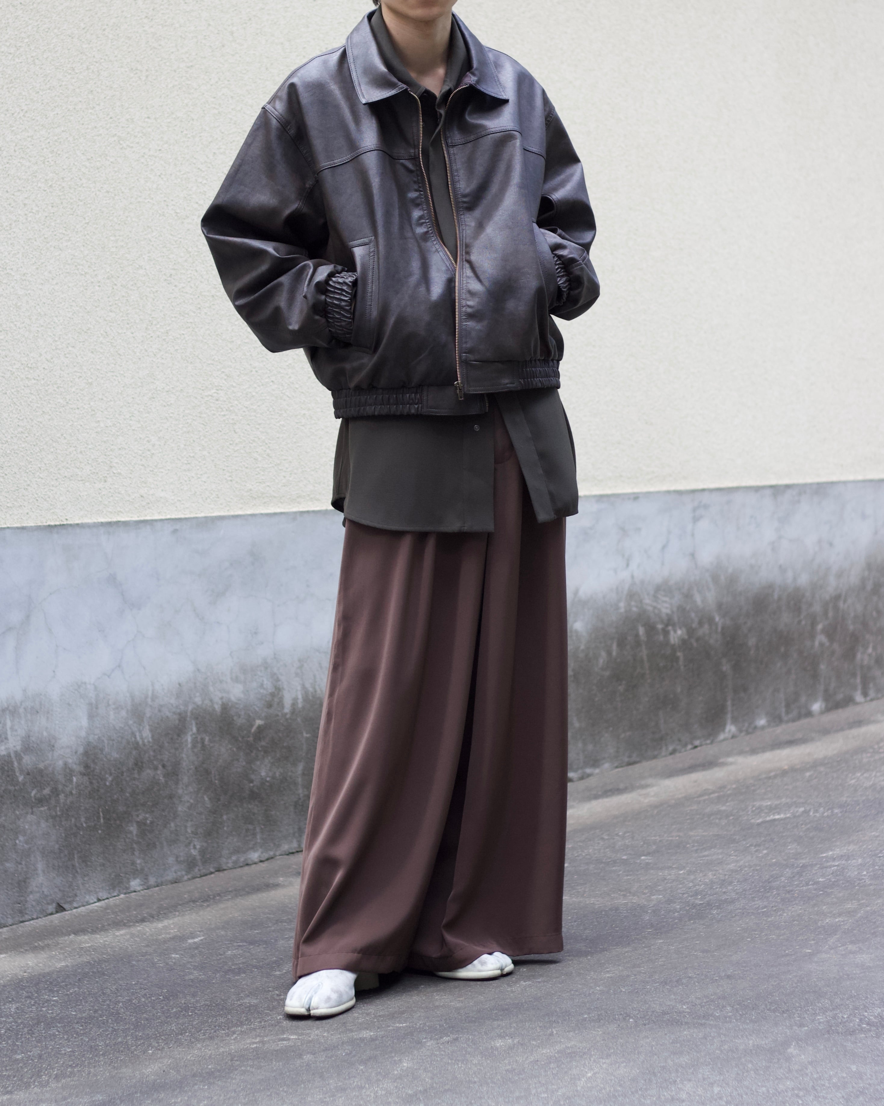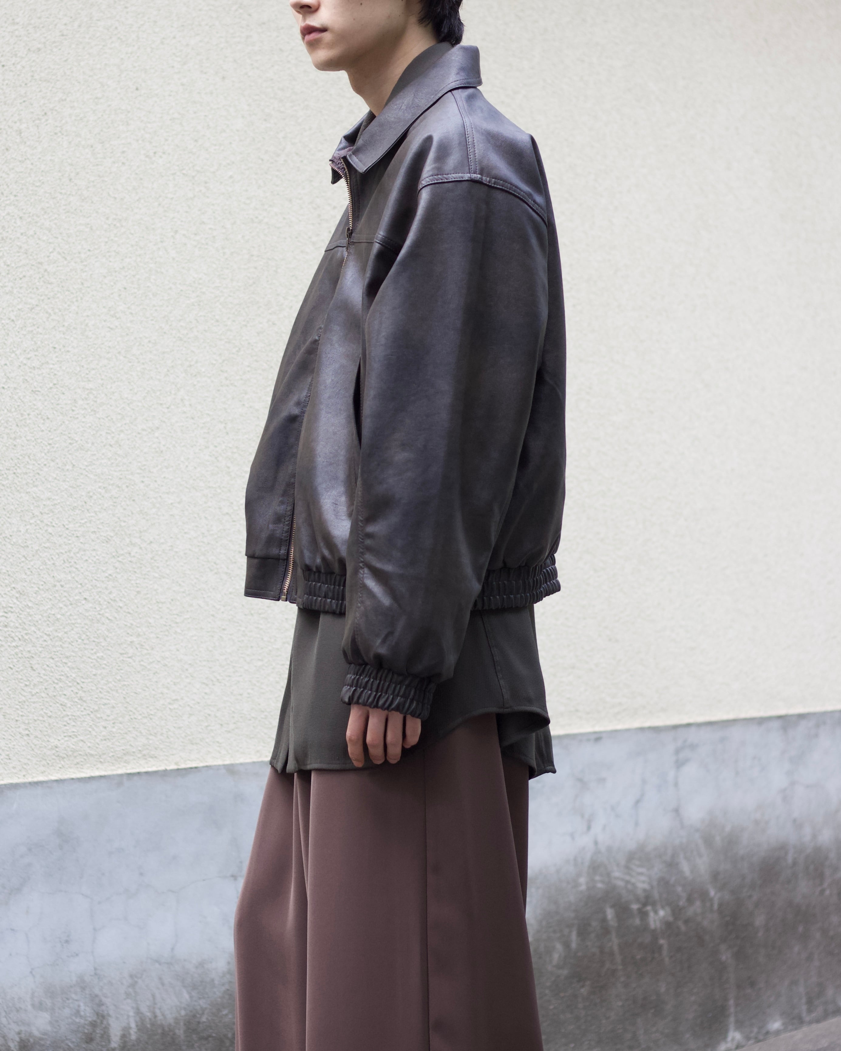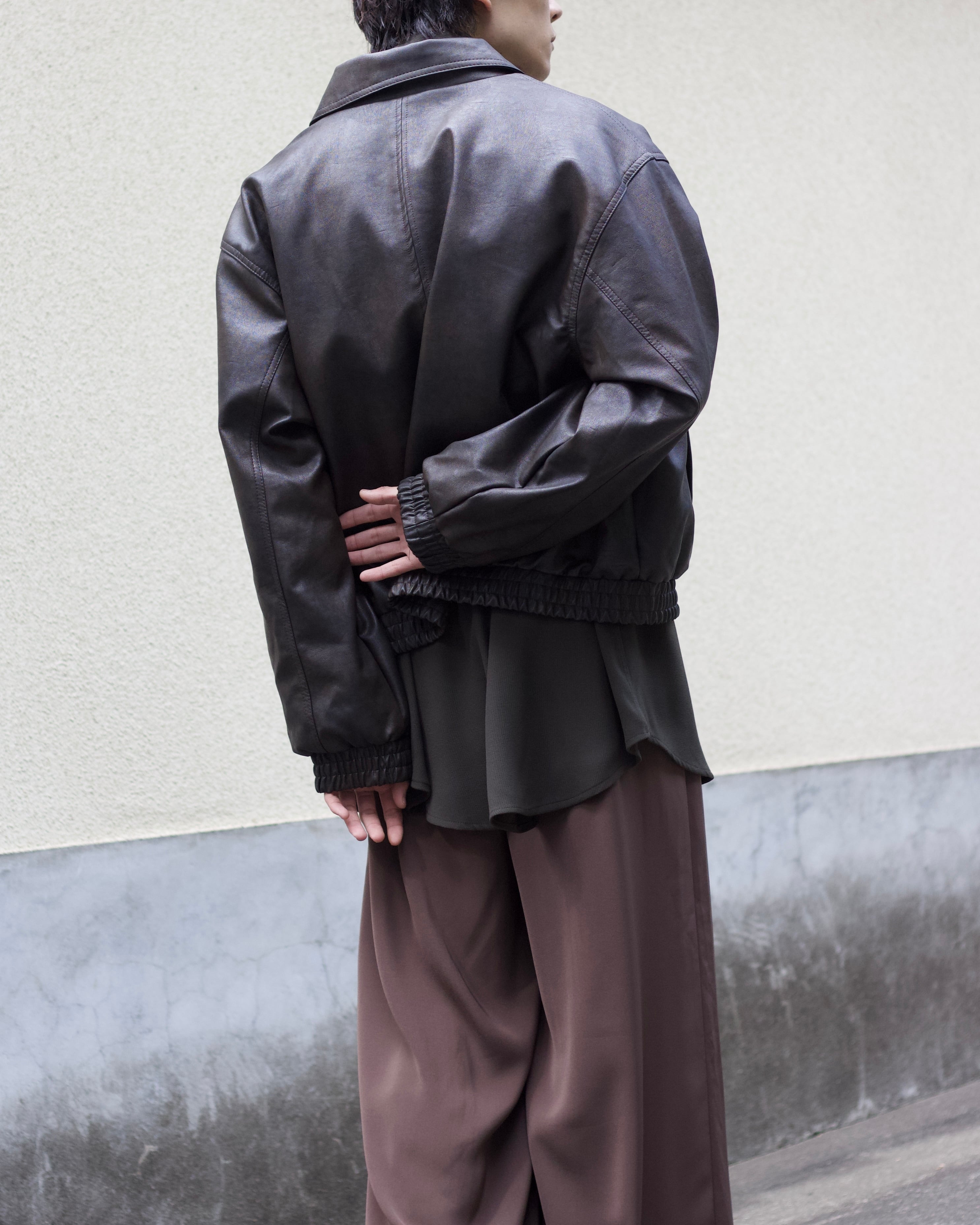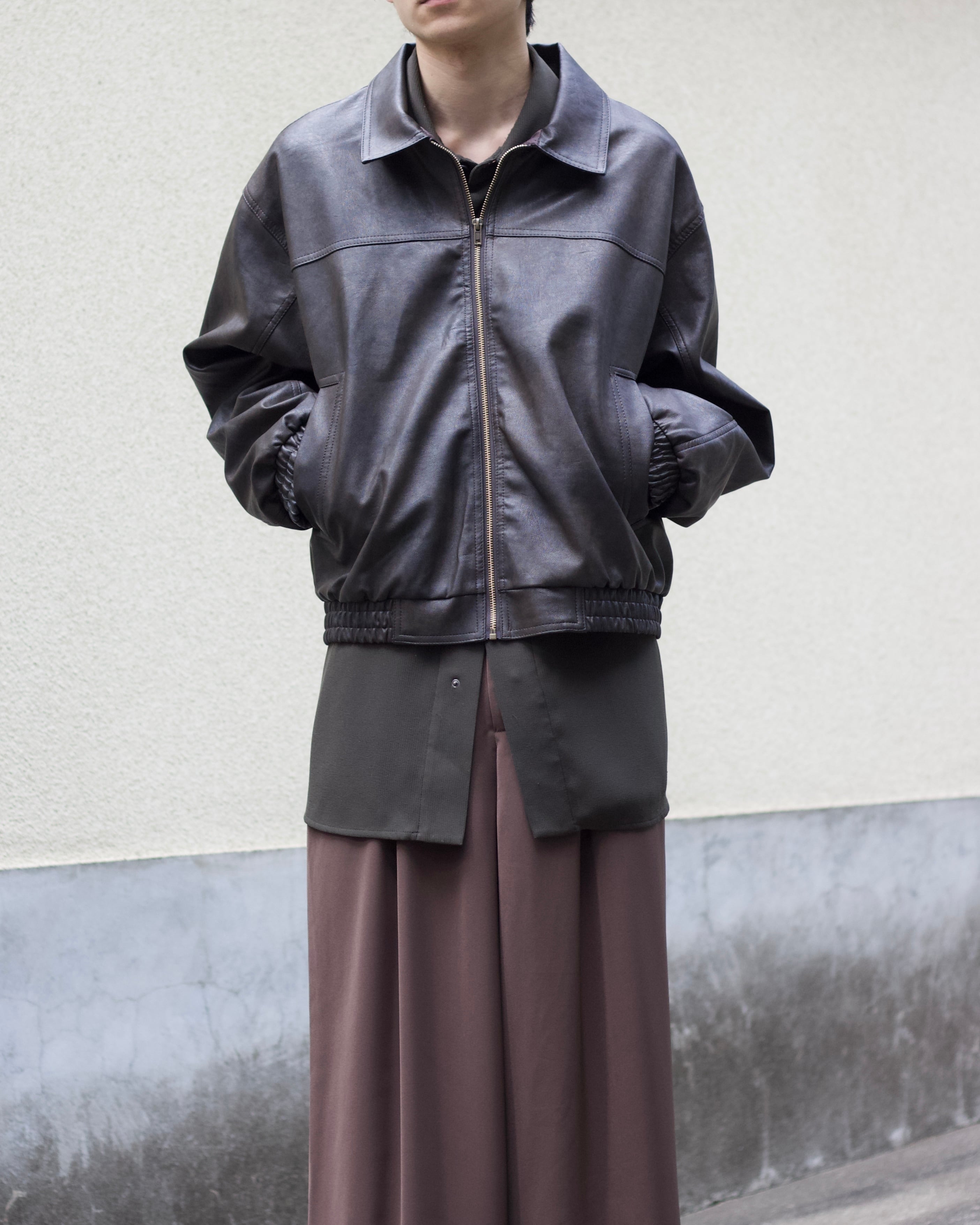 faux leather lib design fade zip blouson【OT-22001】