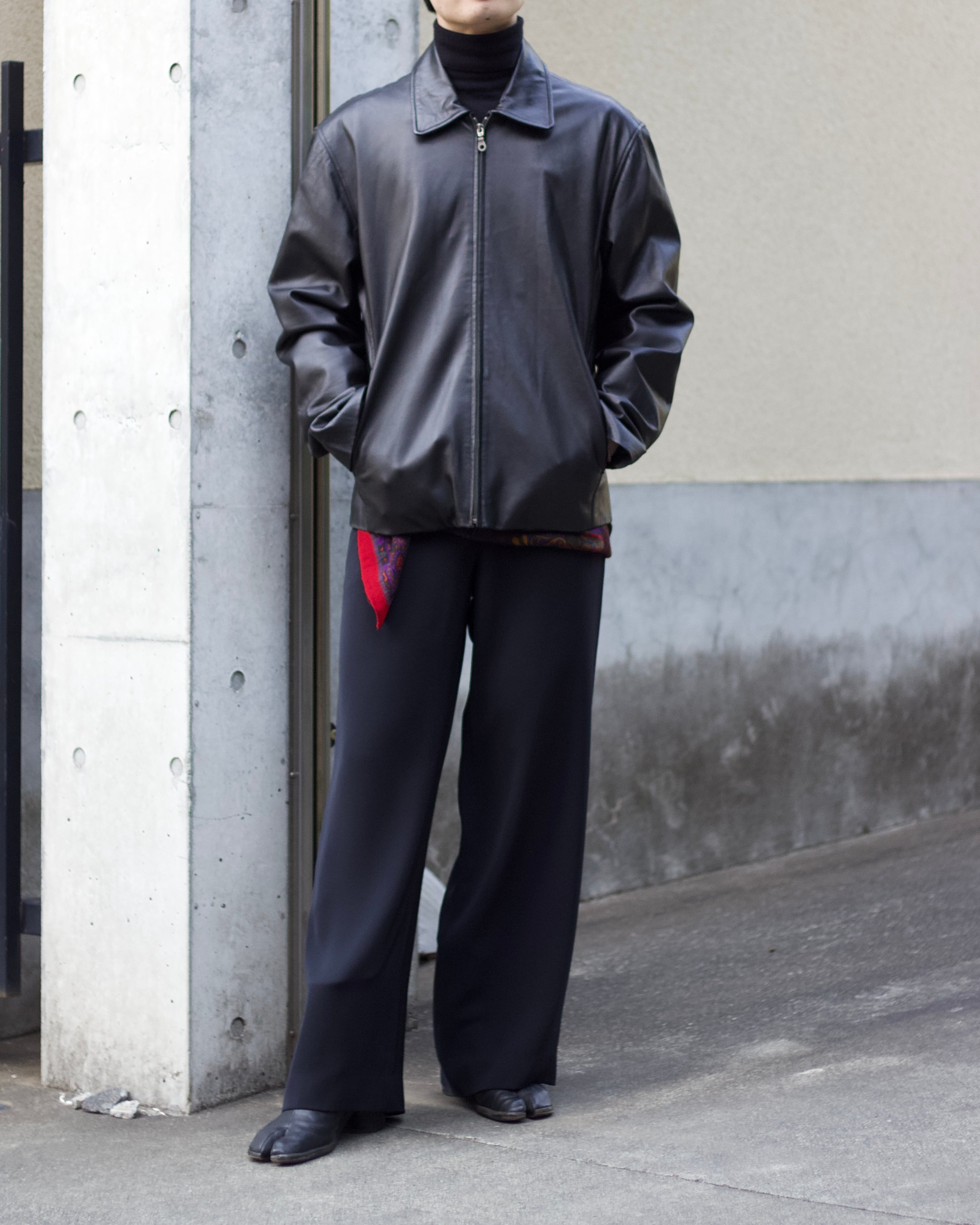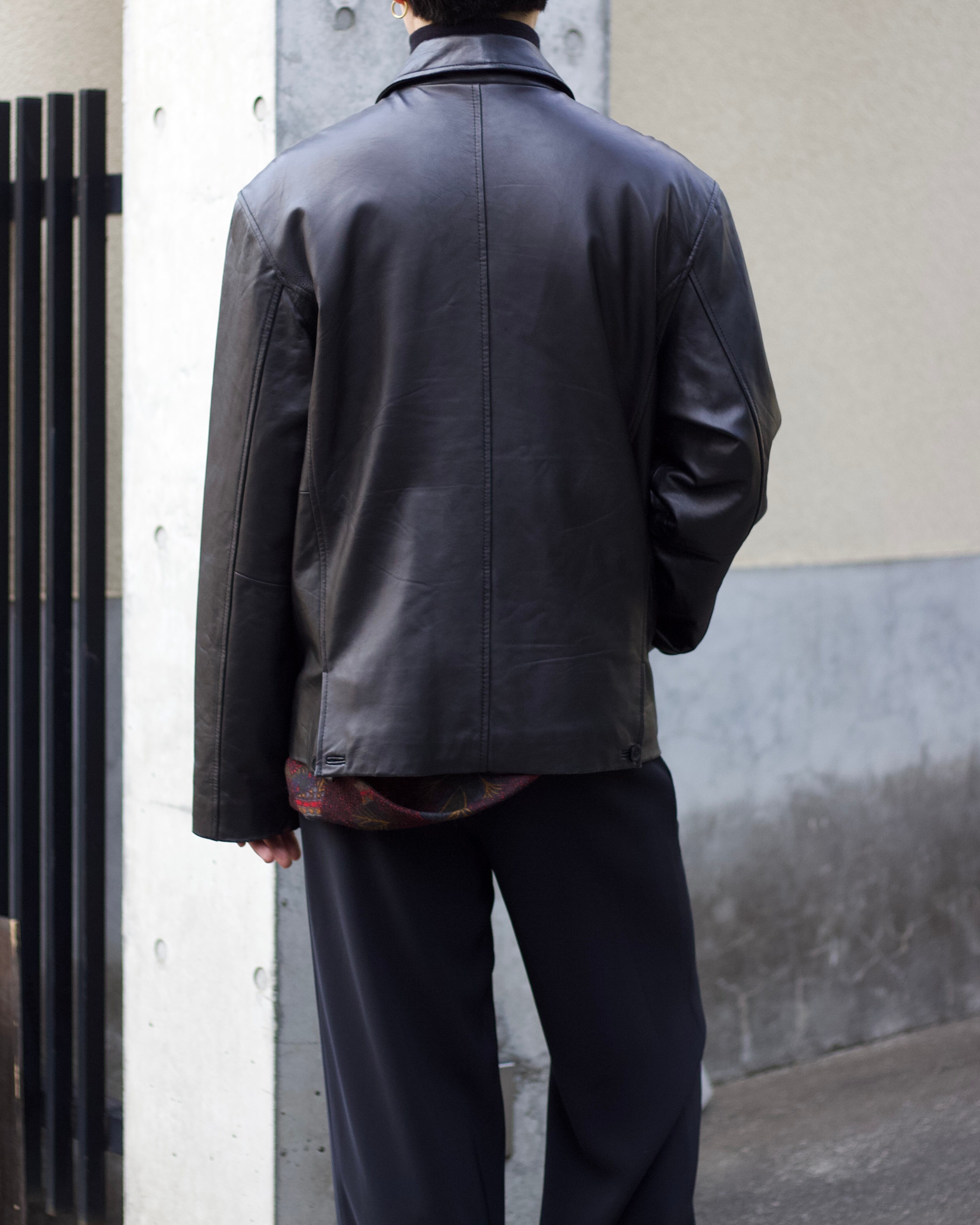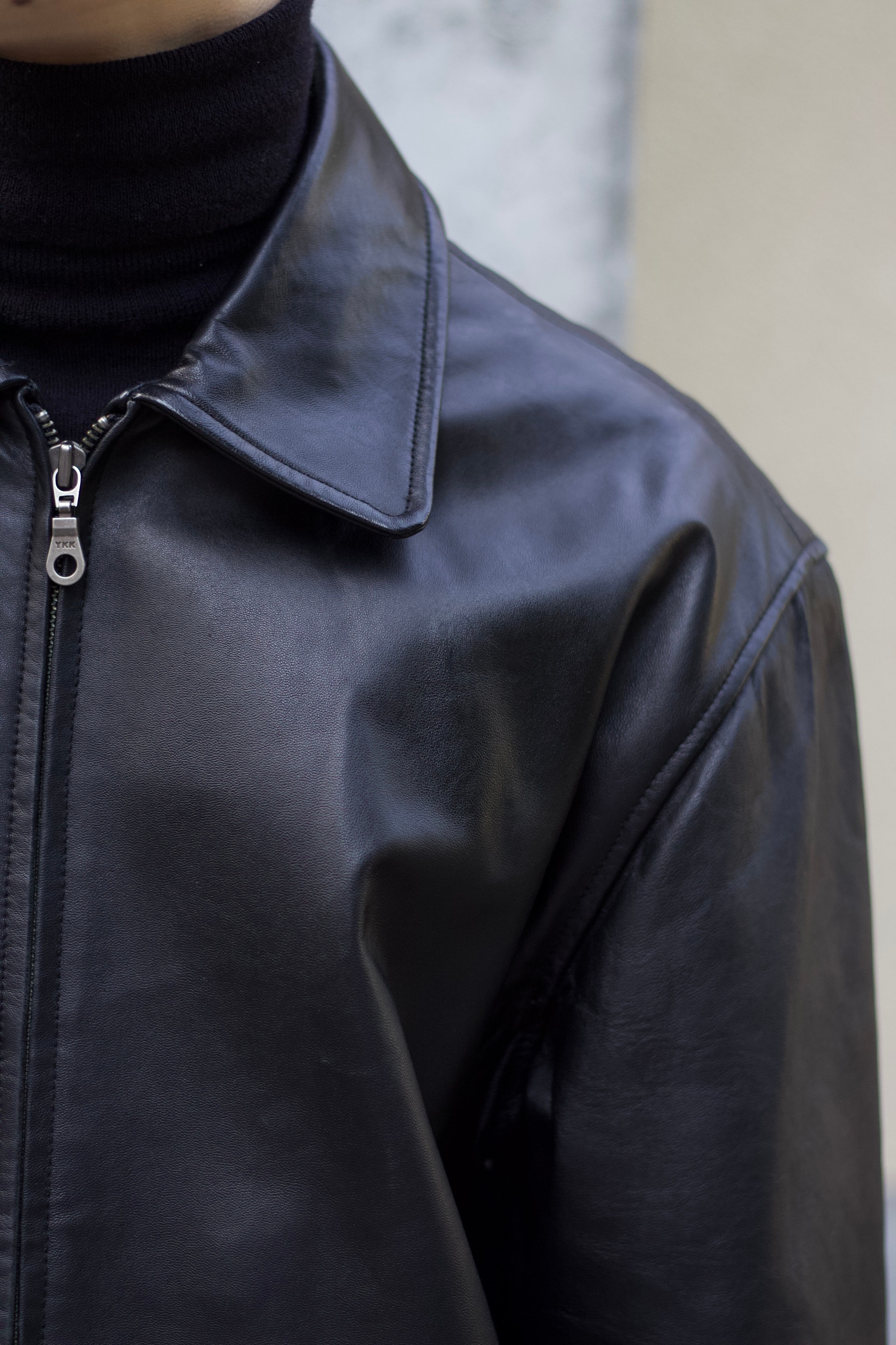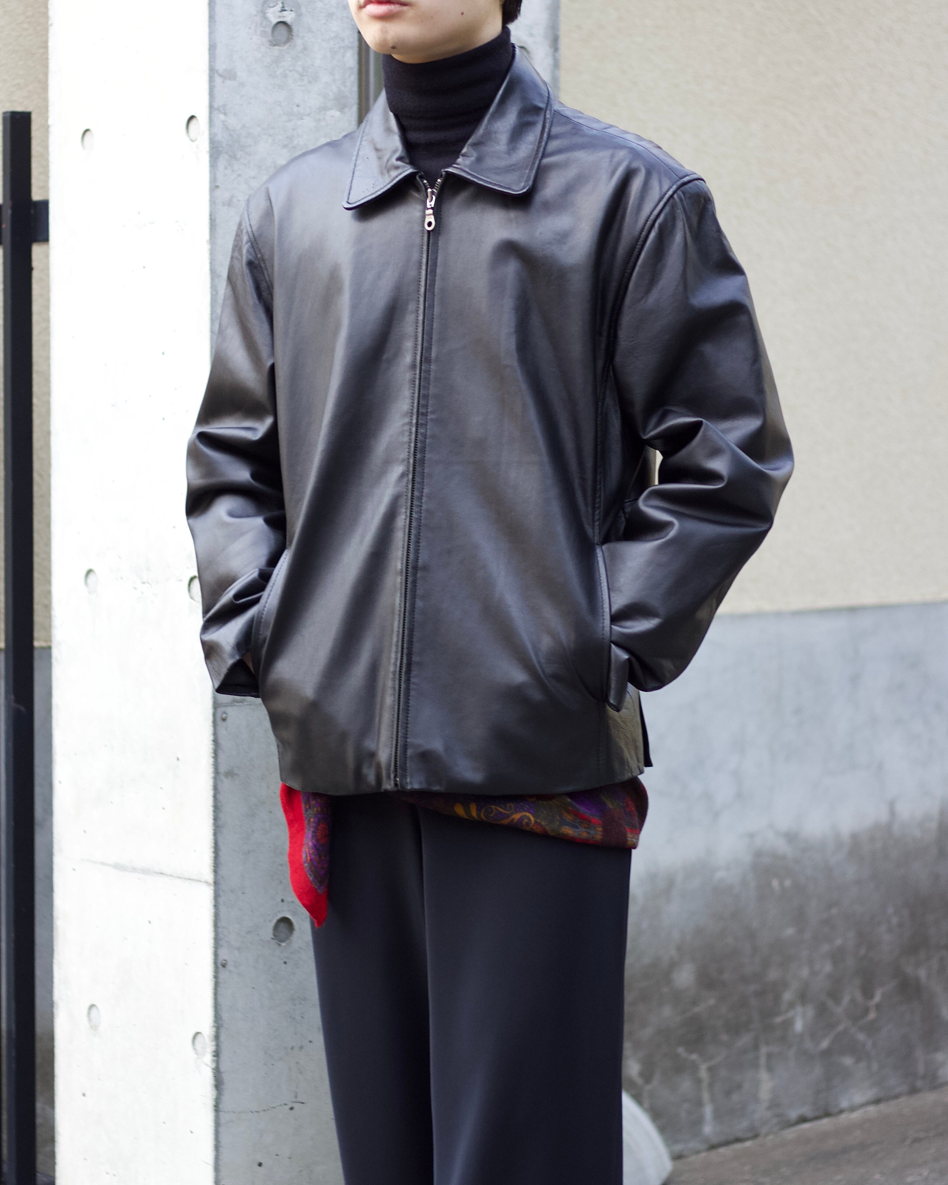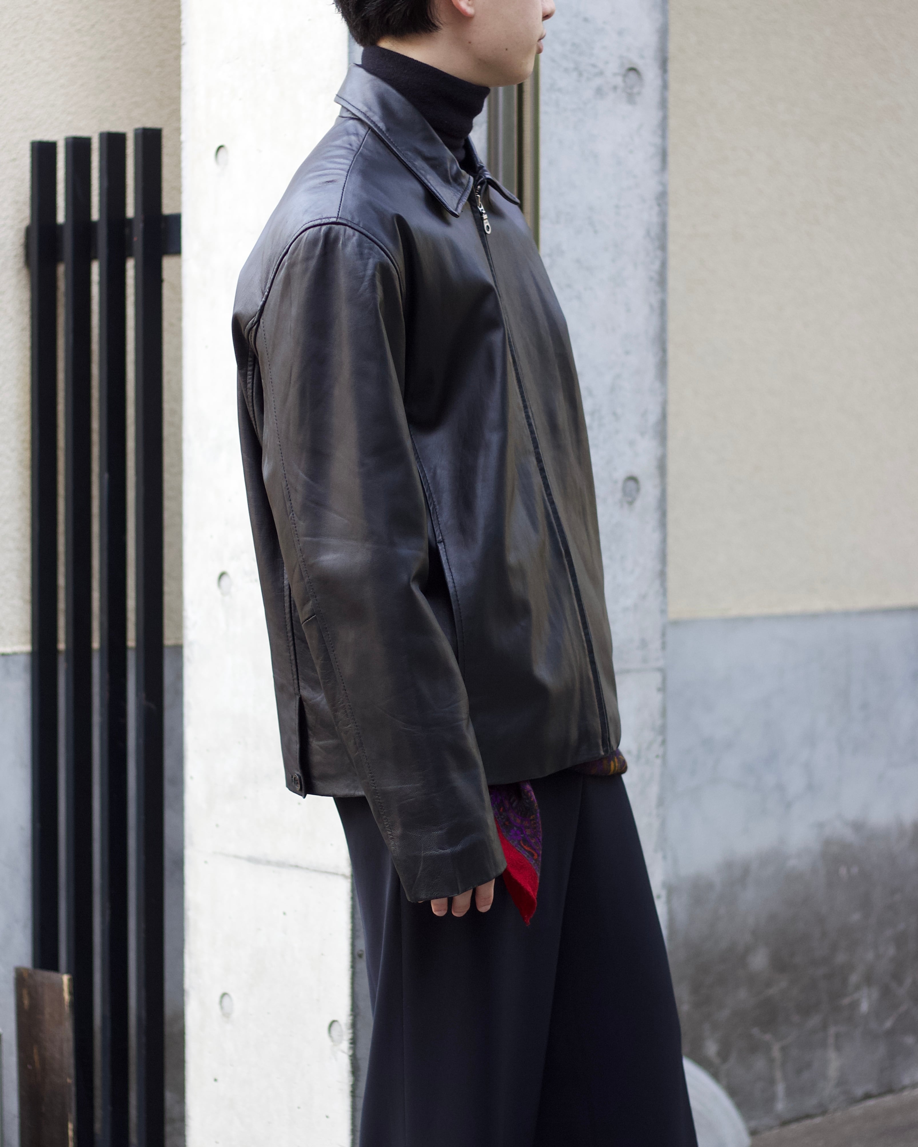 smooth soft LEATHER vintage zip jacket【OT-22004】
