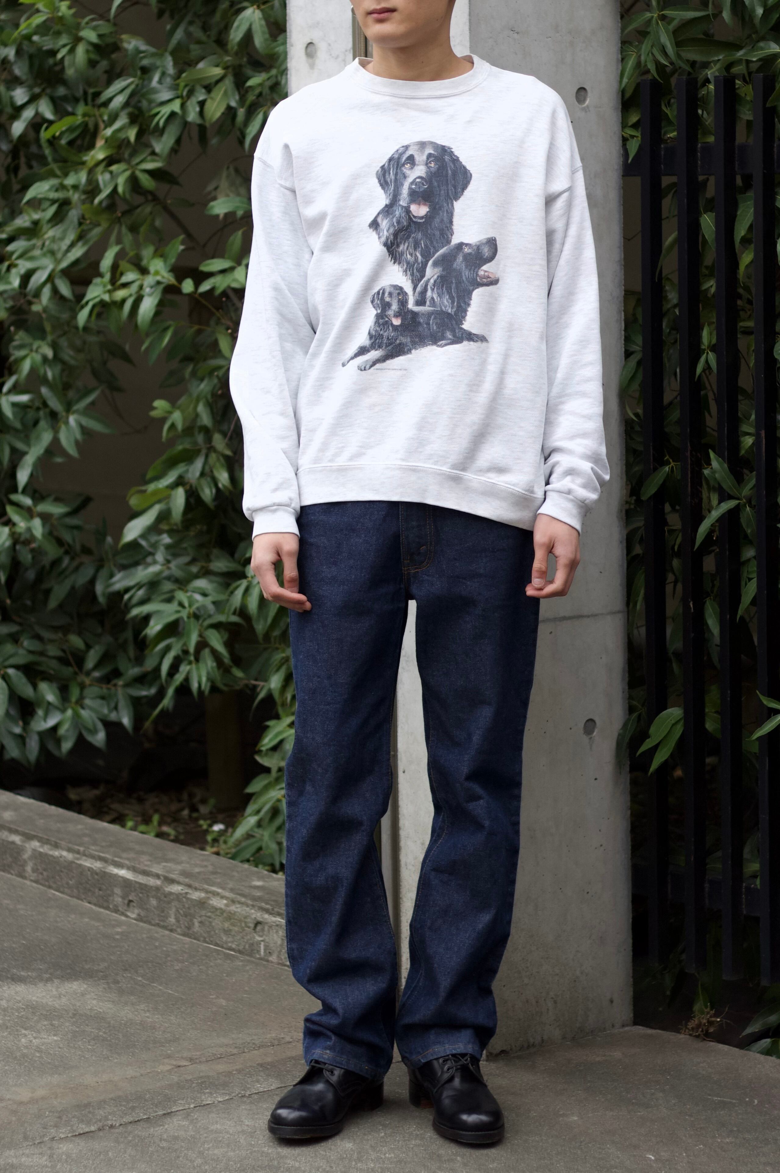 00s "COTTON DELUXE" flatcoated retriever print sweat made in usa
