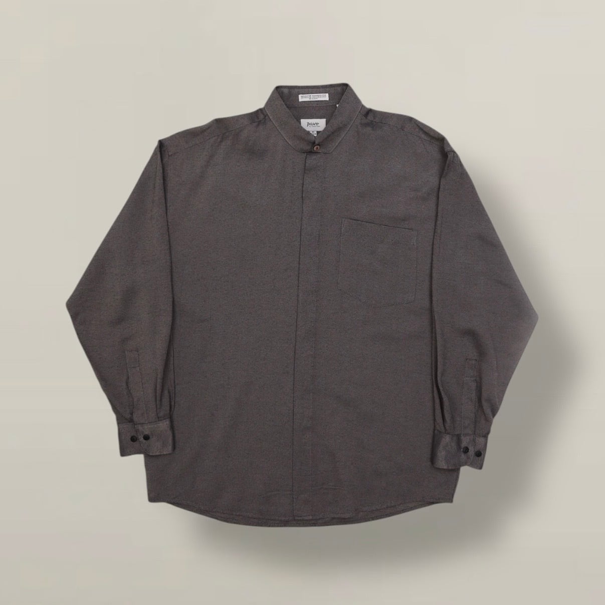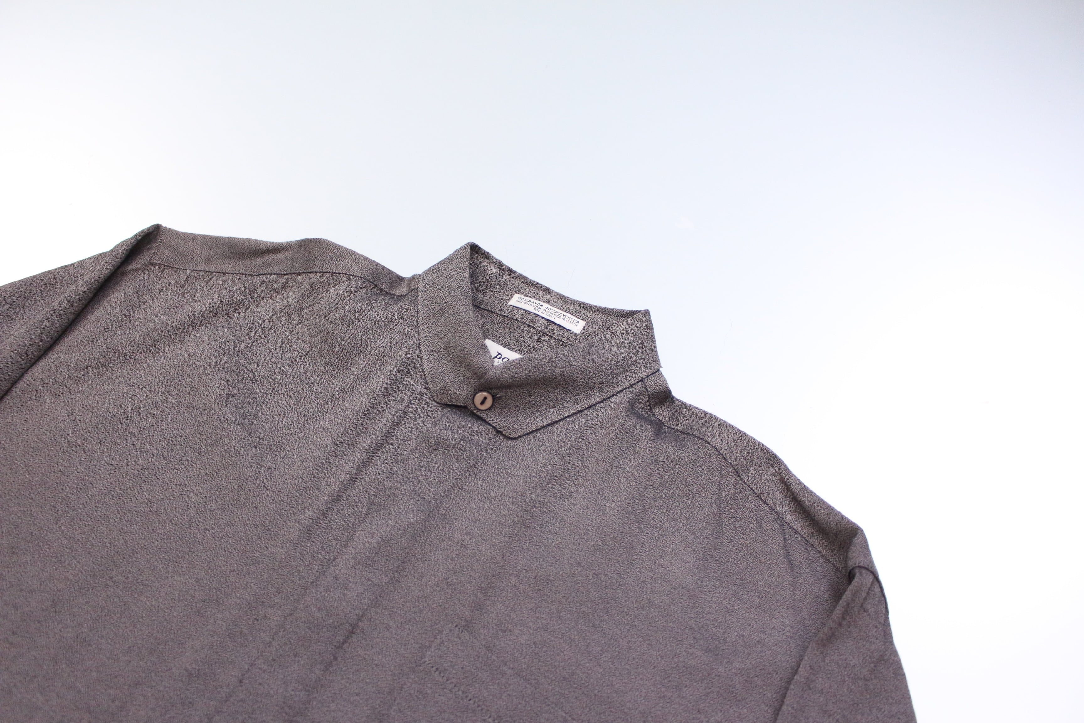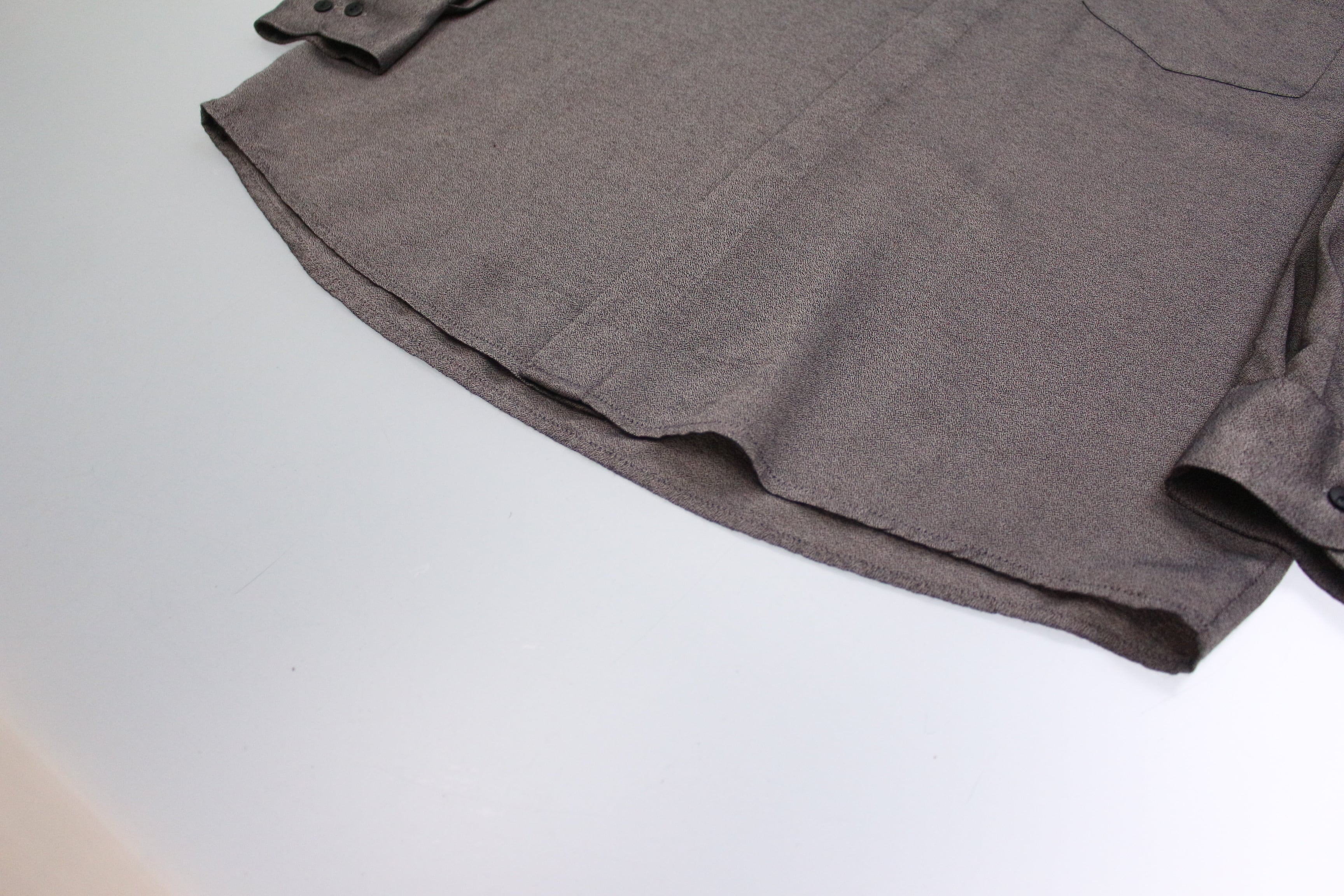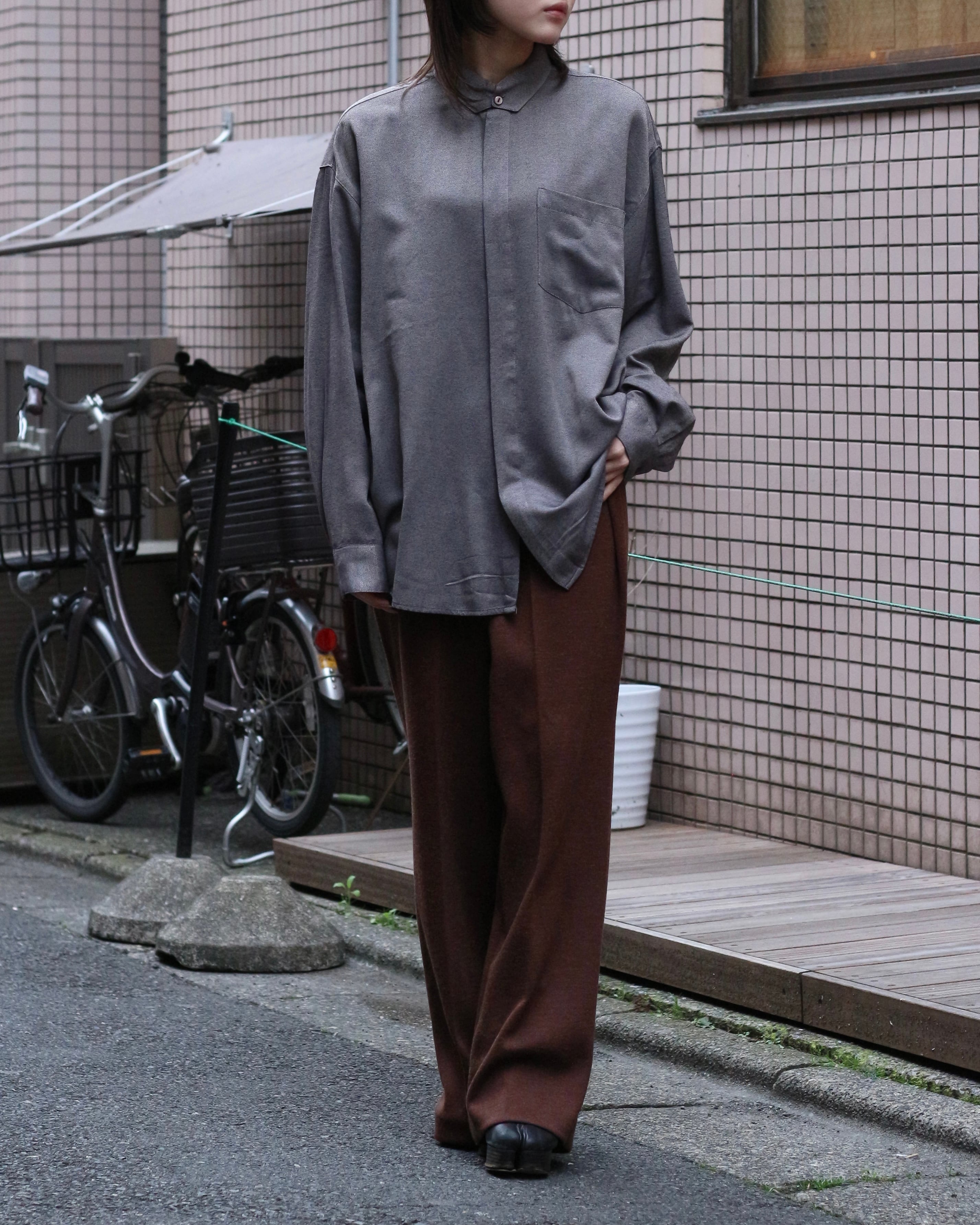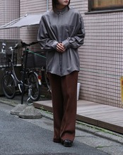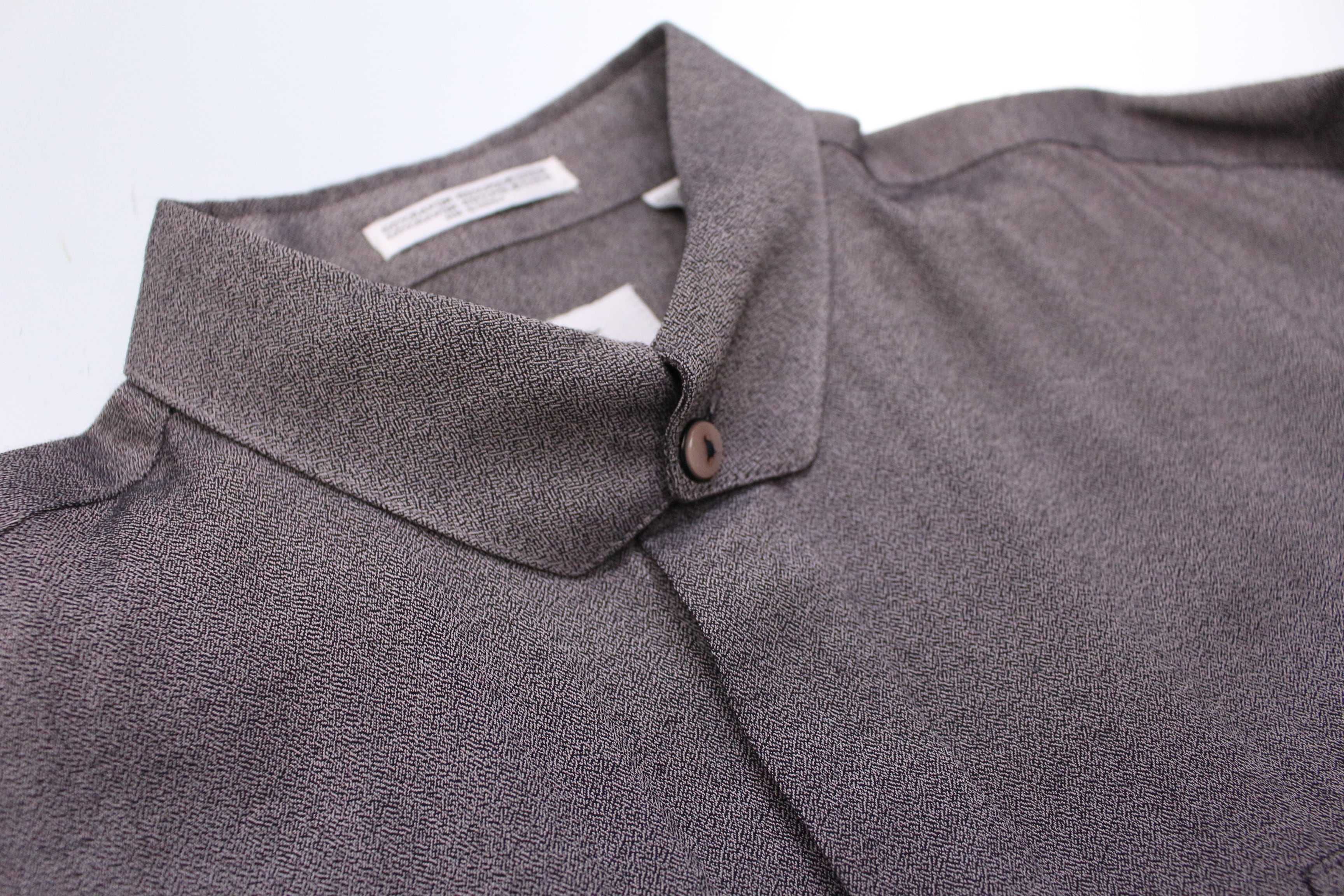 バンドカラーの綺麗な品のあるシャツで、ブラウンのカラーリングが◎