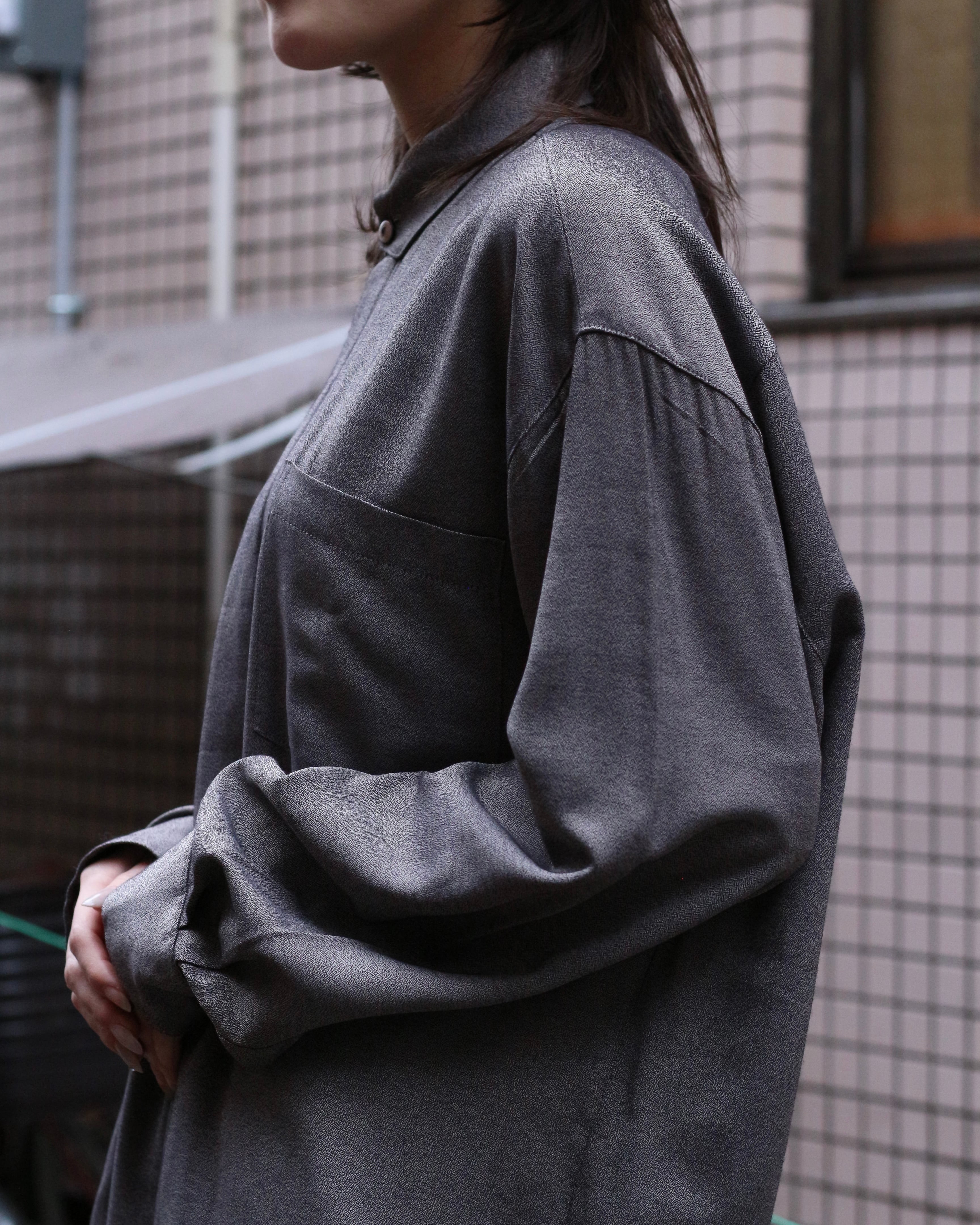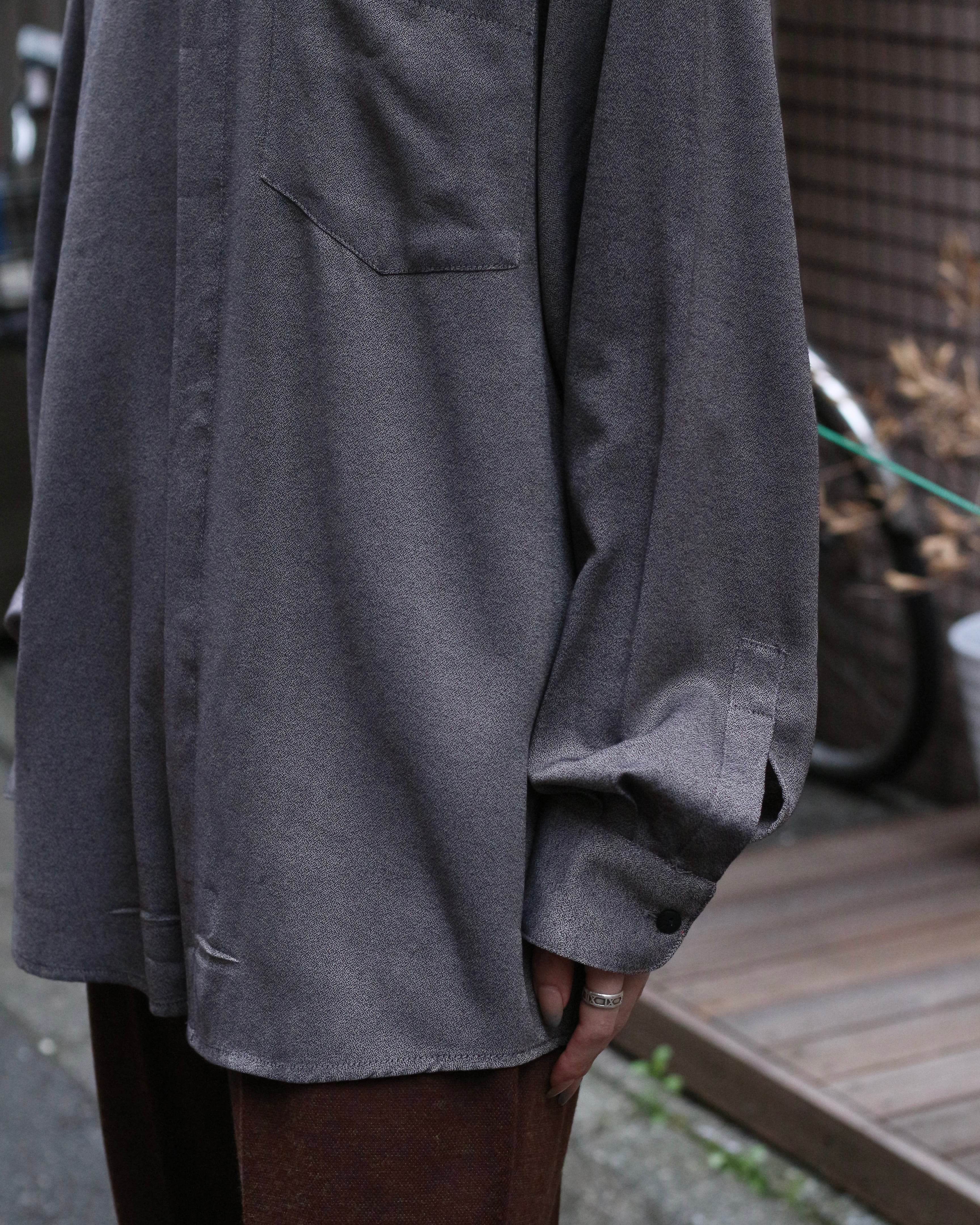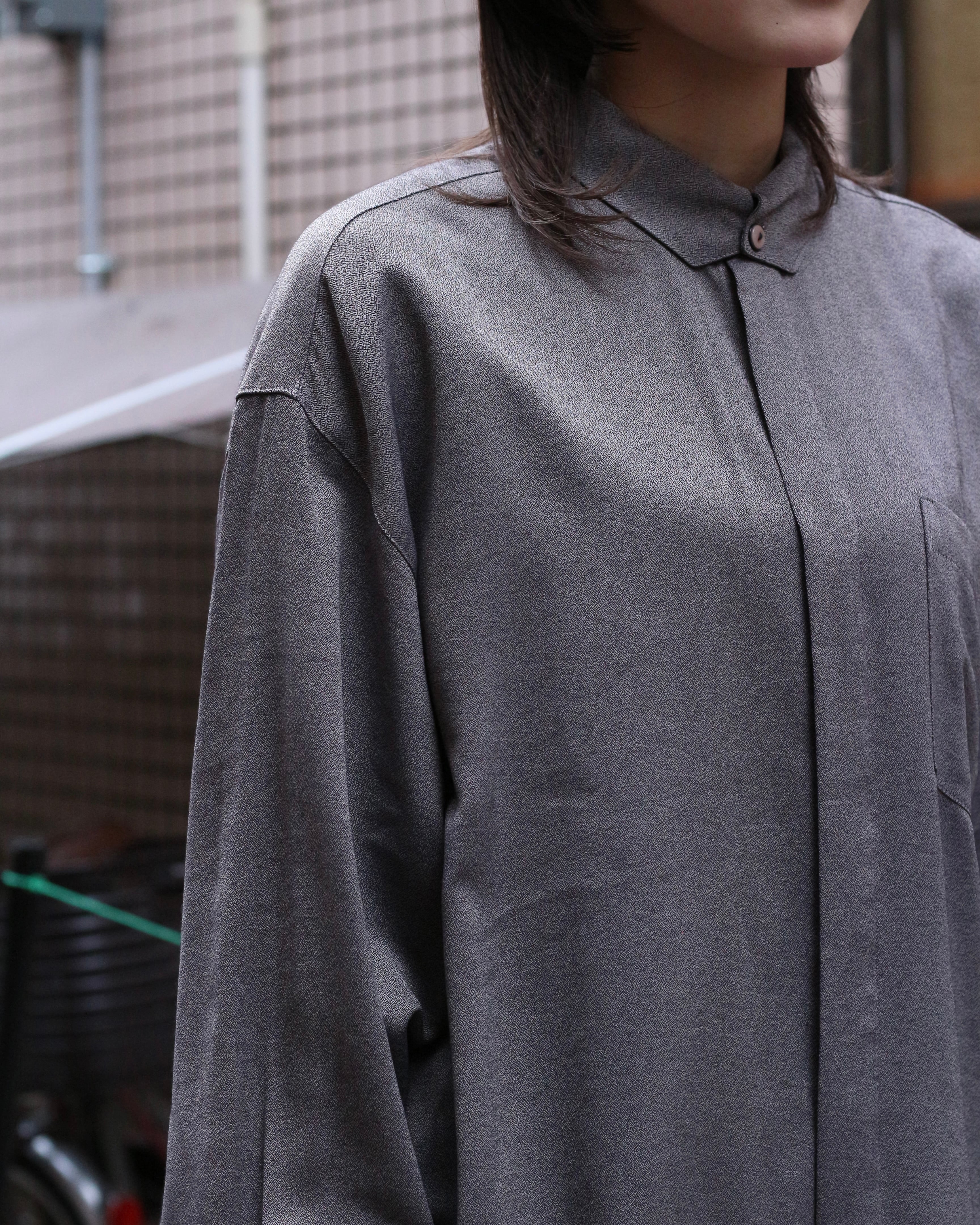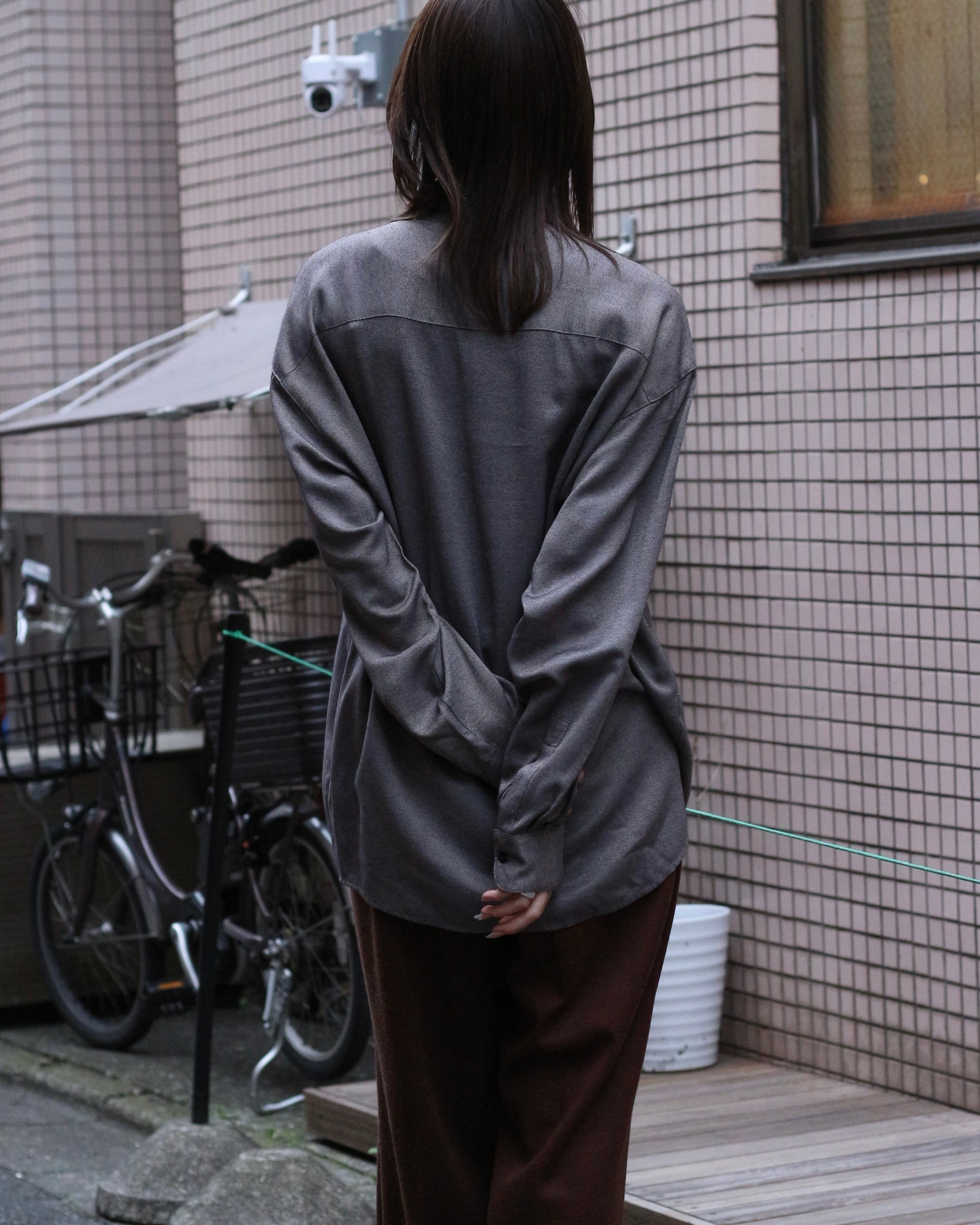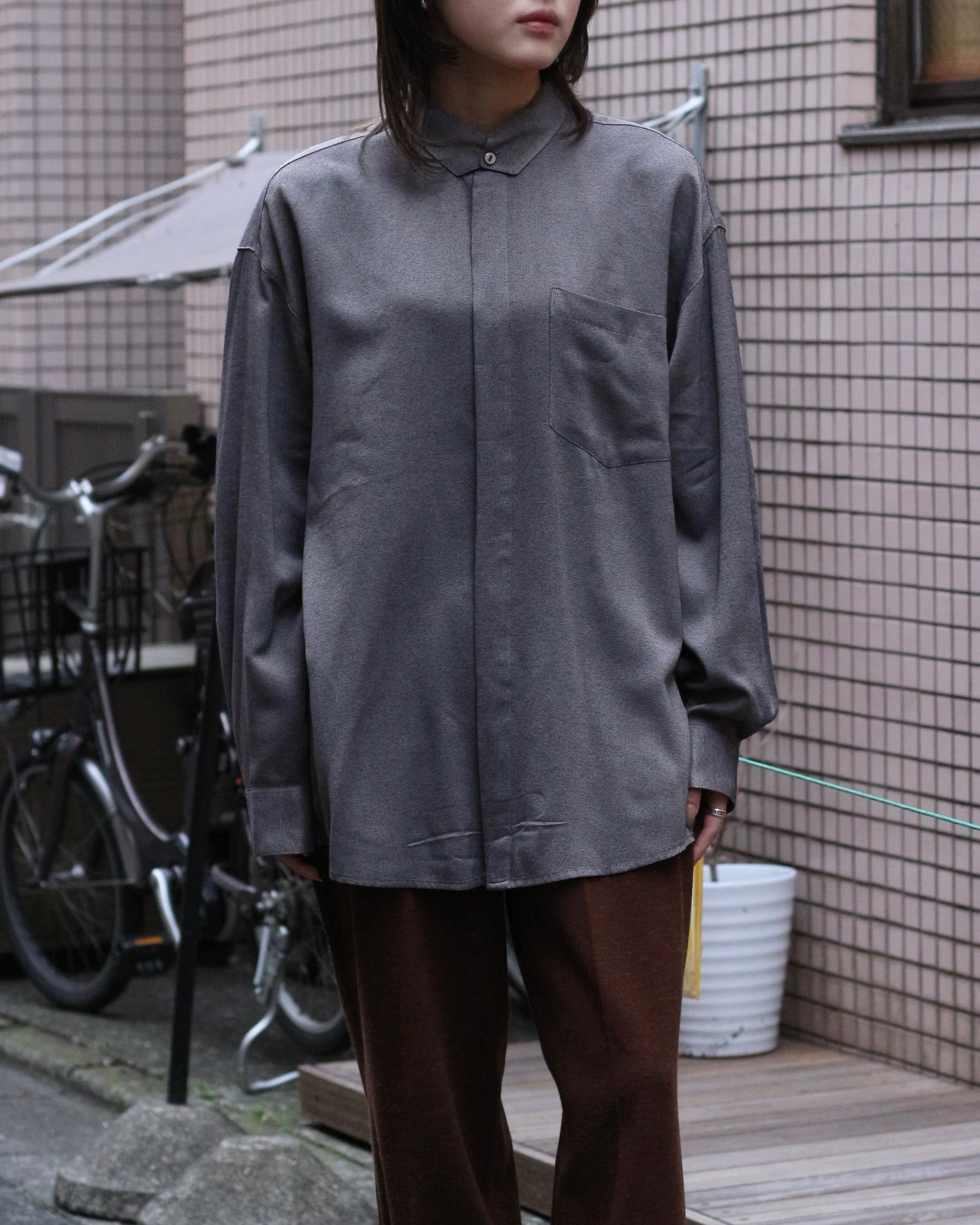 バンドカラーの綺麗な品のあるシャツで、ブラウンのカラーリングが◎