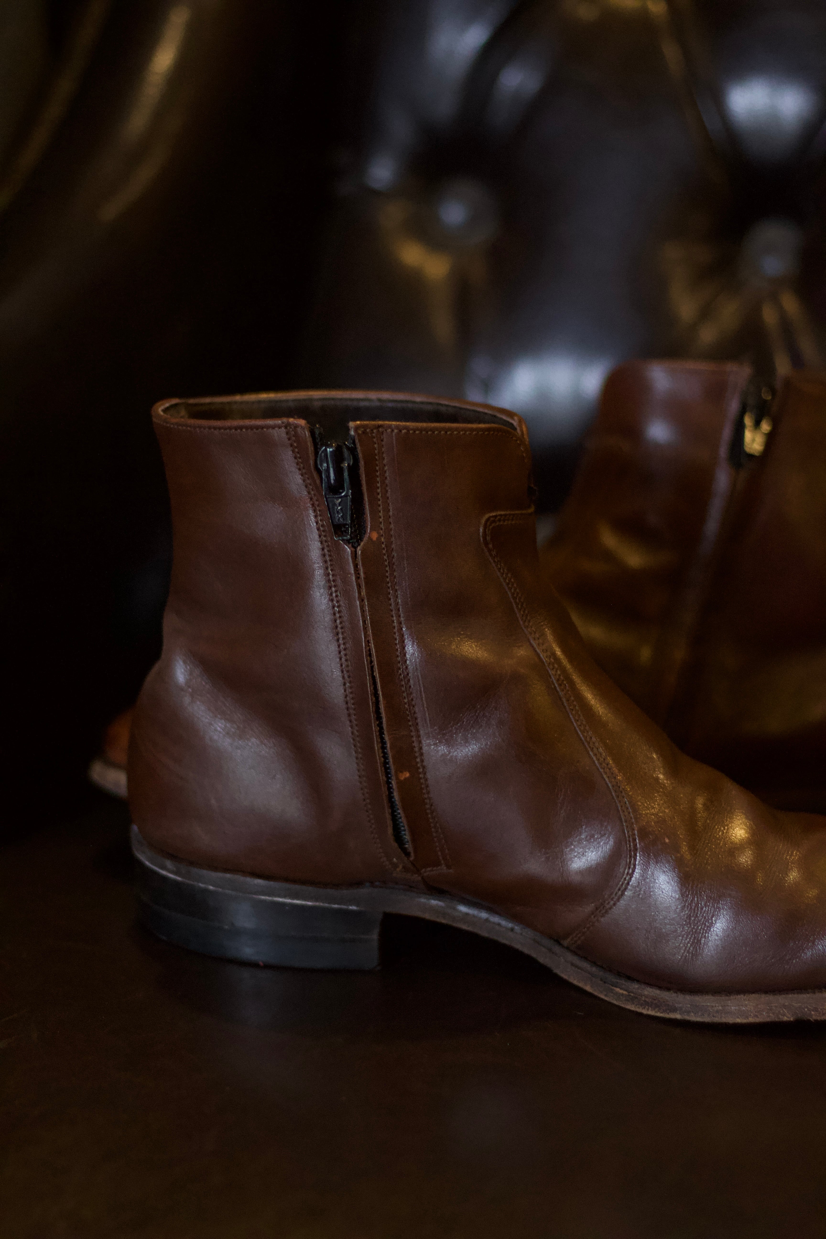 vintage brown color side zip boots【OT-13398】