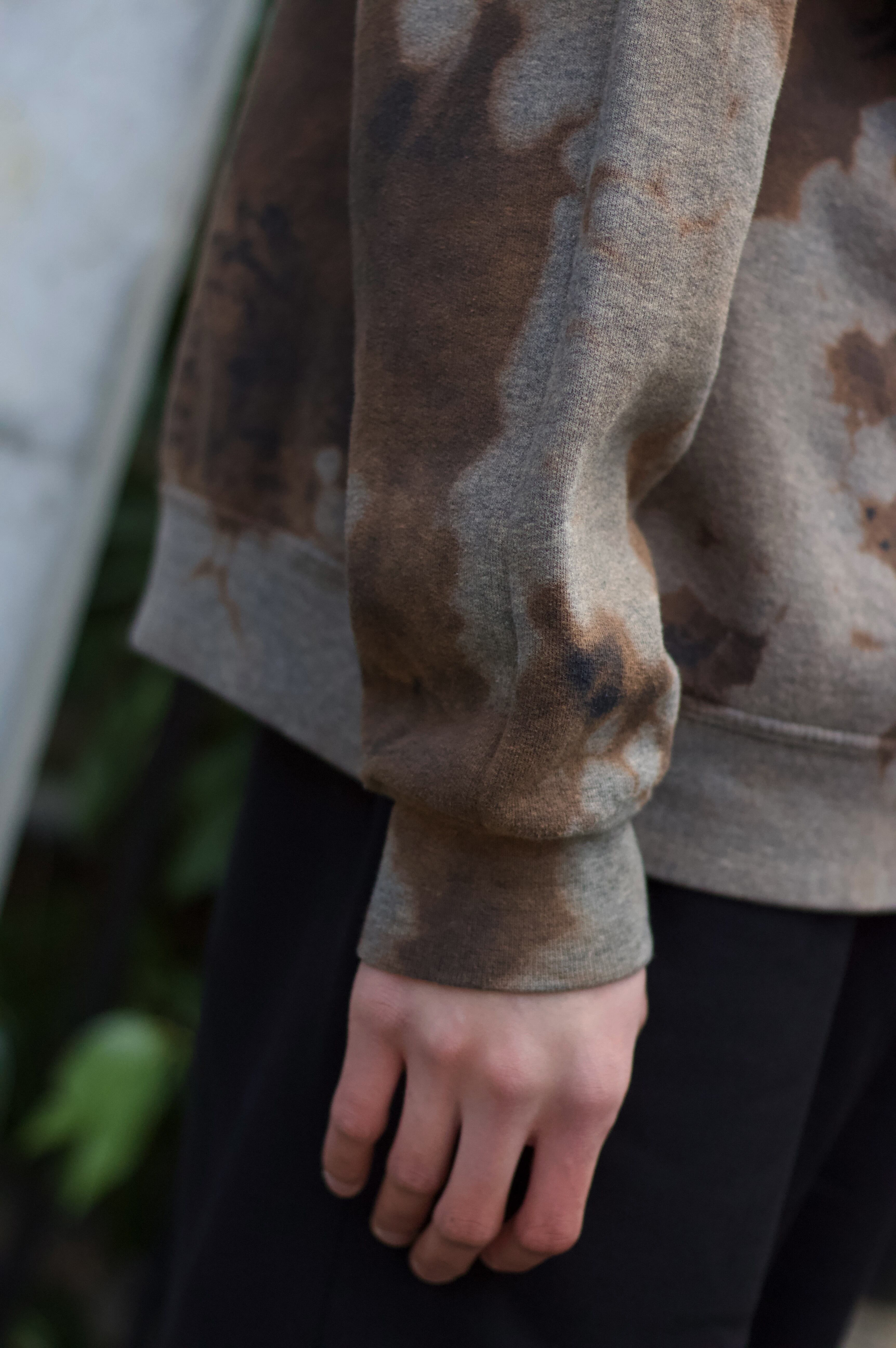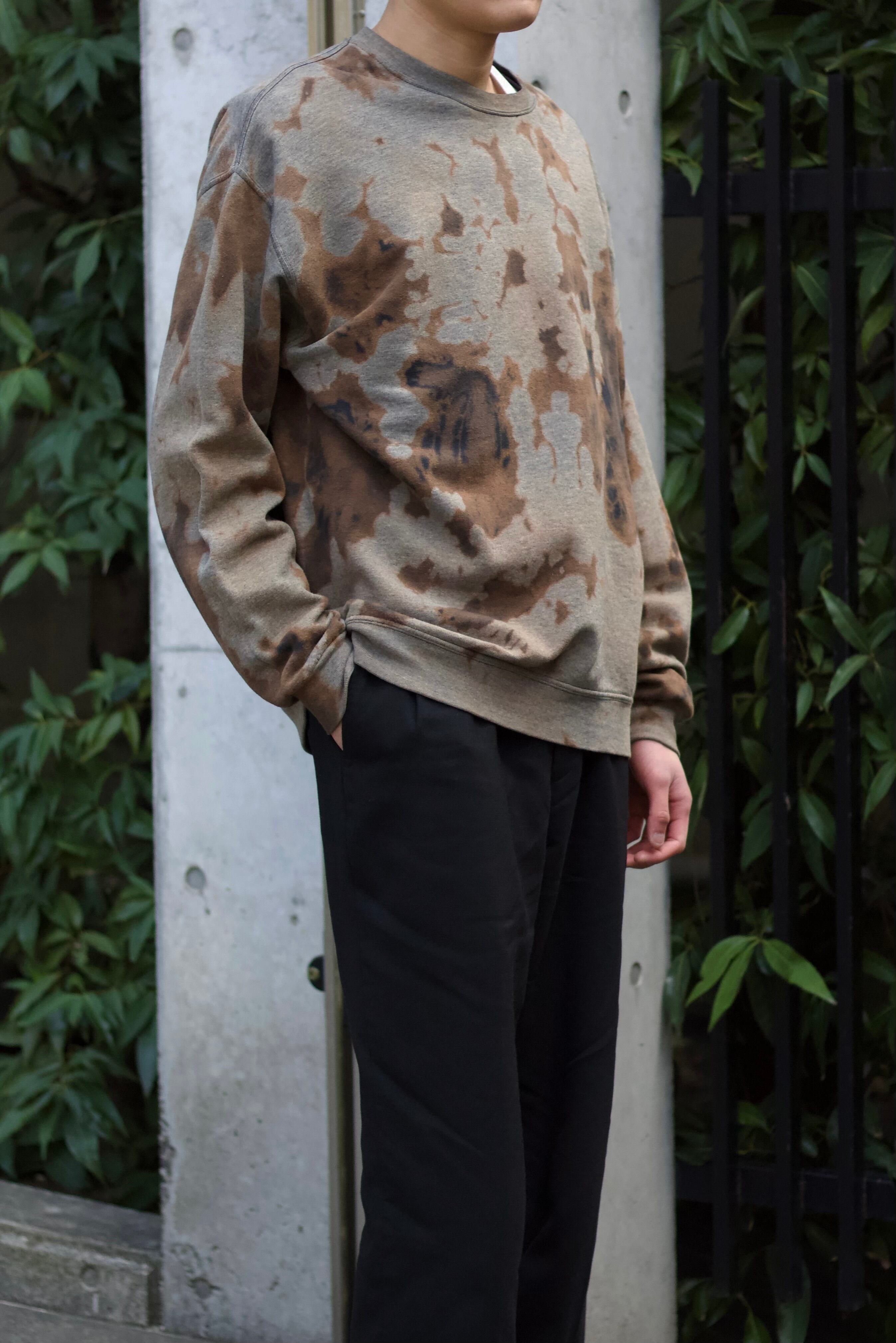 全体に施されたブリーチによるフェード加工が特徴でブラウン〜ブラックのムラ感が一点物のような雰囲気を出しています。
