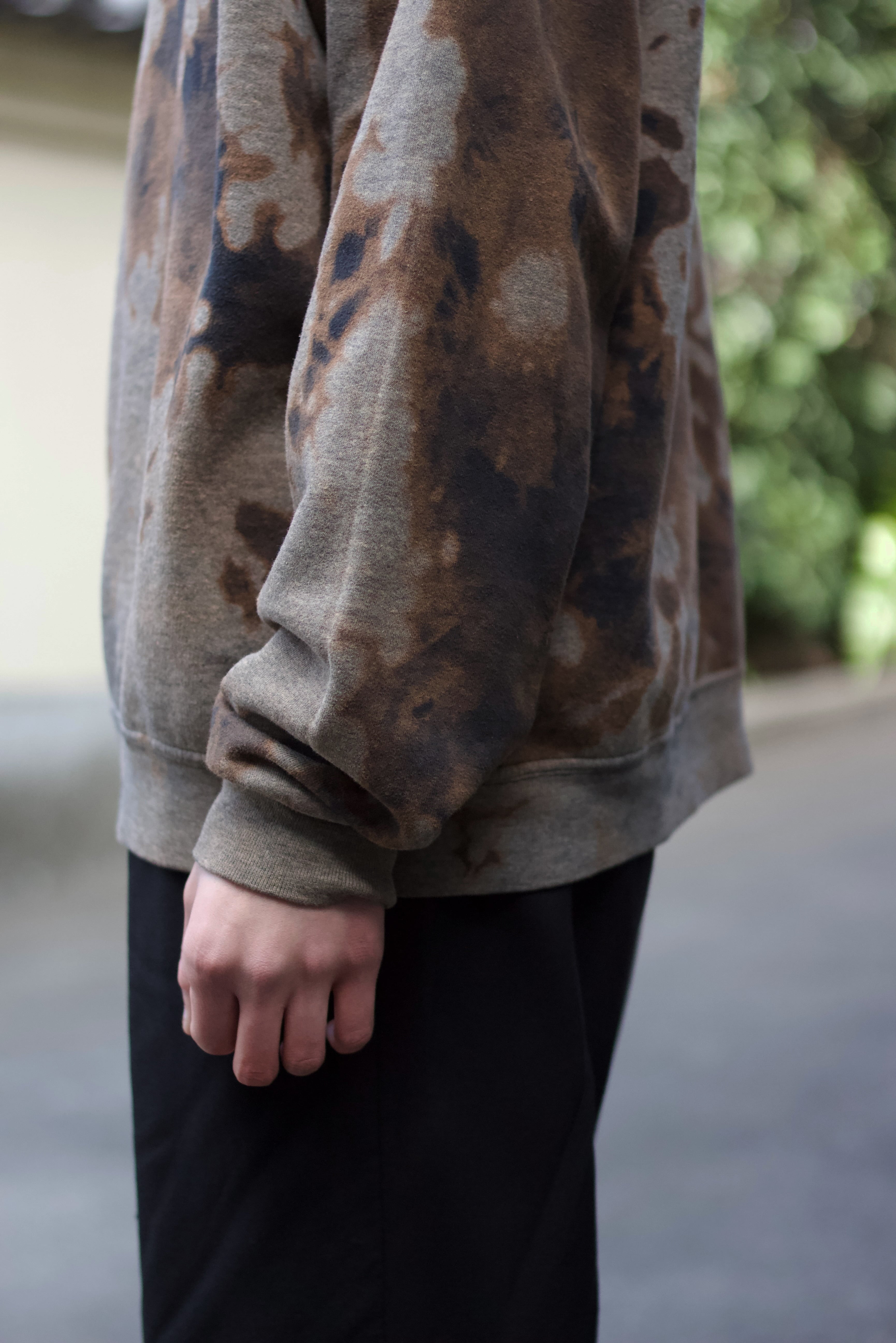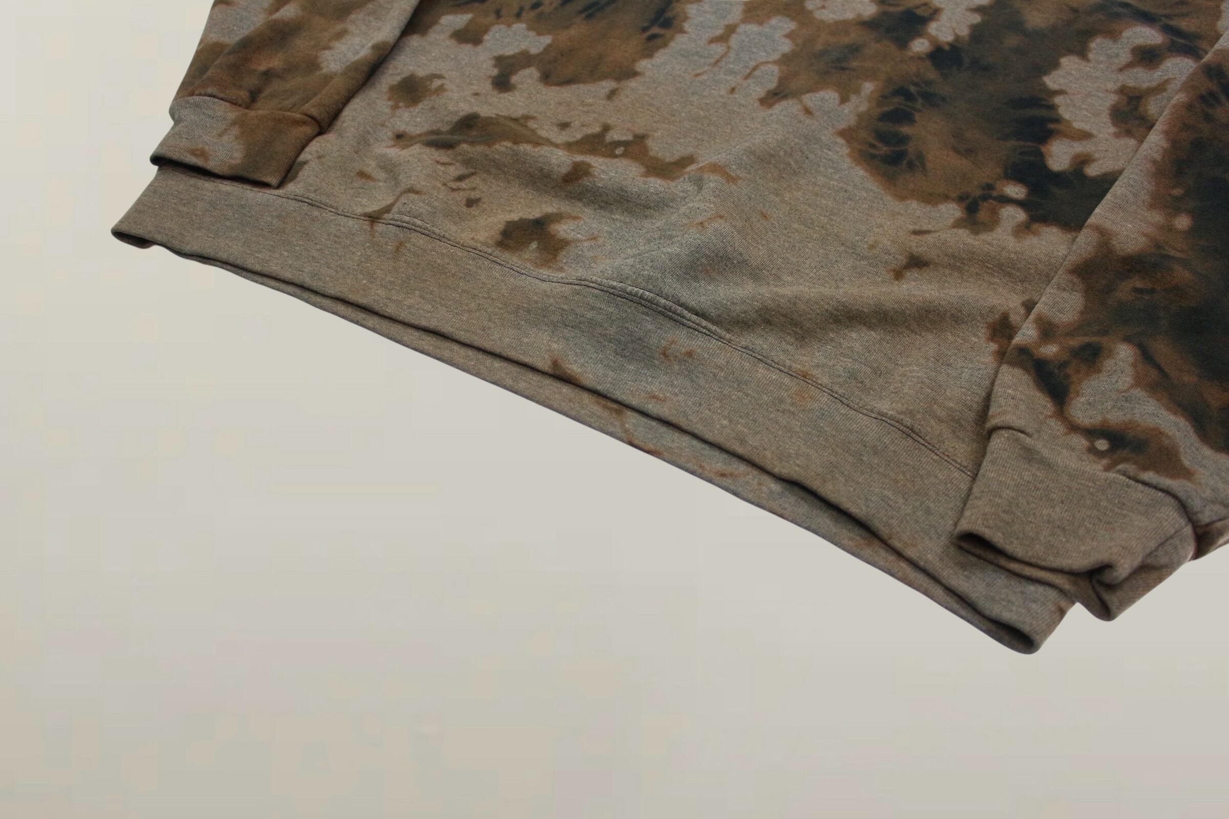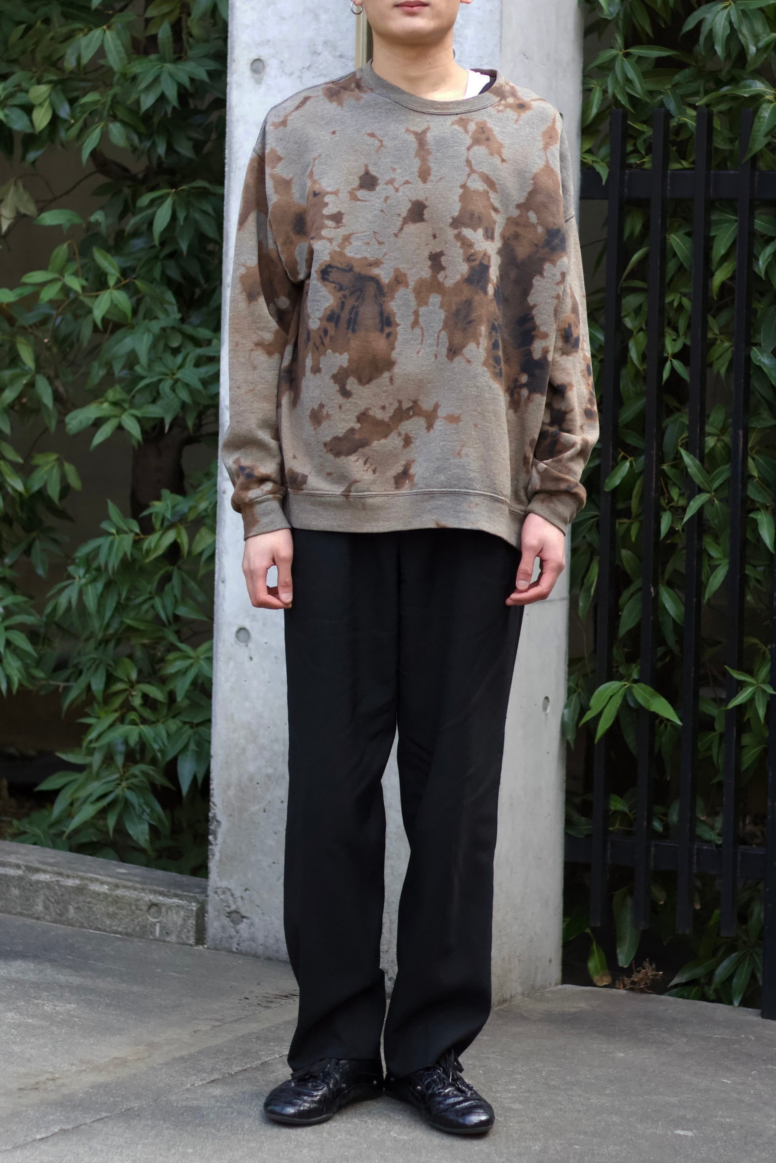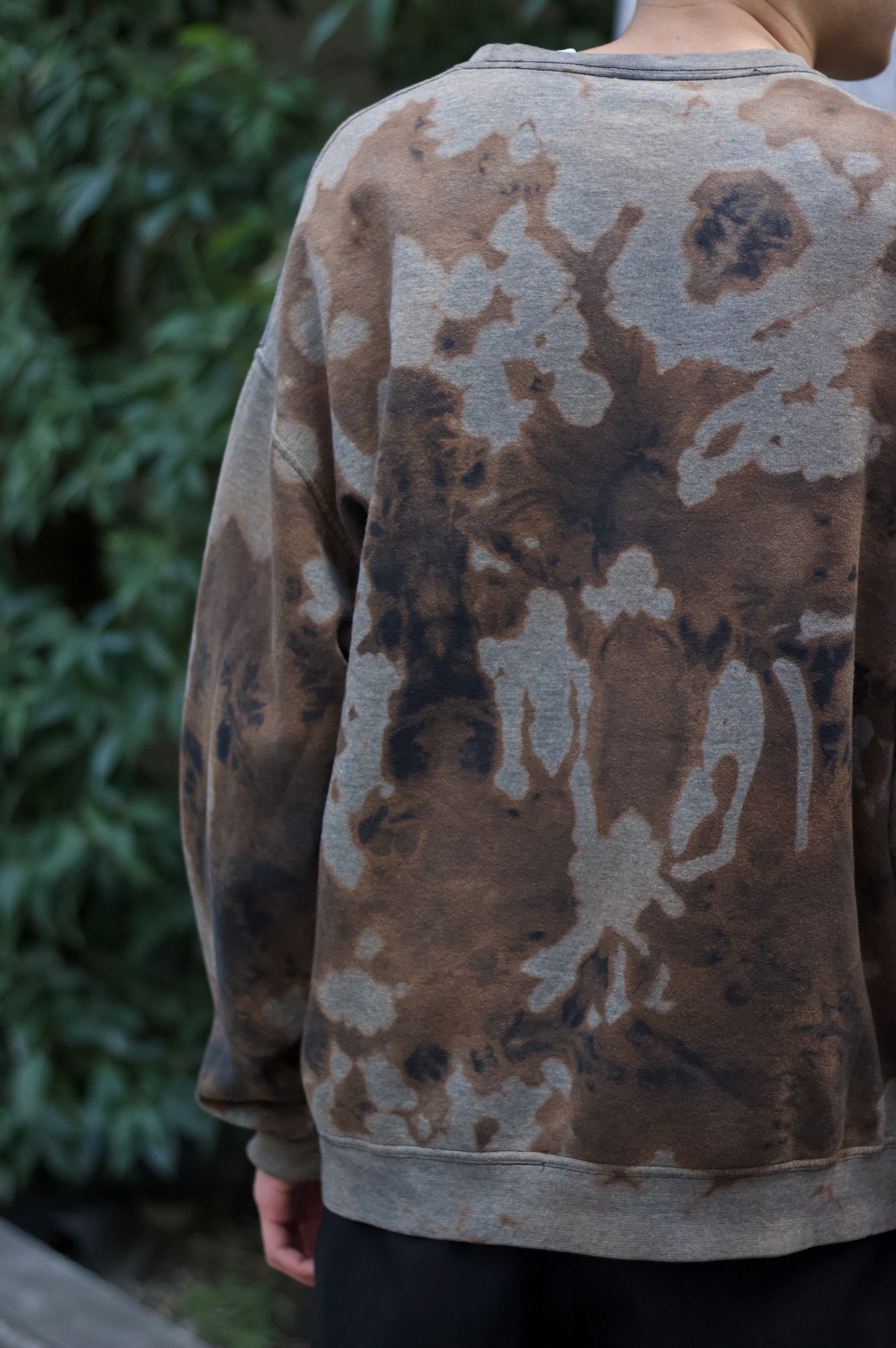 ベースはグレーボディでアートピースのようなブリーチパターンがストリートやグランジスタイルとも相性の良い一着。