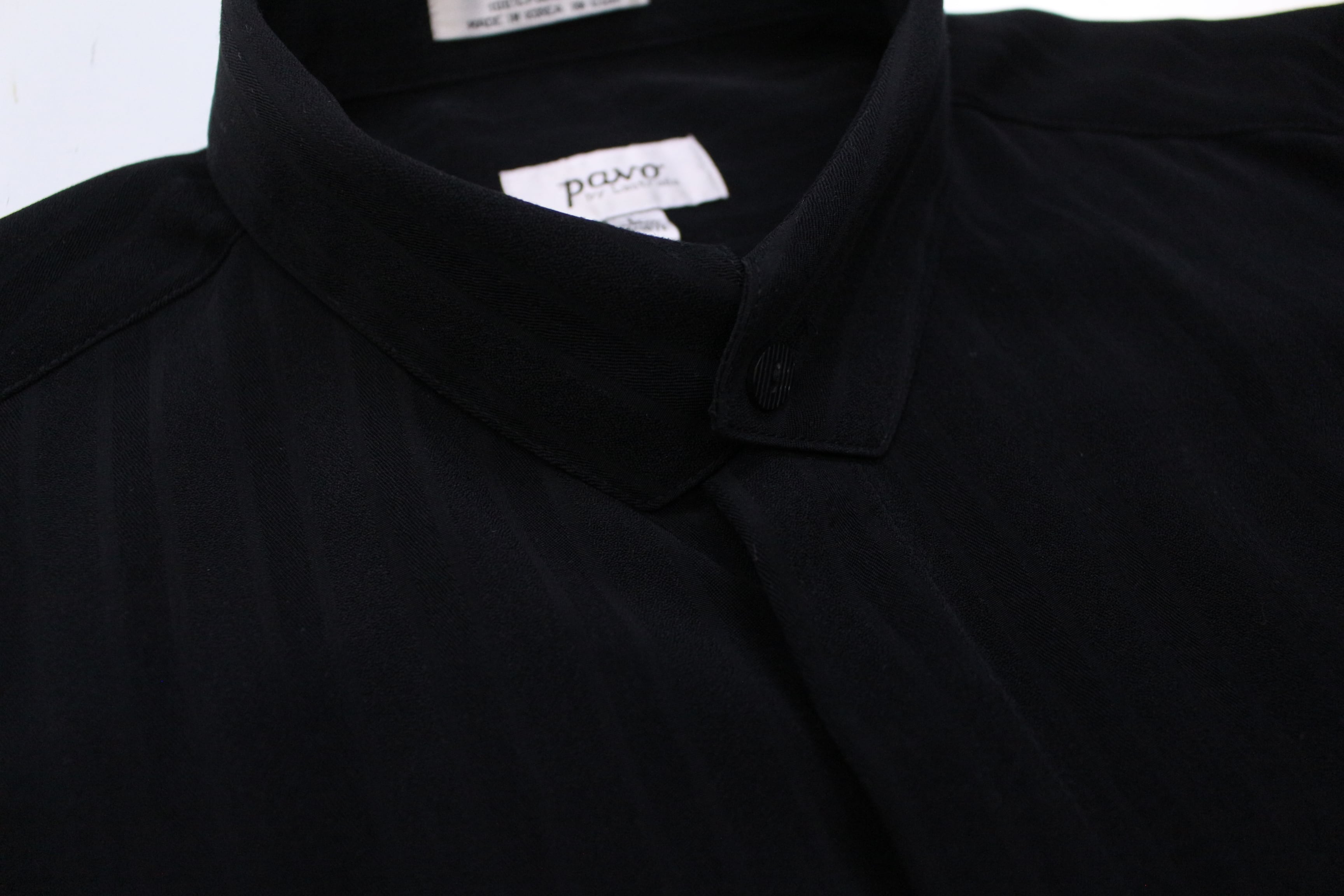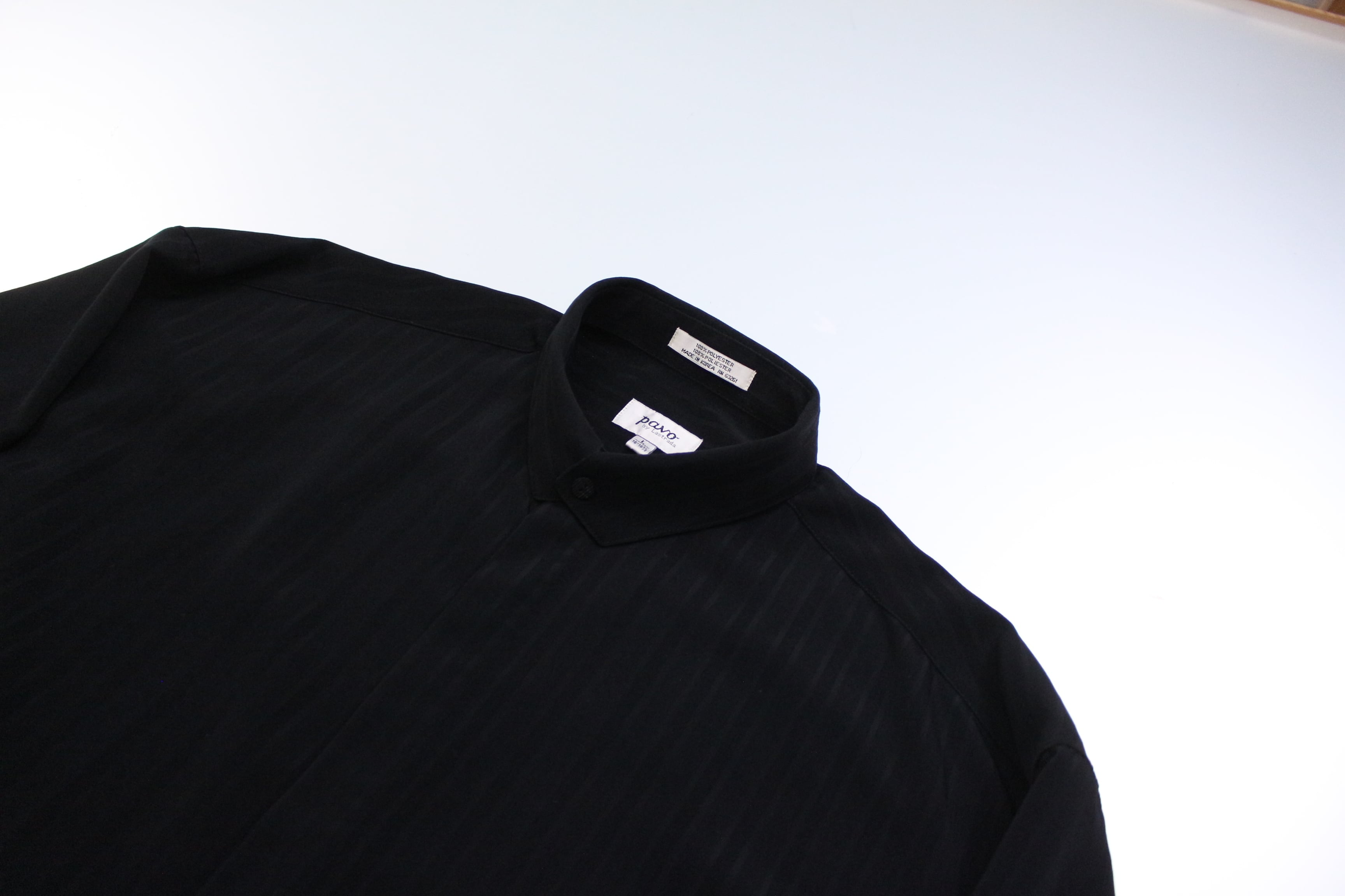 1990s Black band collar rayon shirt【MM-1256】