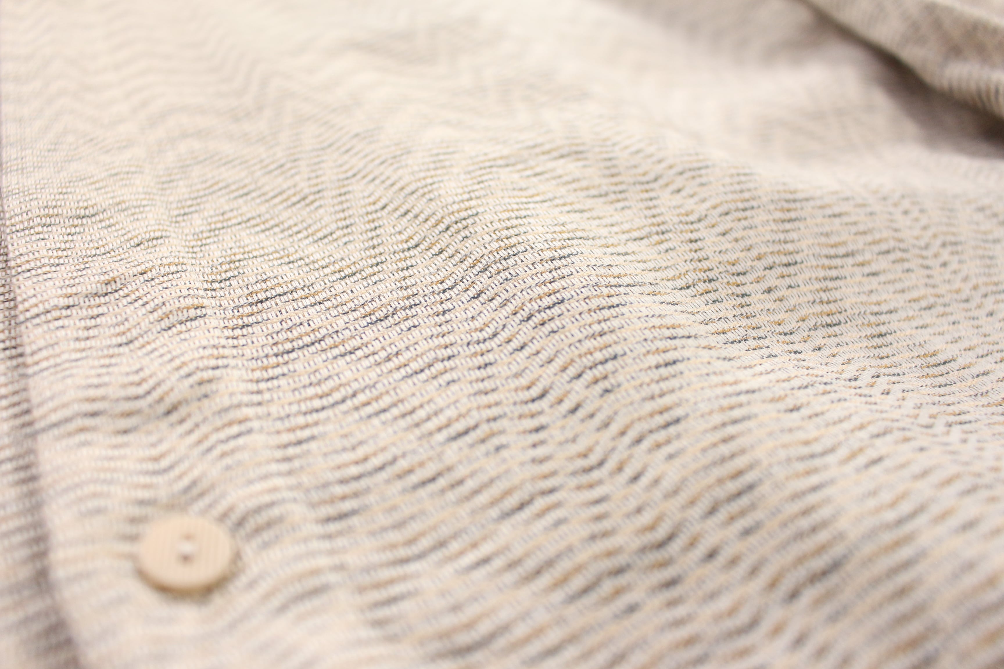 オフホワイトとベージュ系の糸を使って織りでデザインされた柄がなんとも美しい。