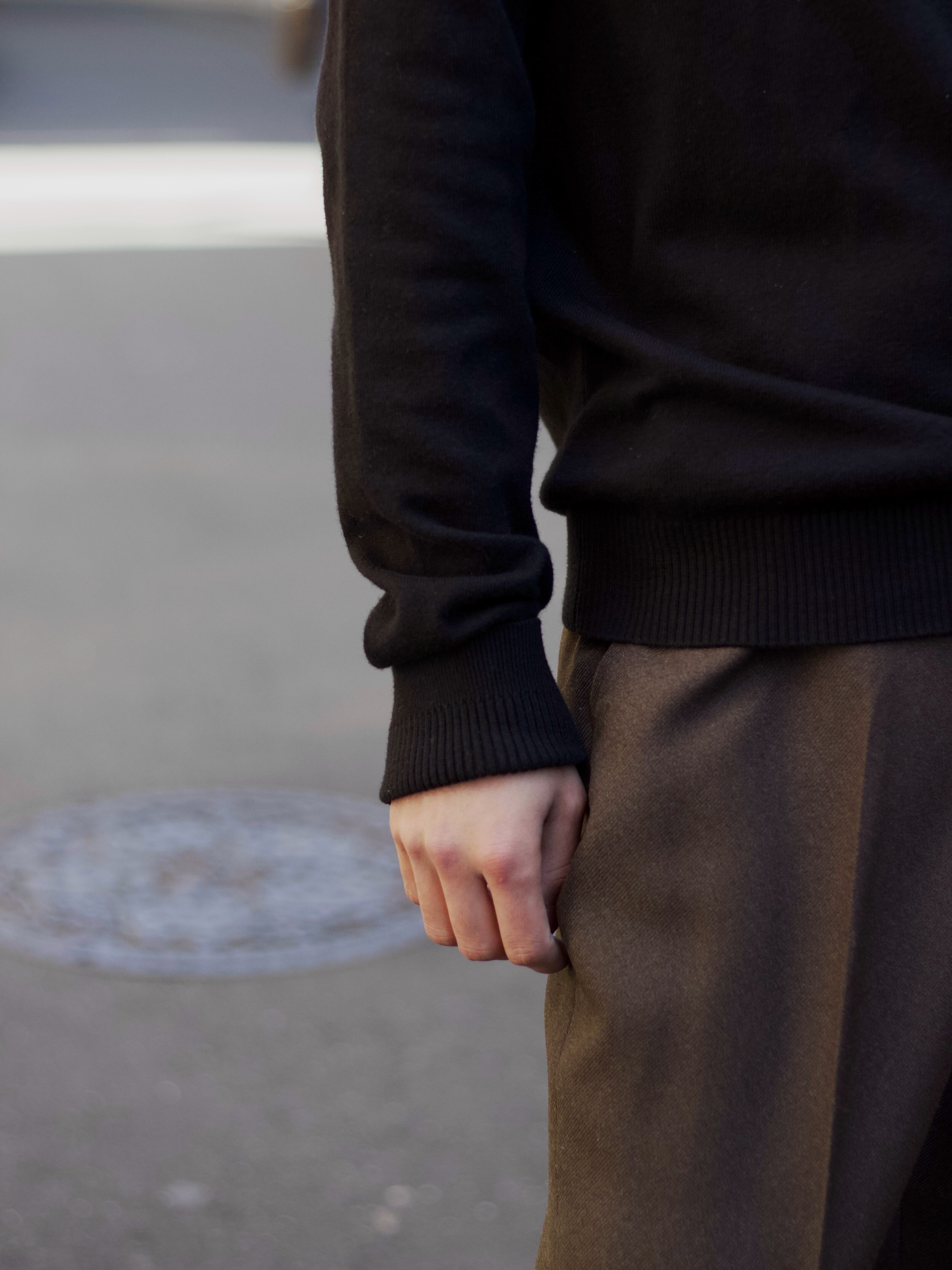 寒い時期は勿論コートやダウンのインナーにも馴染み良いですし、春は1枚かシャツのインナーで挟んであげるのも◎