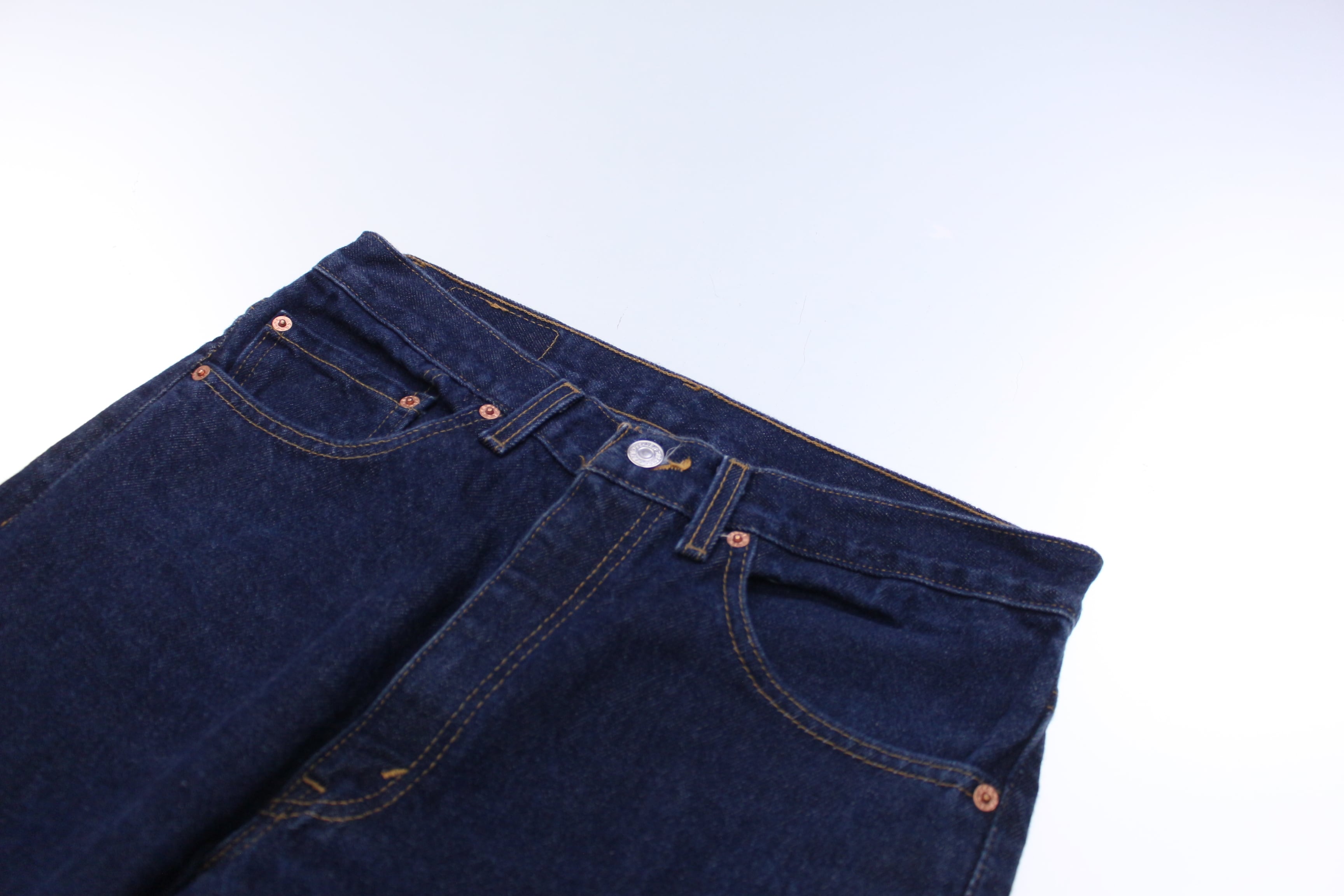 B(ヴィンテージデニム製品の中では使用感も少なく、比較的綺麗な状態です。僅かながら毛羽立ちや色落ちはしておりますので、ヴィンテージデニムならではの風合いとしてご理解ある方のみご注文お願い致します。)