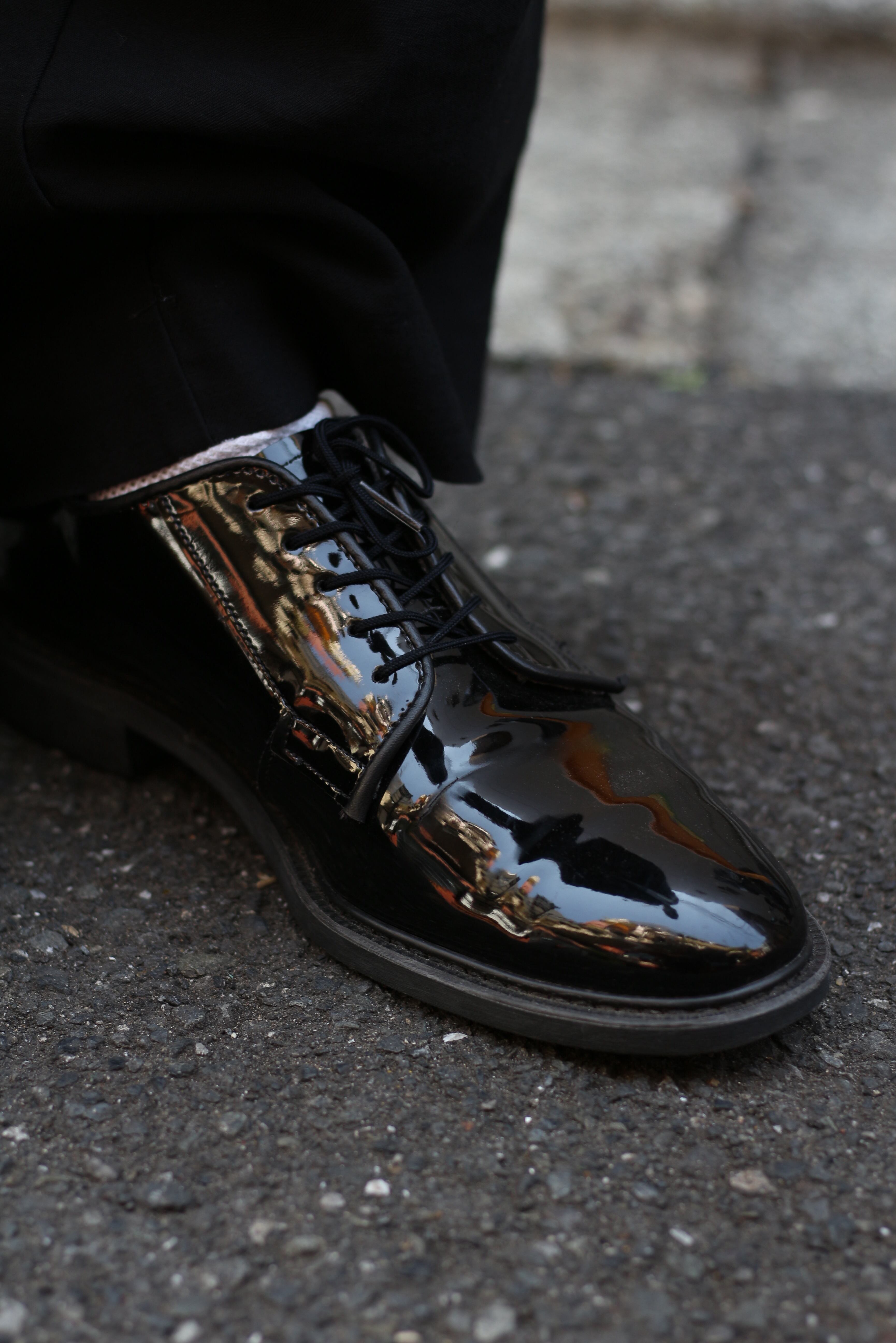 こちらは光沢の強いパテントレザー仕様。