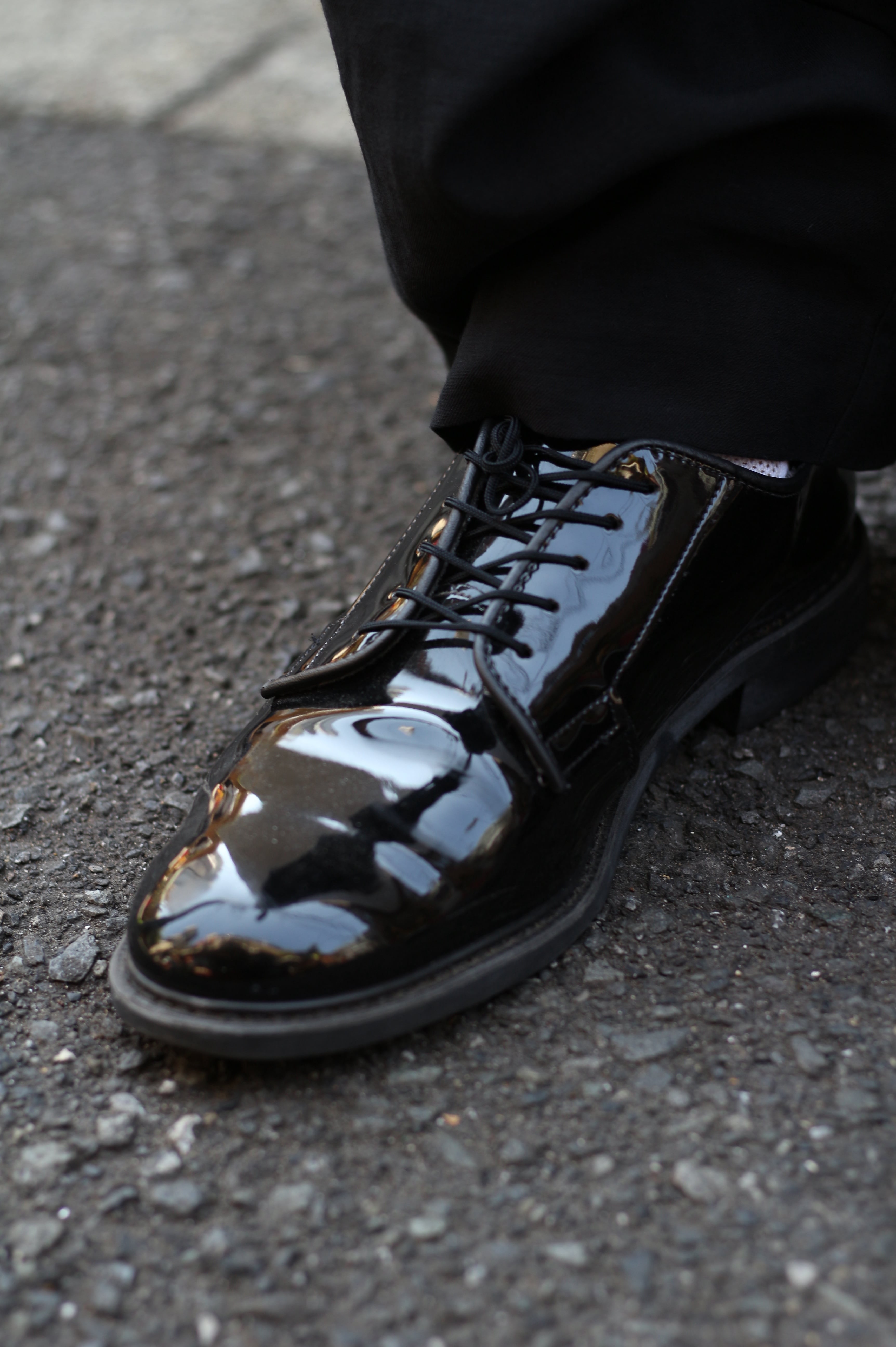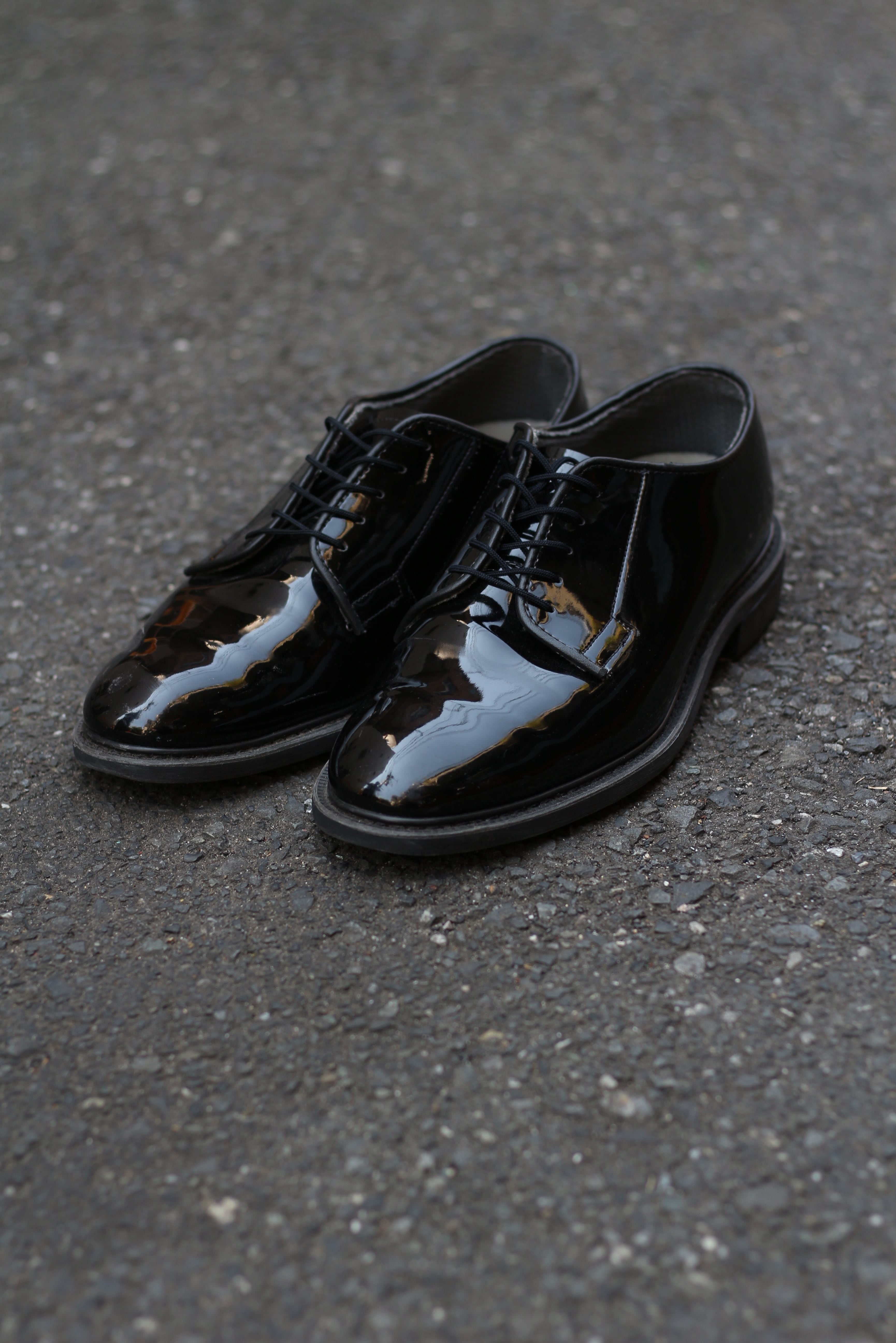 ミリタリーのドレスラインらしく過剰な装飾は一切なくその分素材の光沢とフォルムで魅せる一足ですよ◎