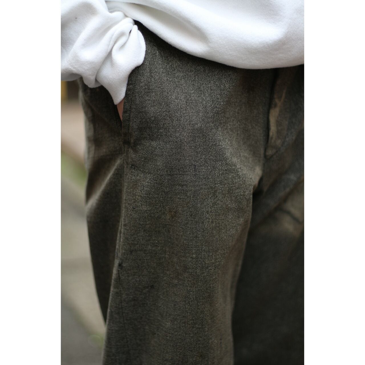 ムラのある糸やラフな織りによって奥行きのある質感を生み出しており、褪せ感も非常に雰囲気のある一本になってます