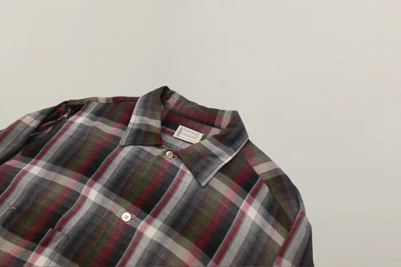 1960’s TOWNCRAFT ombré check rayon shirt 【OTTK-5412】