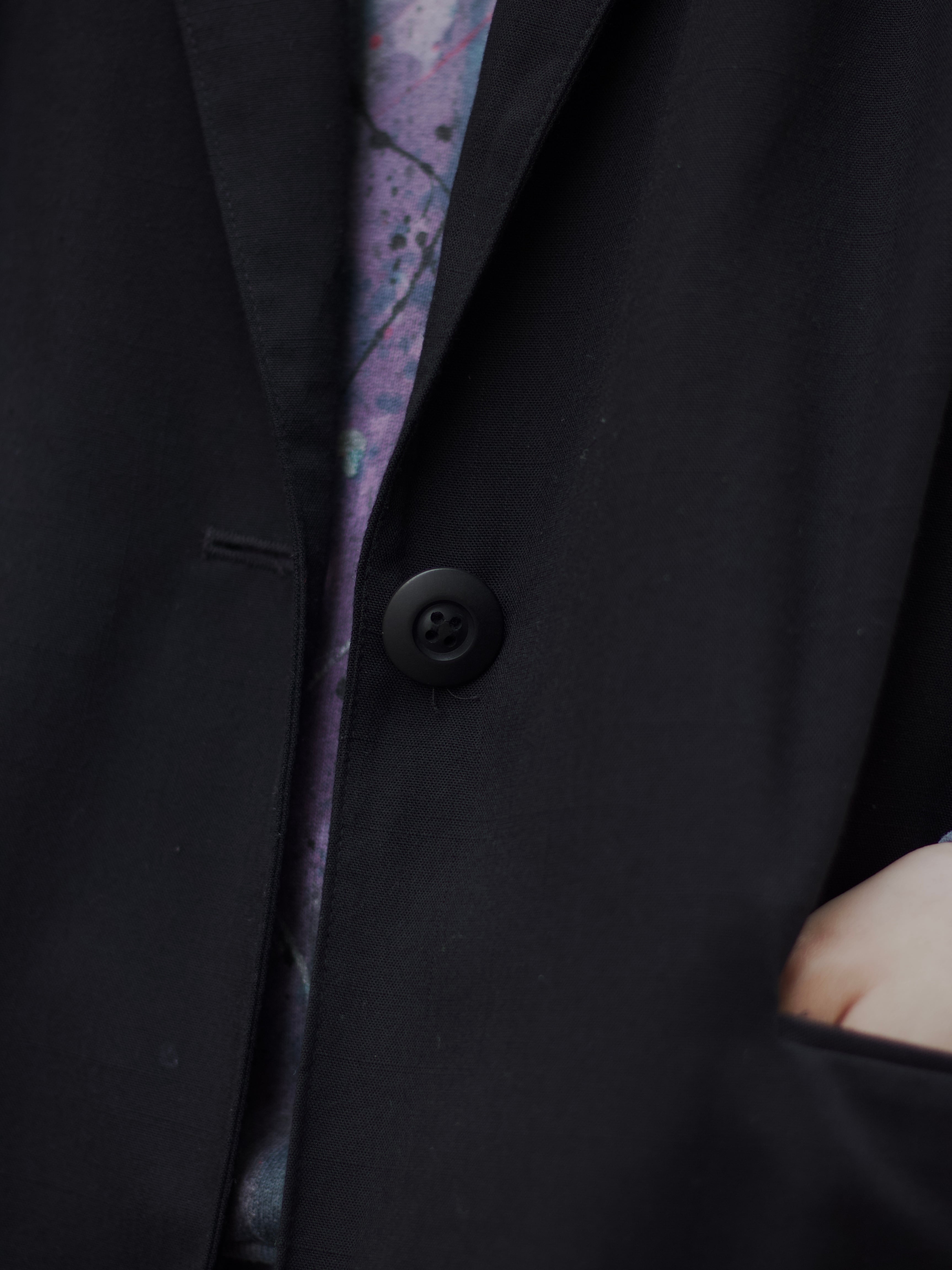 春夏に嬉しいスタイルに組み込んでも重たくならないブラックサマージャケット、間違いないアイテムだと思います。