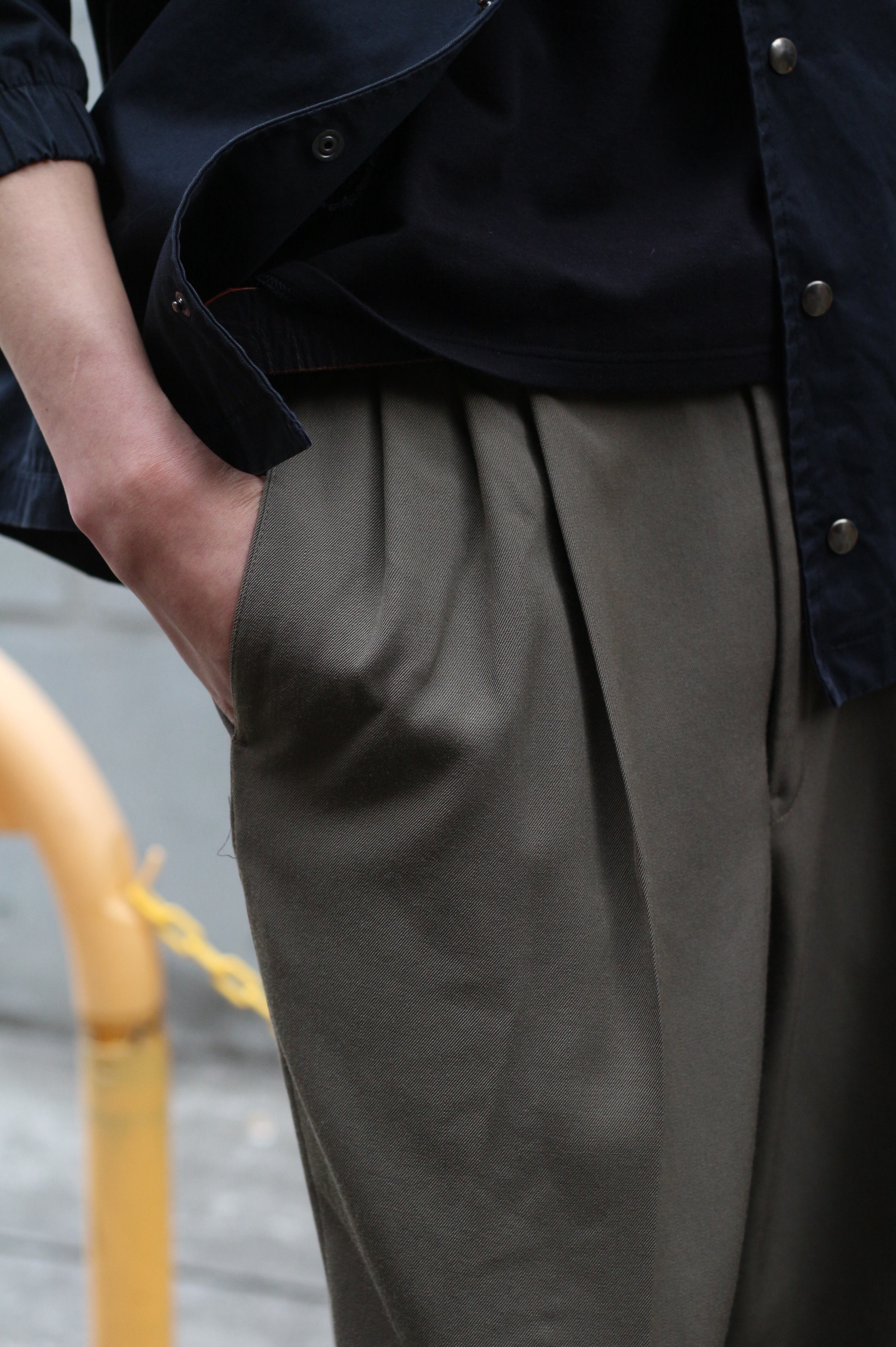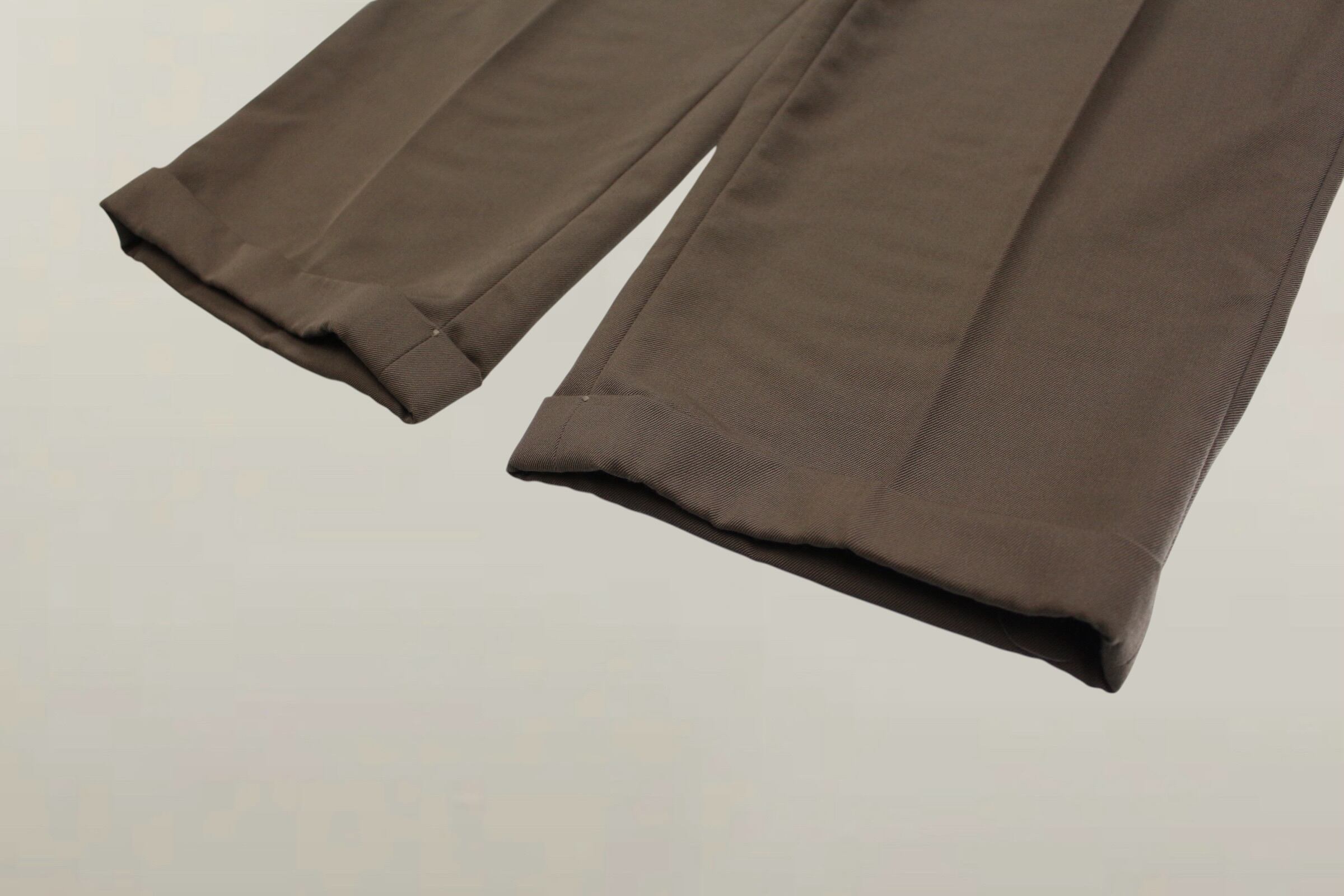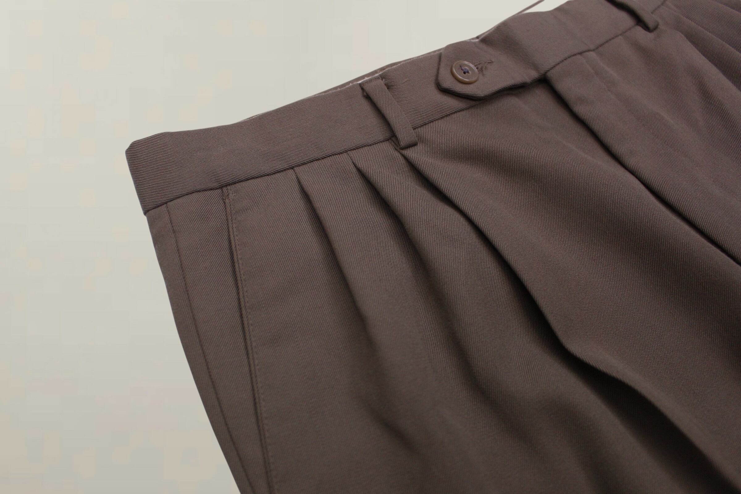 ウールギャバジンならではな起毛はせず、ハリがありながらもコシのあるトロミ生地を楽しんで頂けるファブリック。