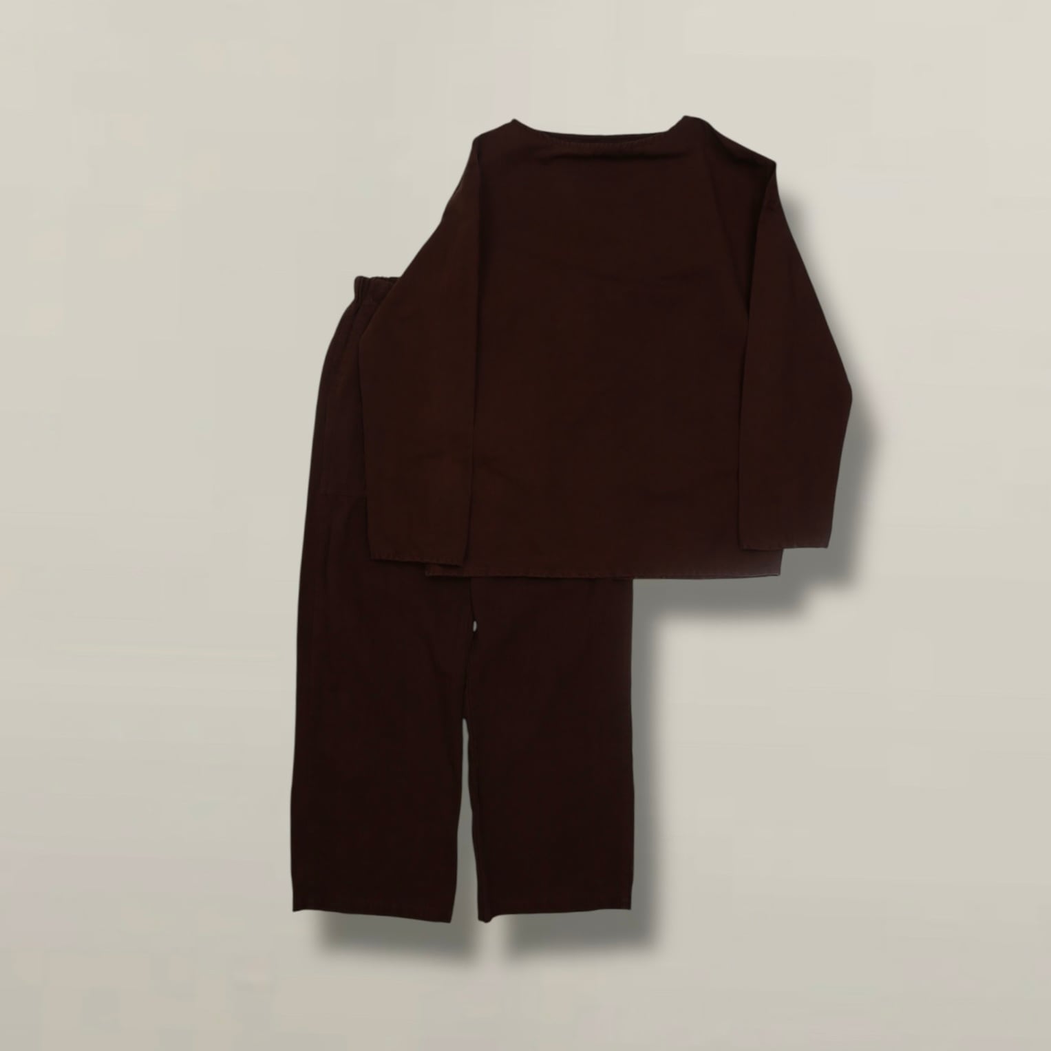 アンティークのリネン生地をリメイクして作られた、カットソータイプのセットアップです。