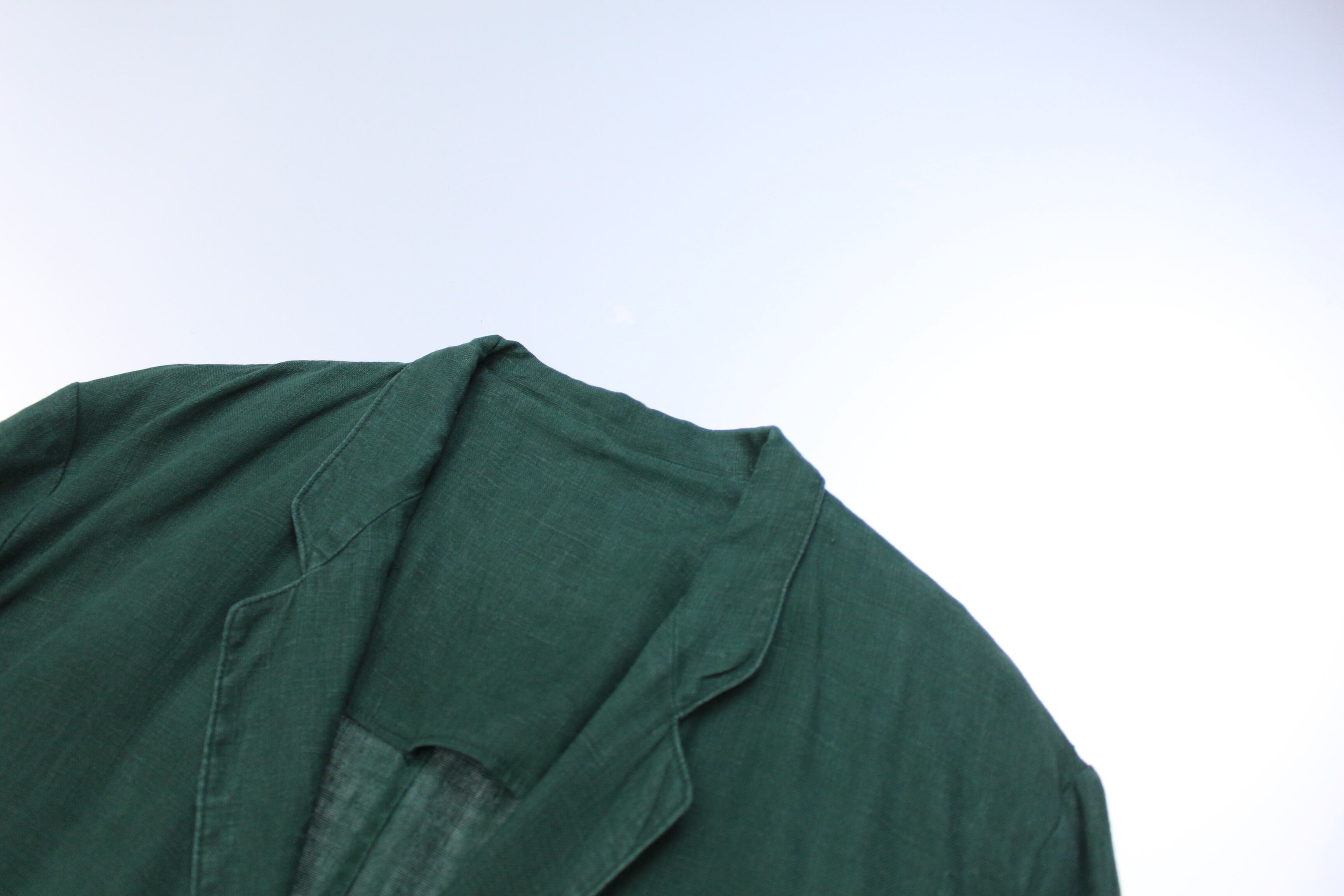 また、深いグリーンのカラーリングとリネンの素材がマッチしている雰囲気抜群な一着。