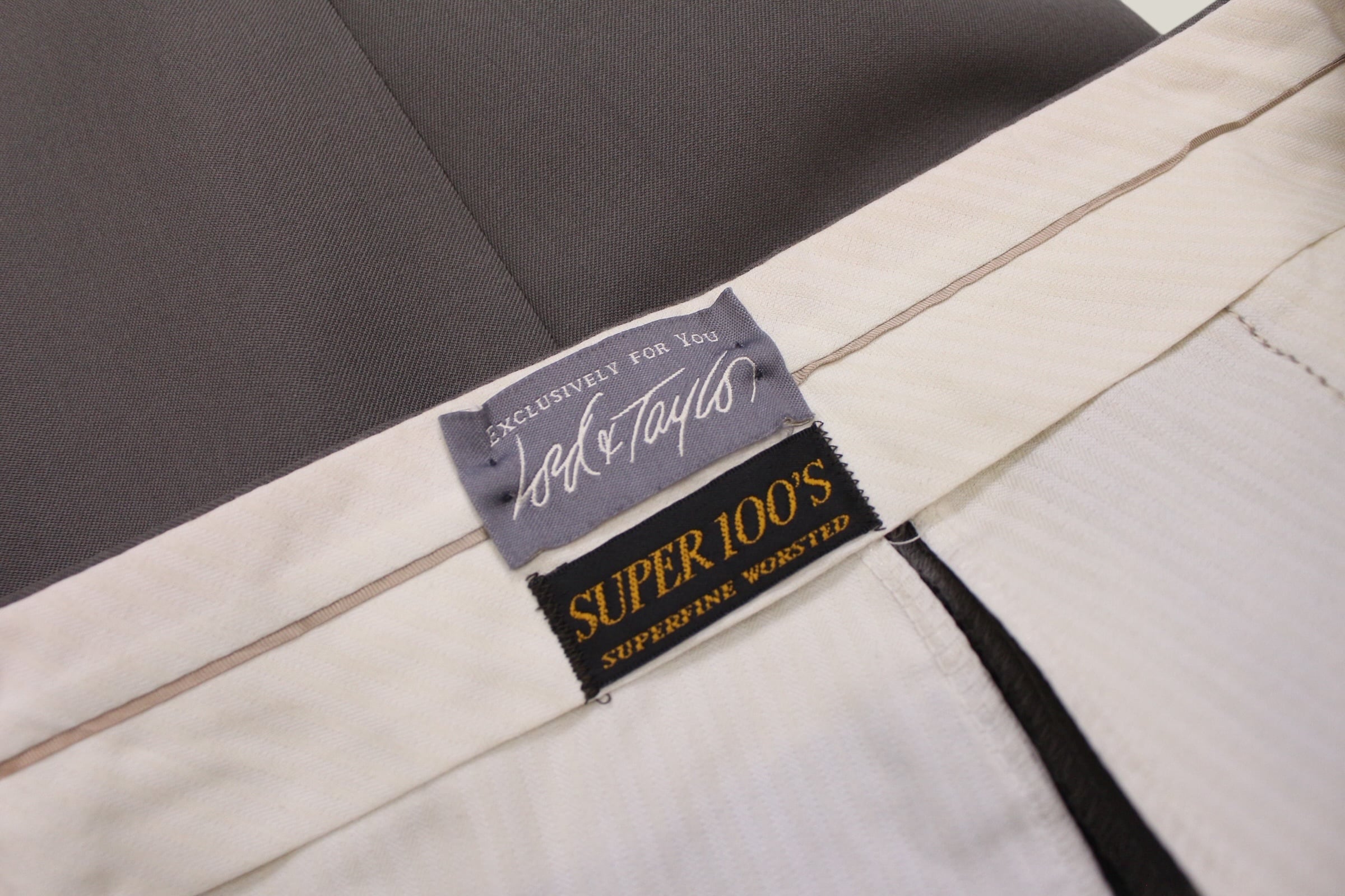 テーパードが少しだけ効いていますが、3タック入っていることで、ワイドになりテーパードが気にならないのでストレートに見えます。
