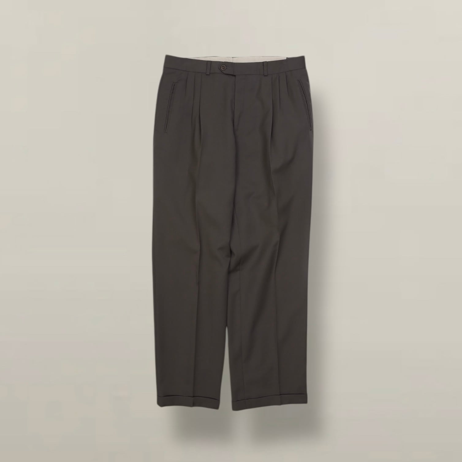 チャコールの色味で3タックのワイドスラックスが入荷です☺︎︎︎︎
