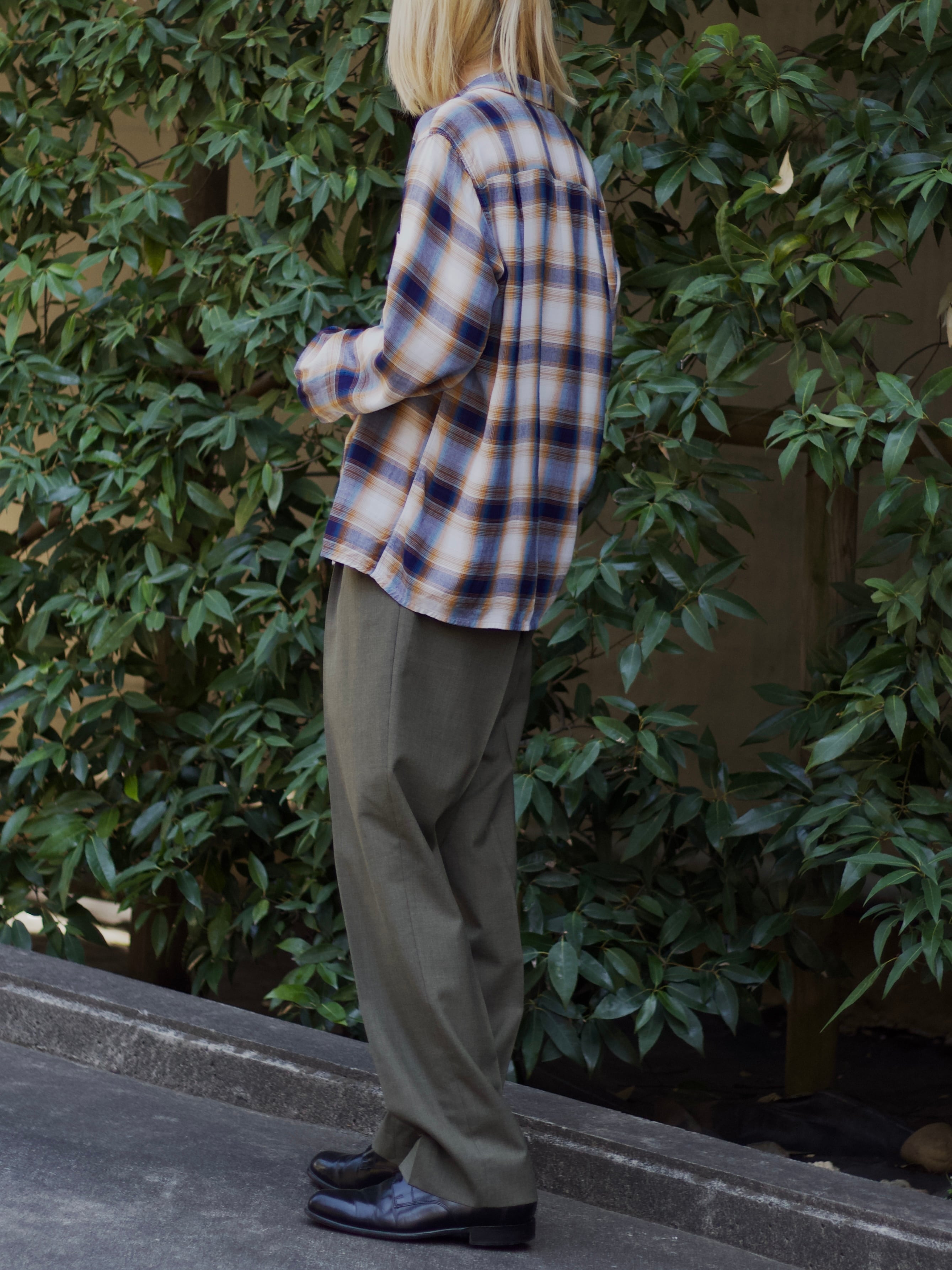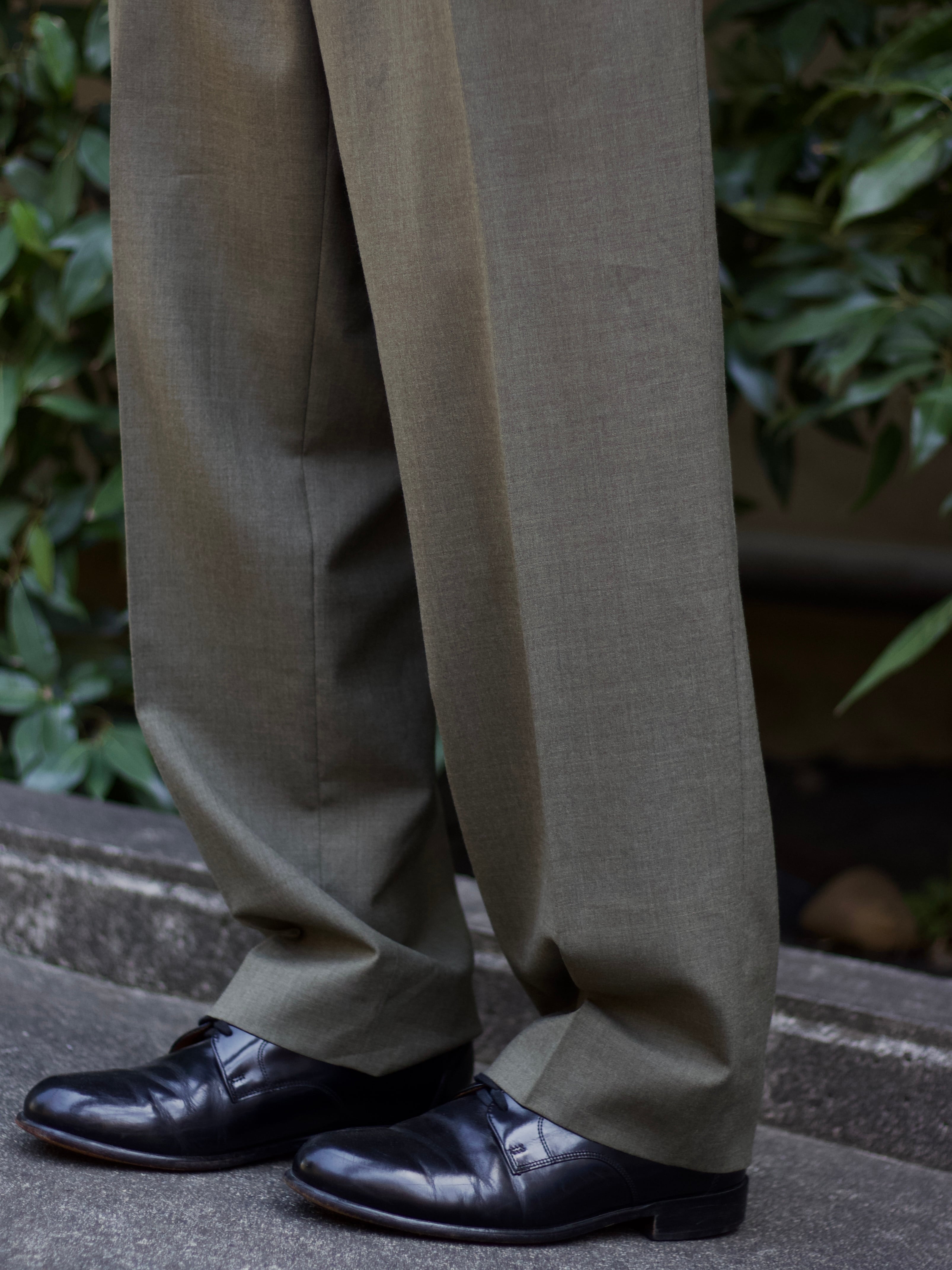 腰回りの2タックに、美しいシルエットのスラックスながら、この色味としっかりとしたワイドさが相まって、カジュアルにも履きこなせる1本。