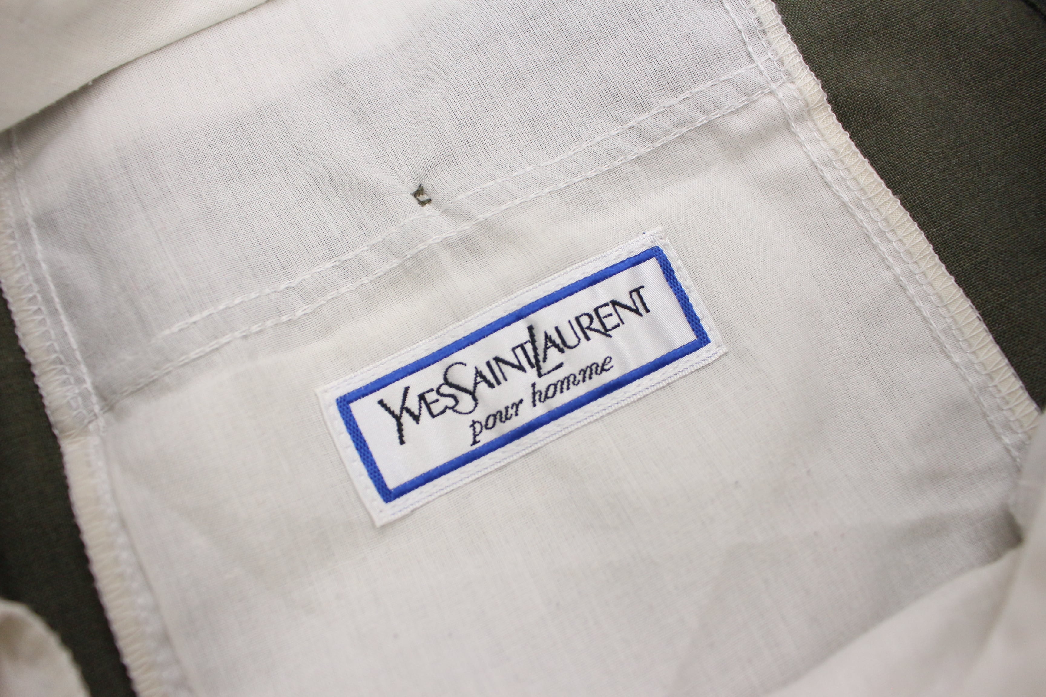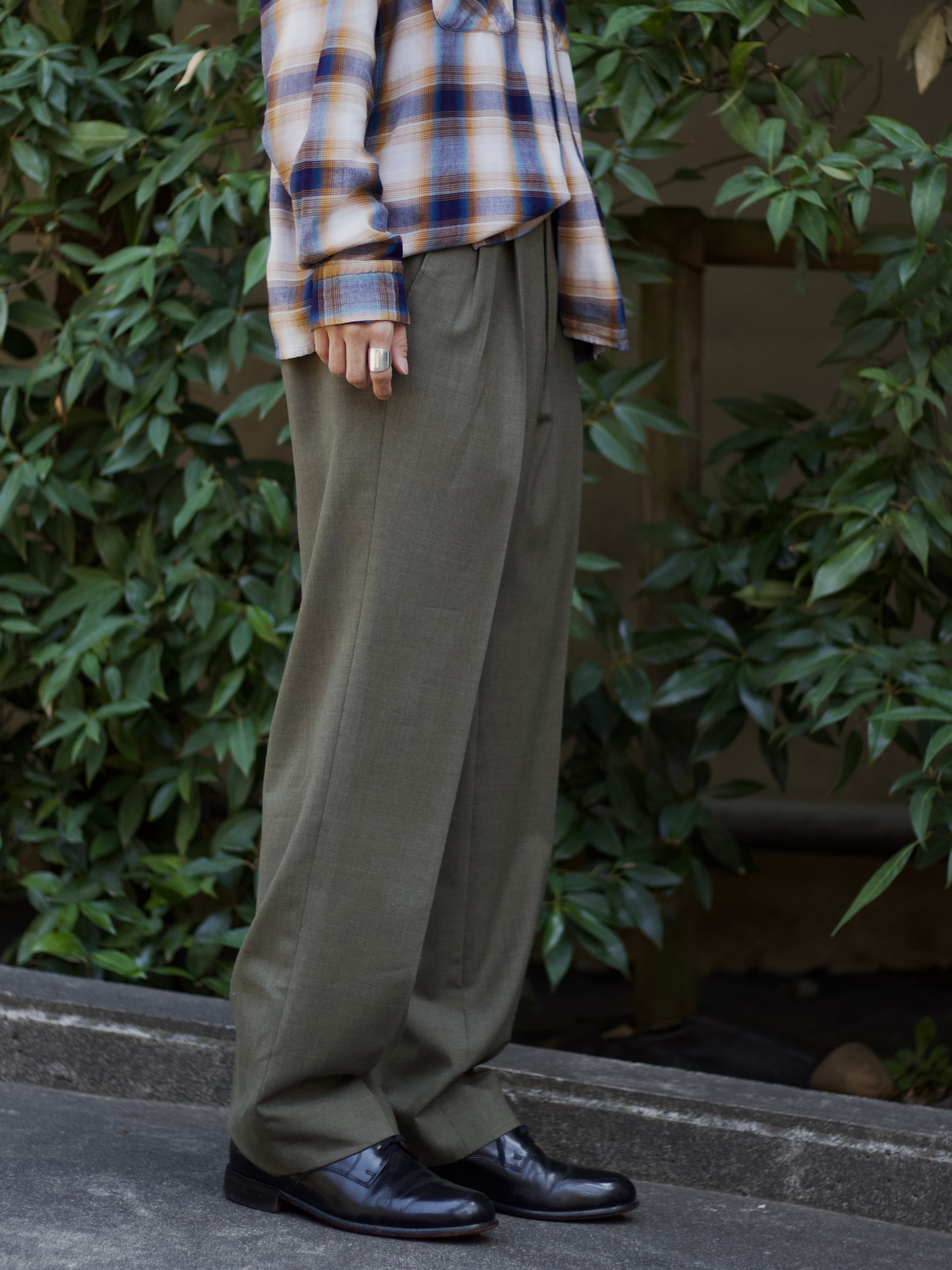 1990s vintage "Yves Saint Laurent" yomogi color wide 2-tuck slacks【CU-9254】