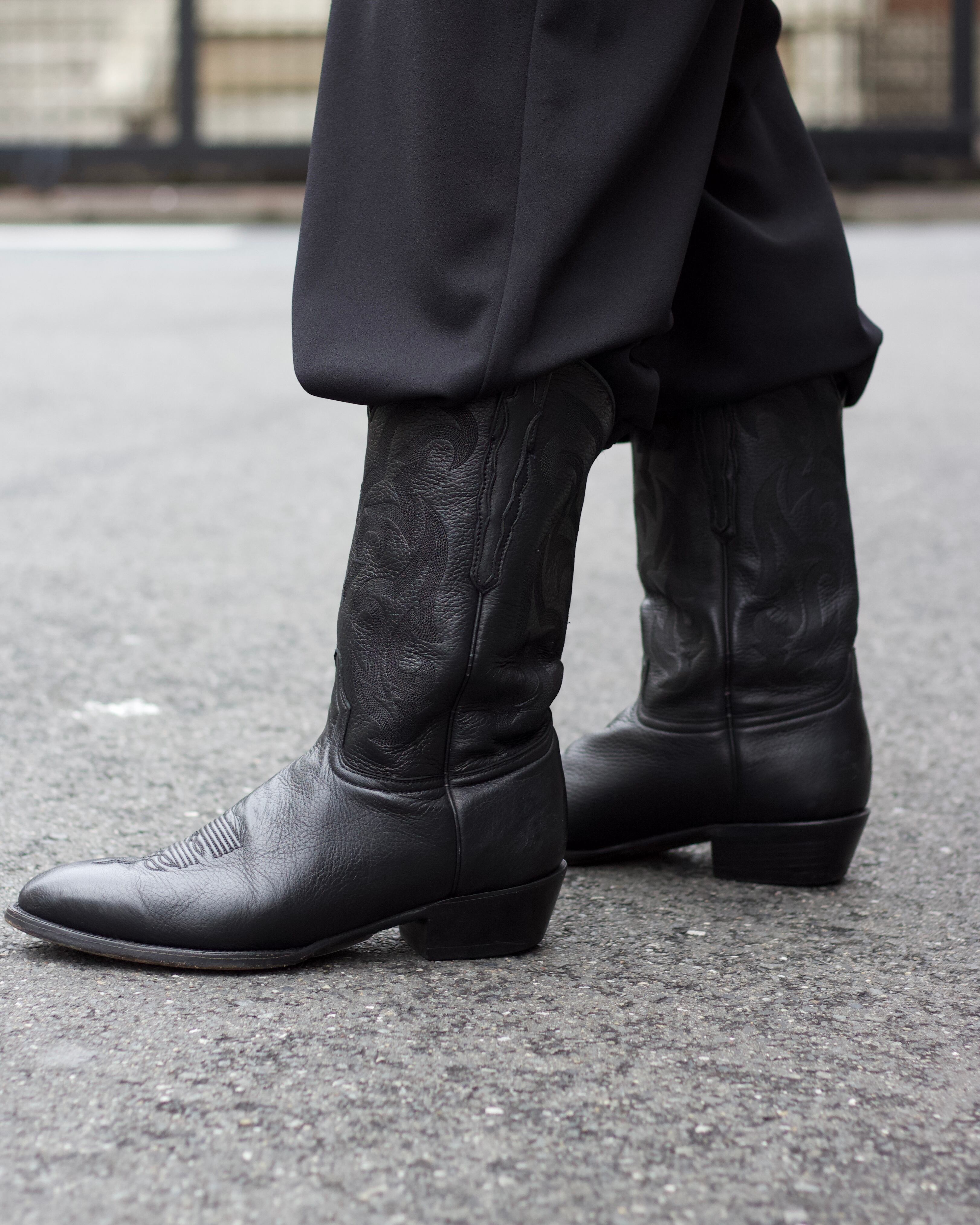 デニムをブーツインして王道のアメカジスタイルを楽しむのはもちろん、スラックスの裾からチラリと覗かせて、モードな着こなしのハズしに使うのも格好良い。