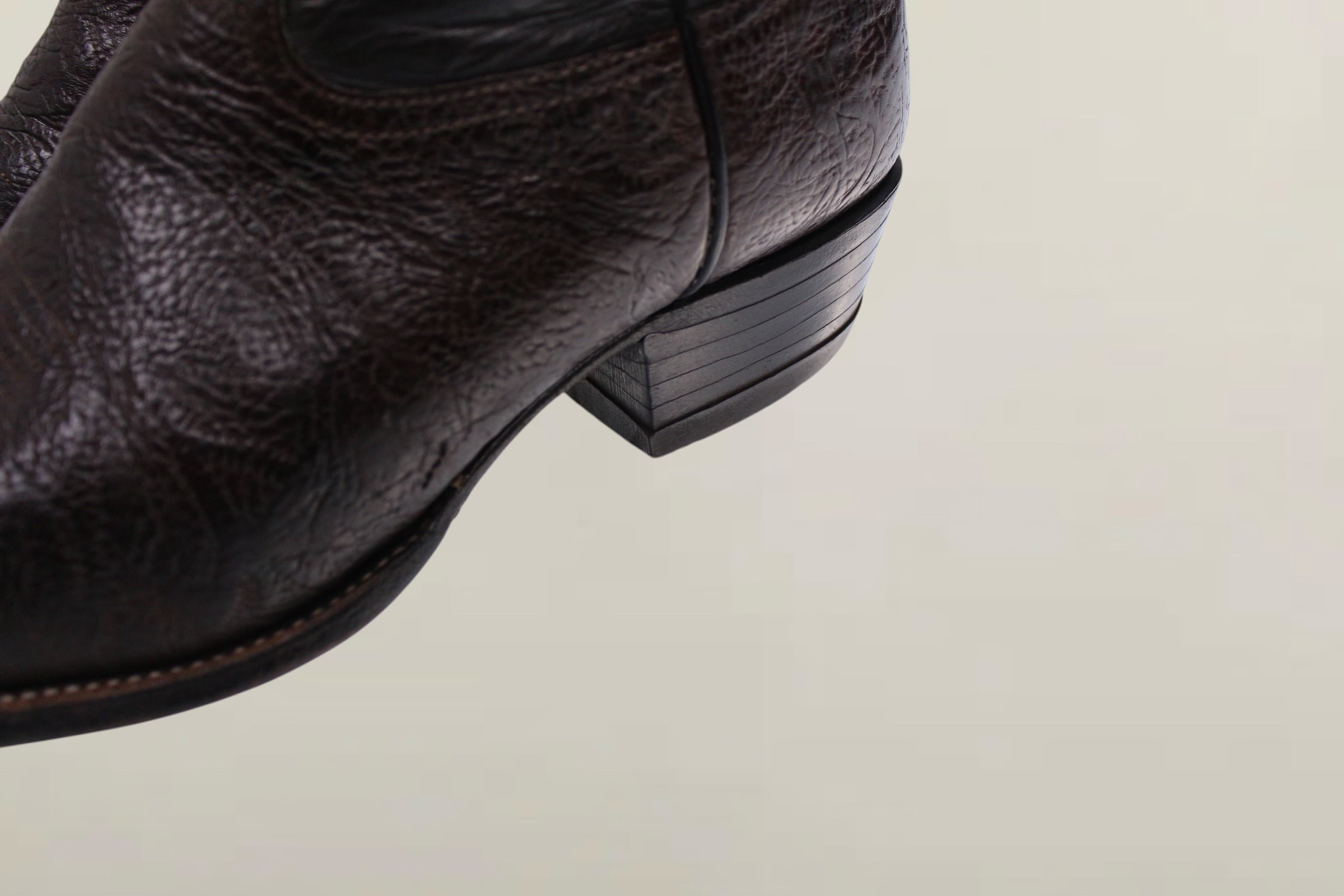 最大の見どころは、シャフト部分に施された多重ステッチの美しさ。