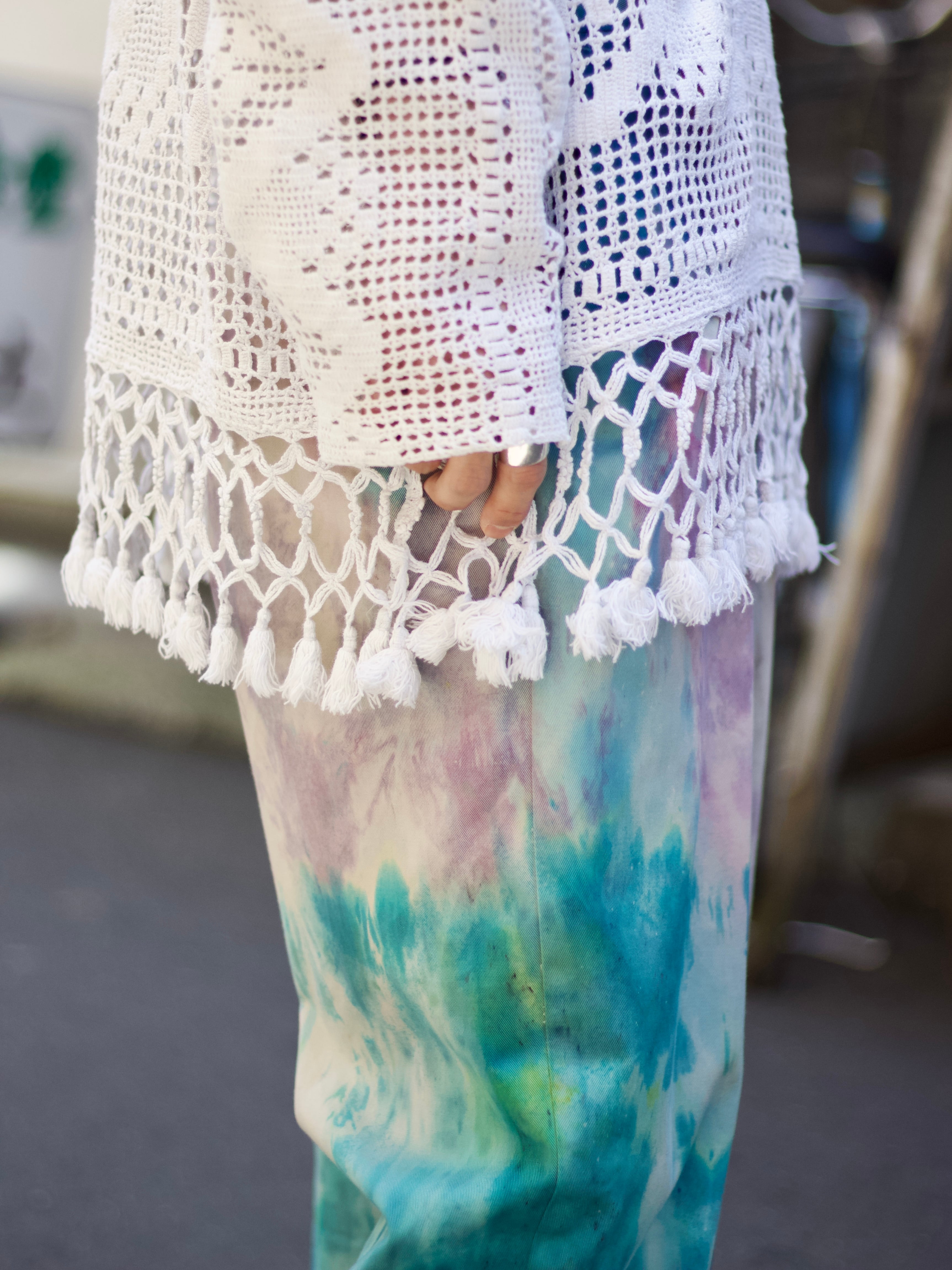 肩幅 59cm / 身幅 60cm / 袖丈 61.5cm / 着丈 78cm(裾フリンジ含む)