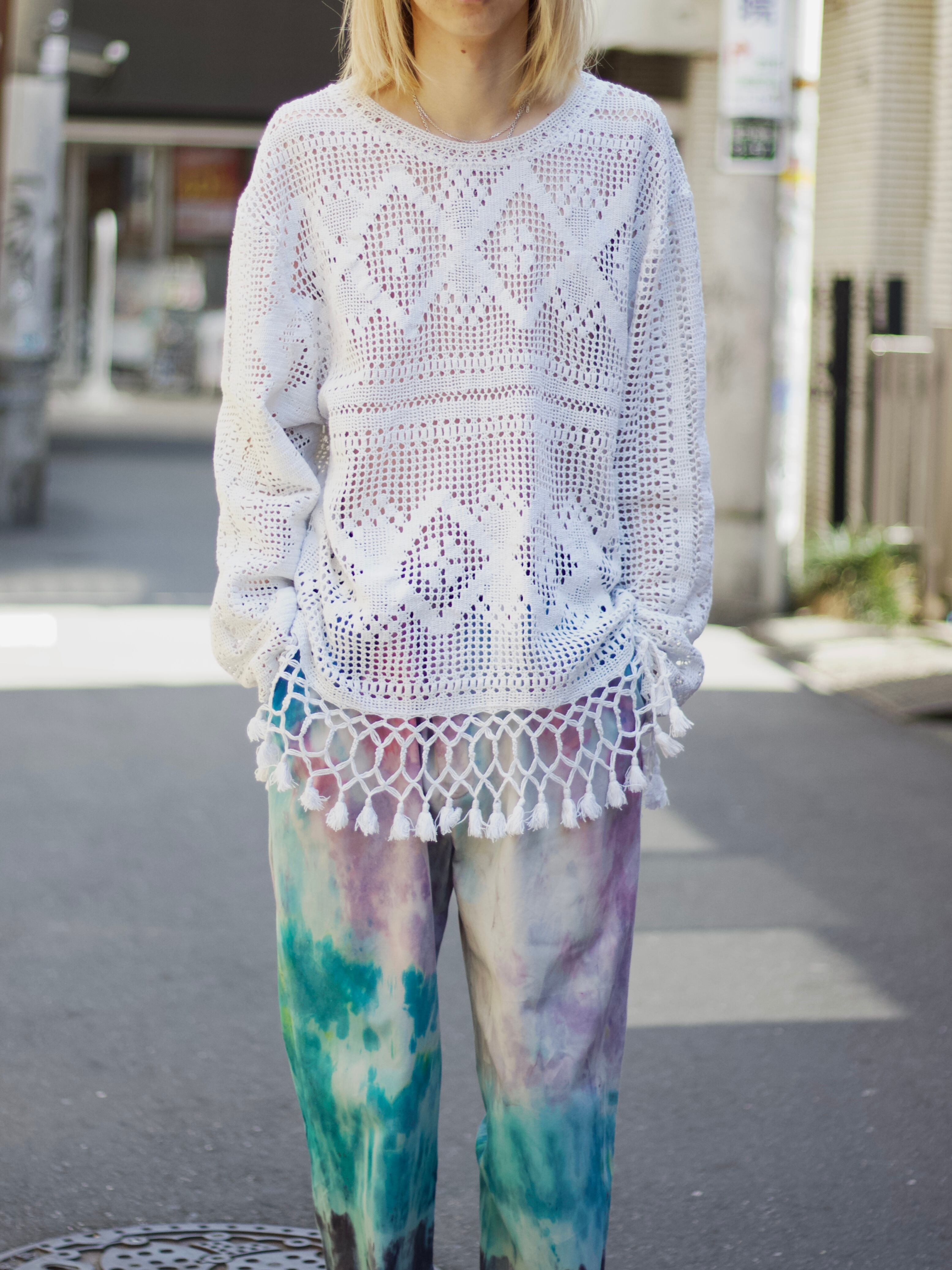 "Antique fabric" white lace designed summer knit sweater【CU-9261】