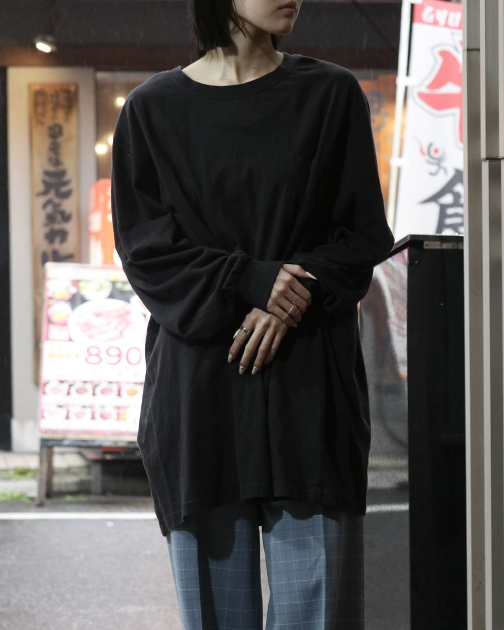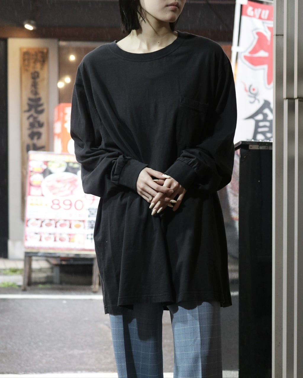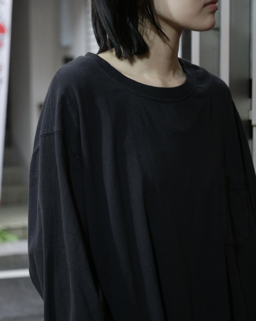 ゆったりとしたシルエットは、ブラックながら重すぎず、どこか抜け感を出してくれる1着です。
