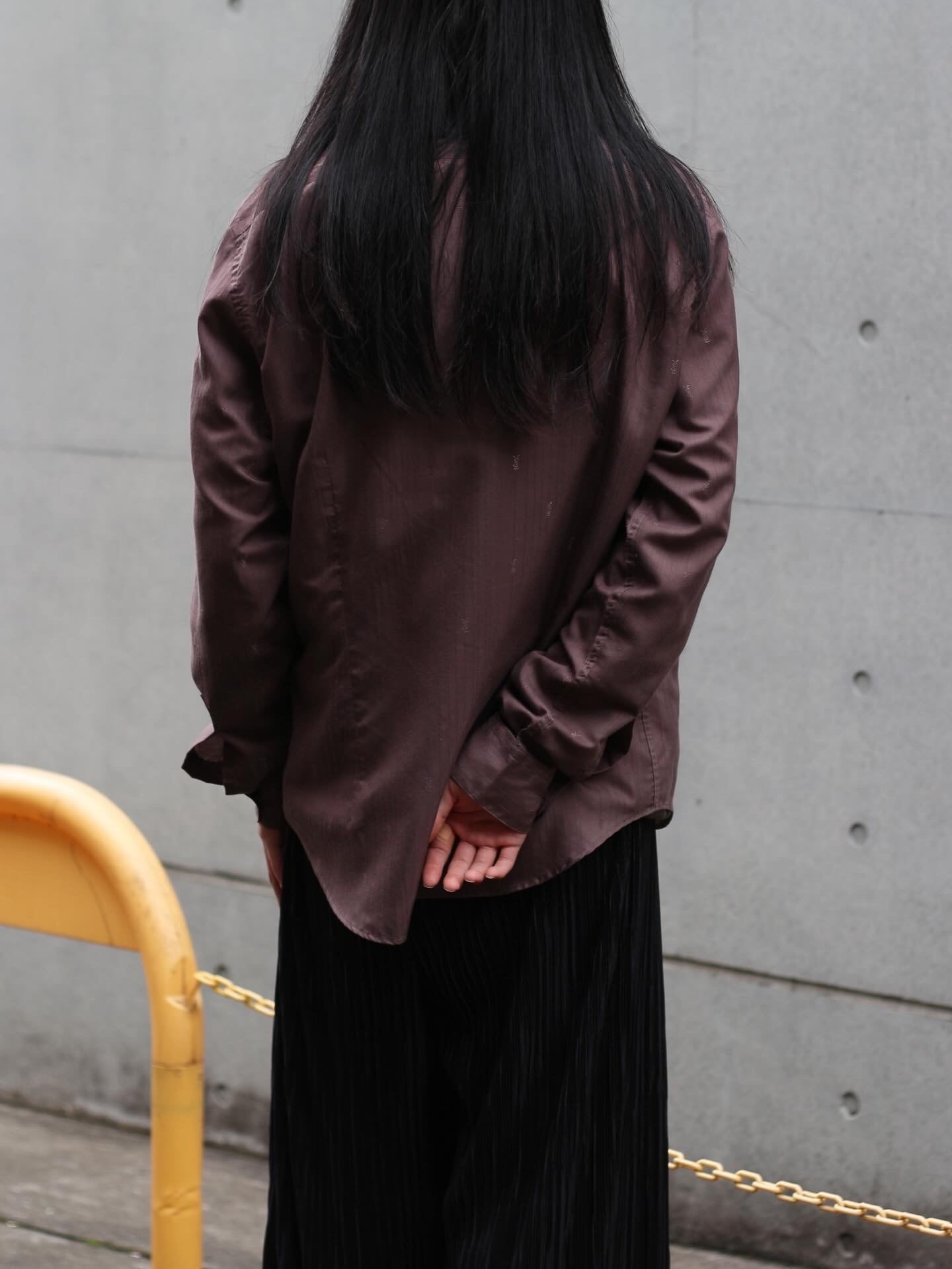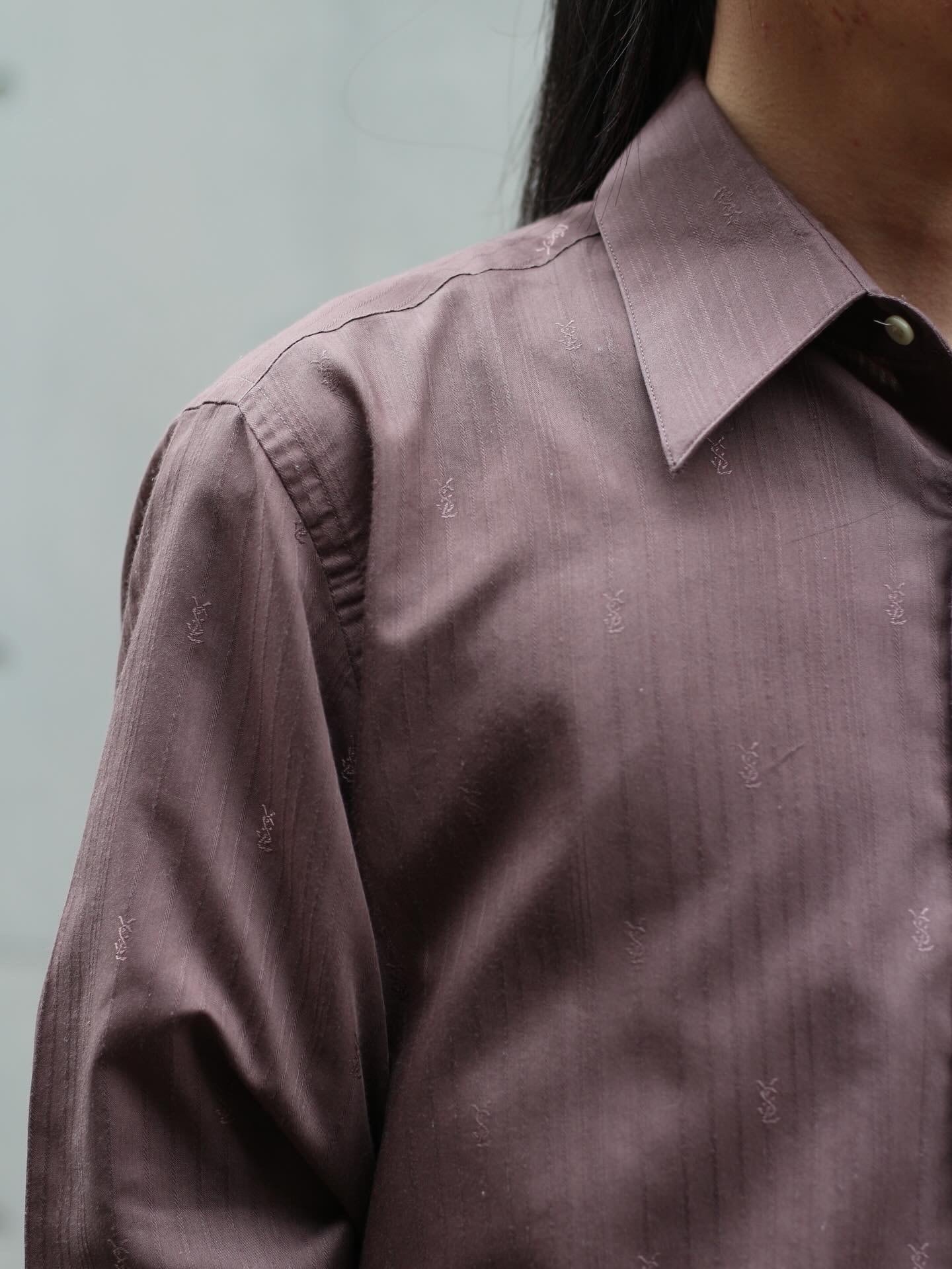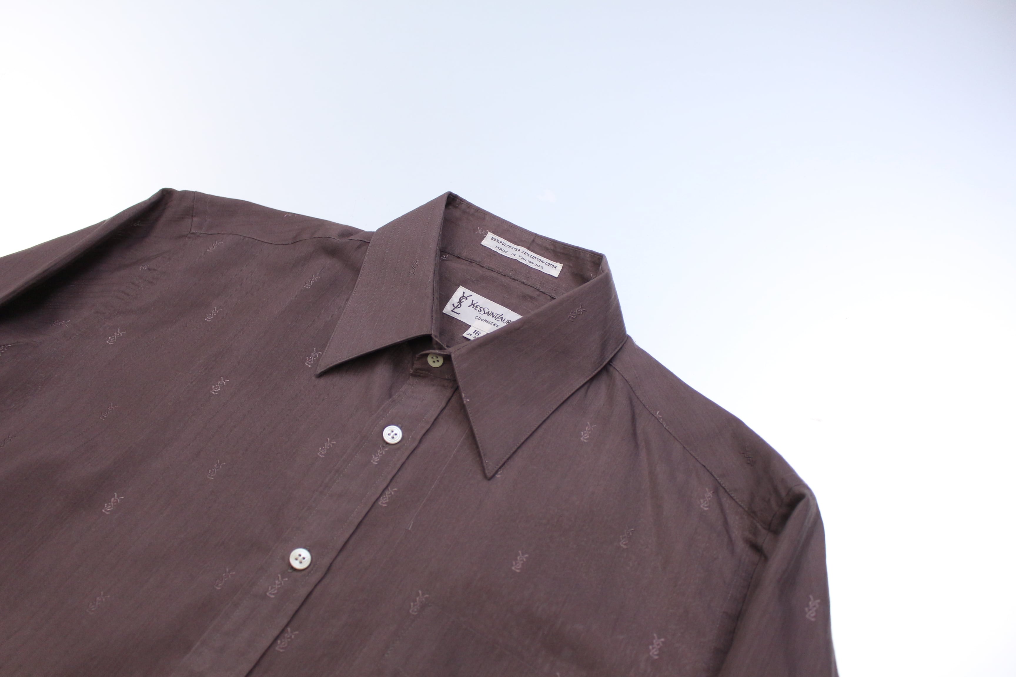 1990s "yves saint Laurent" logo pattern stripe dress shirt【COOT-5200】