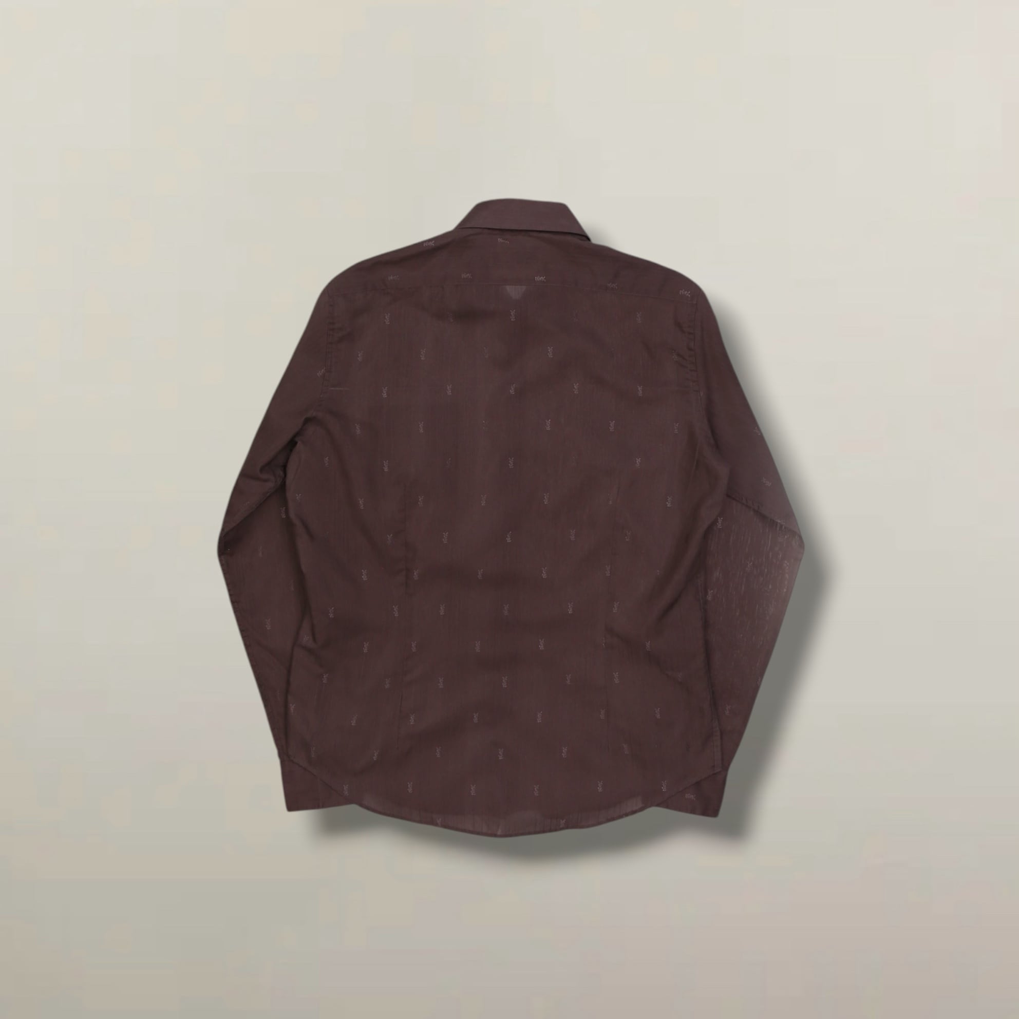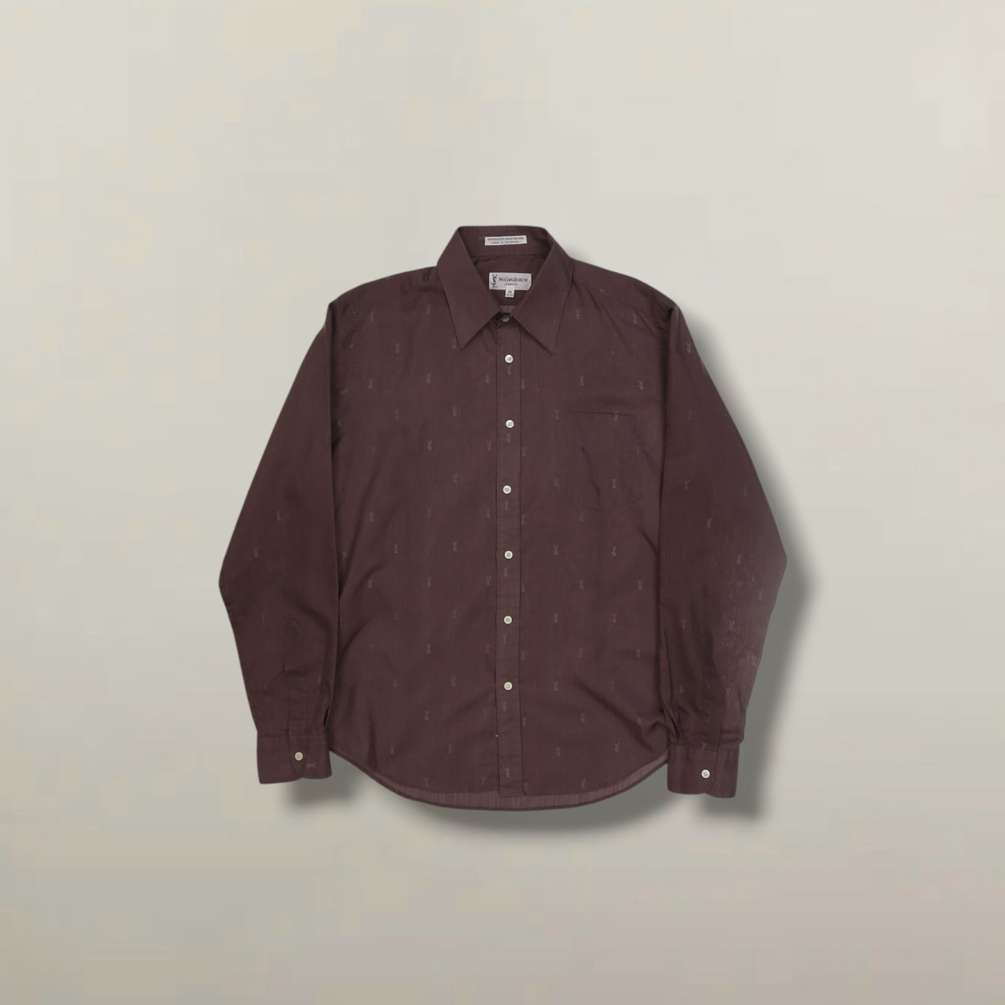 1990年代、yves saint Laurentからロゴ総柄デザインのストライプドレスシャツです。