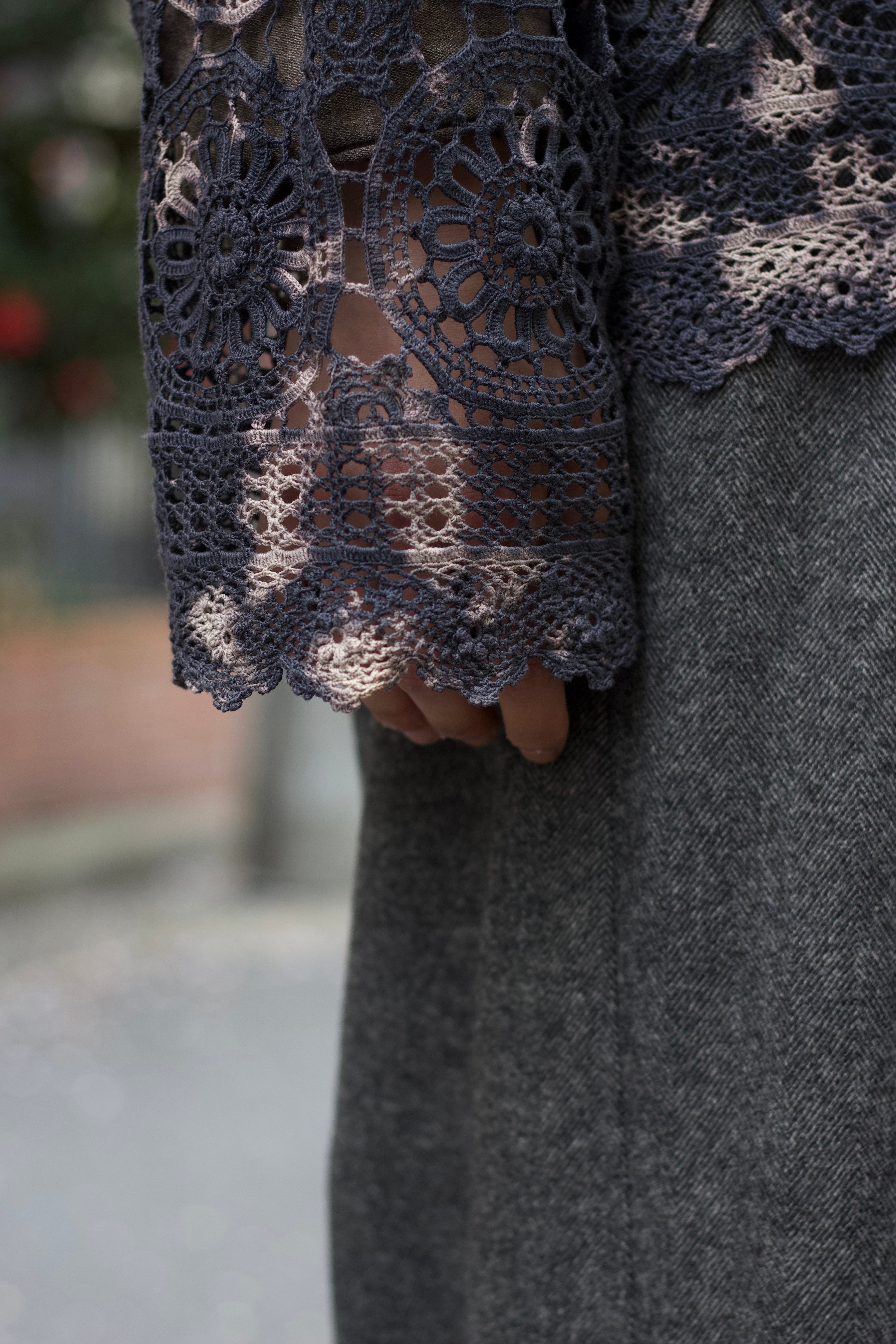 1900年代初頭のアンティークリネン生地を解体し、現代的なメッシュニットへと再構築。