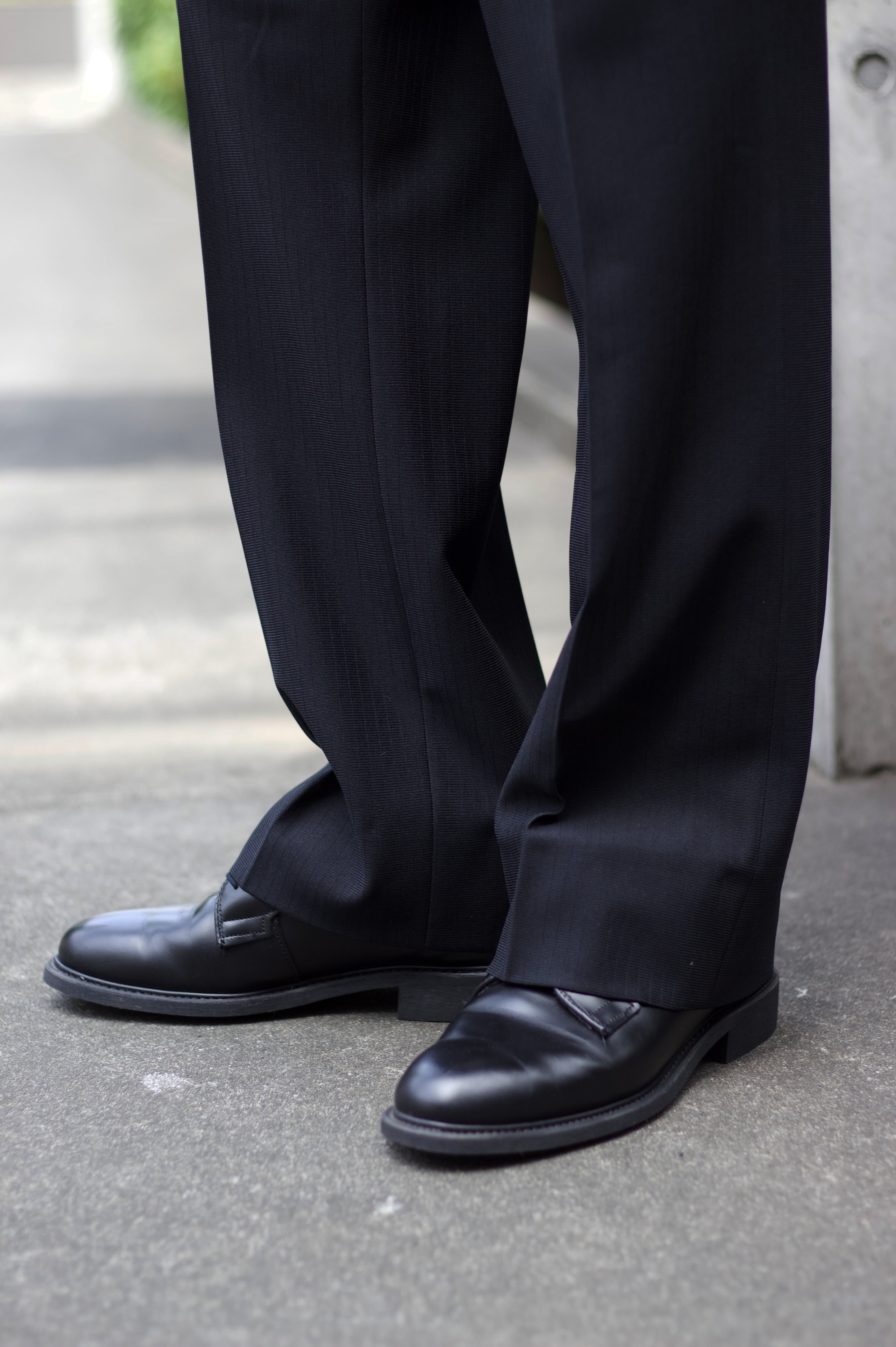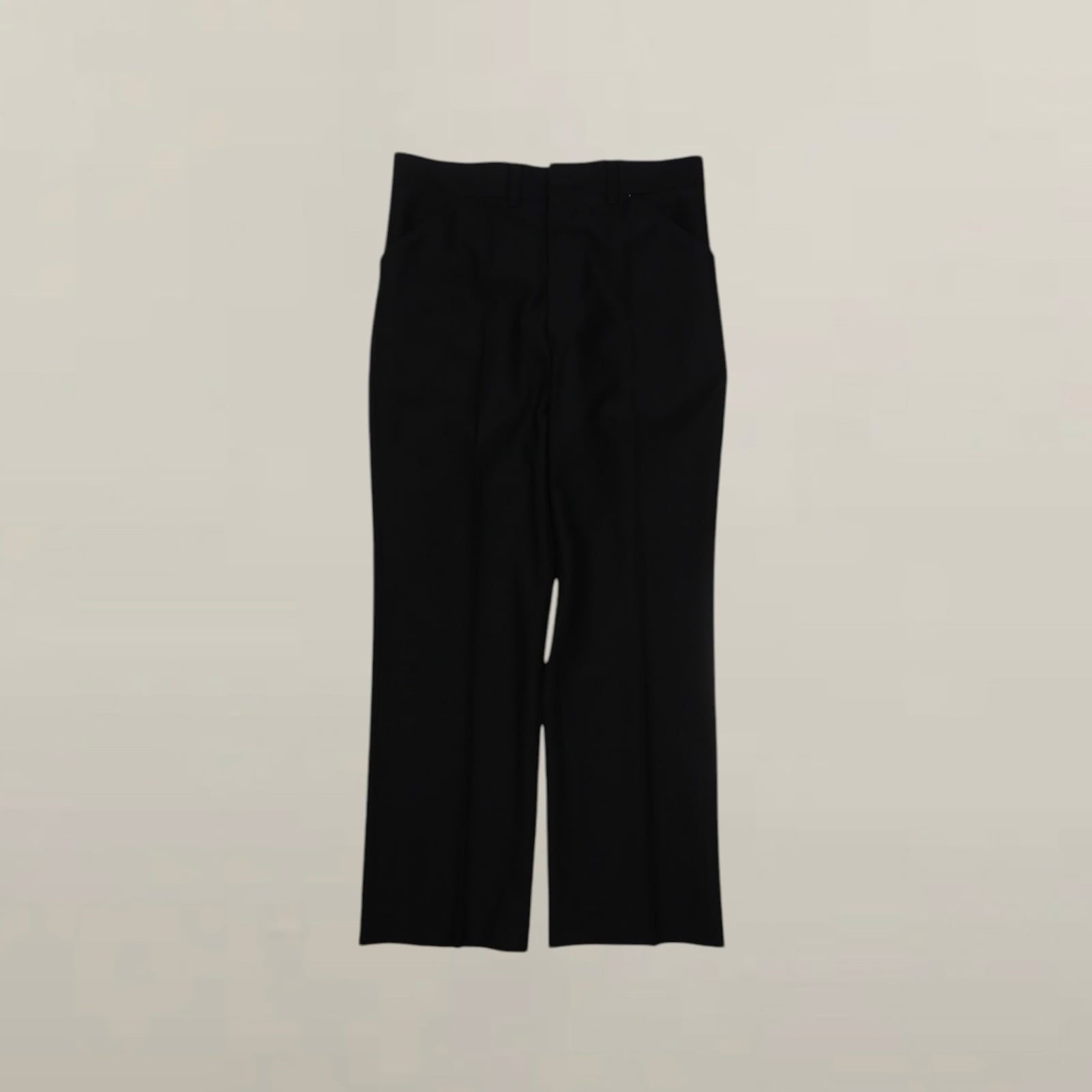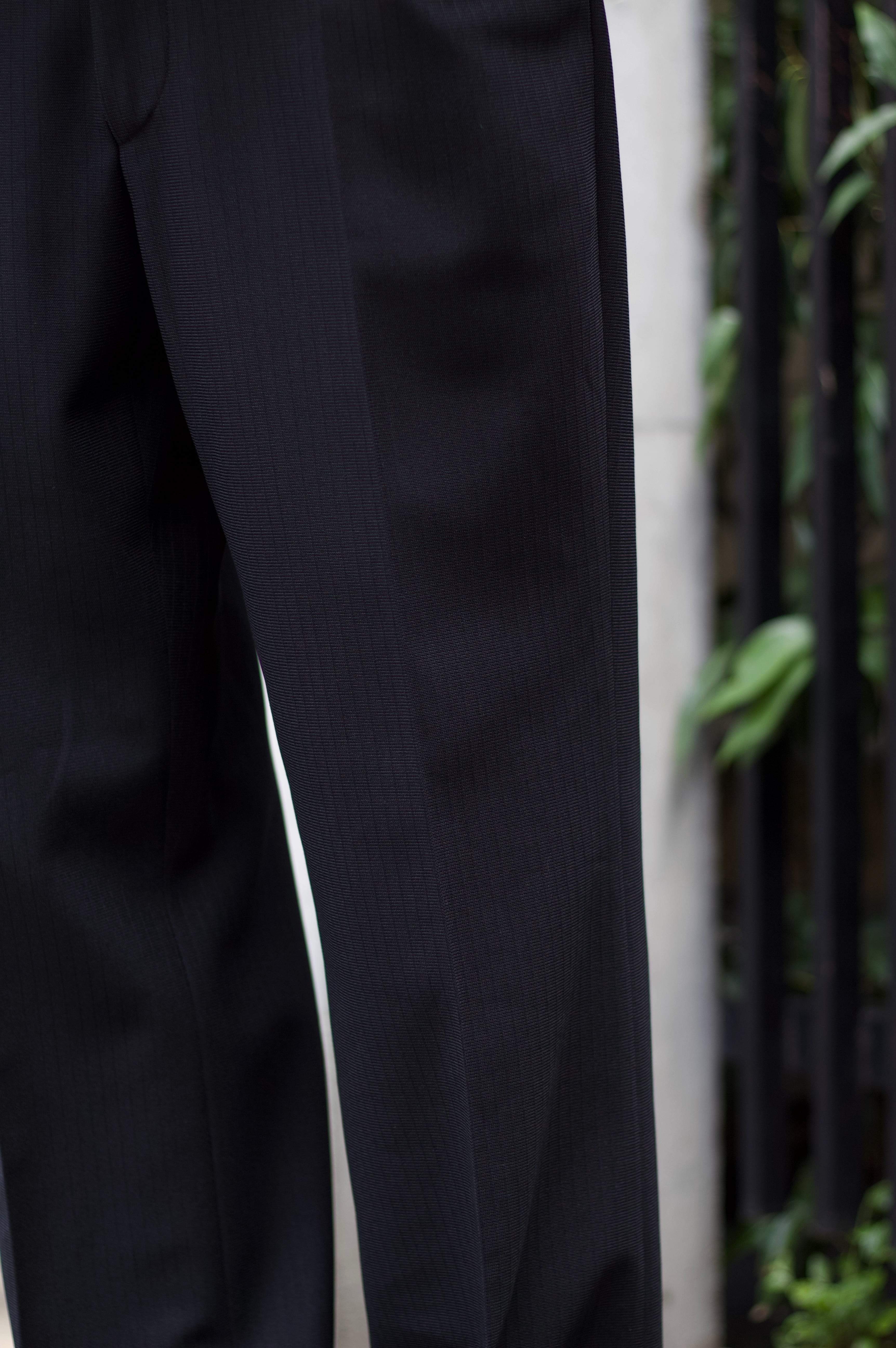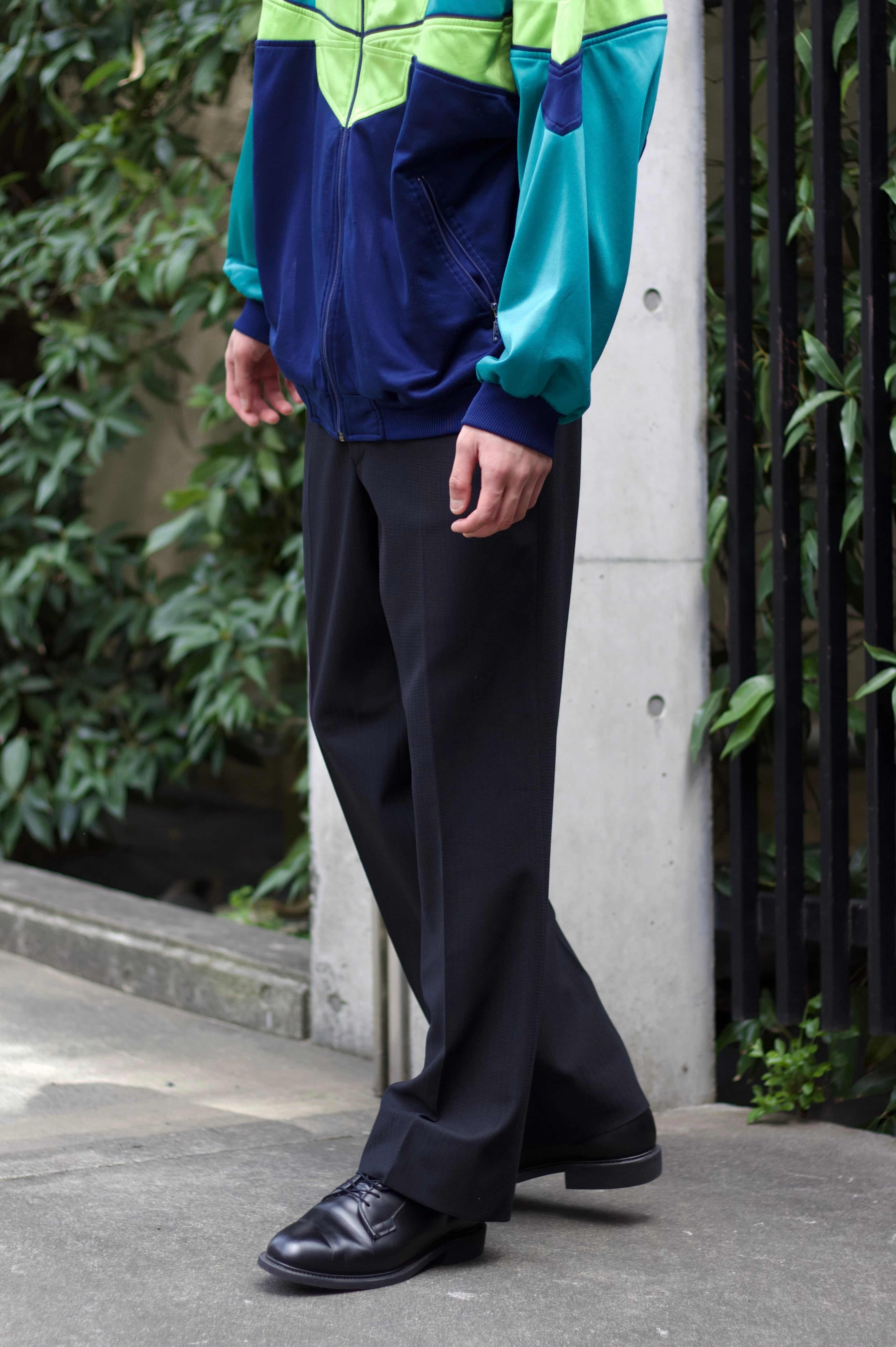 当時のスラックス特有の、ハリがありつつもサラッとした質感のポリウール素材は、シワになりにくく、センタープレスが綺麗に残るのが魅力です。