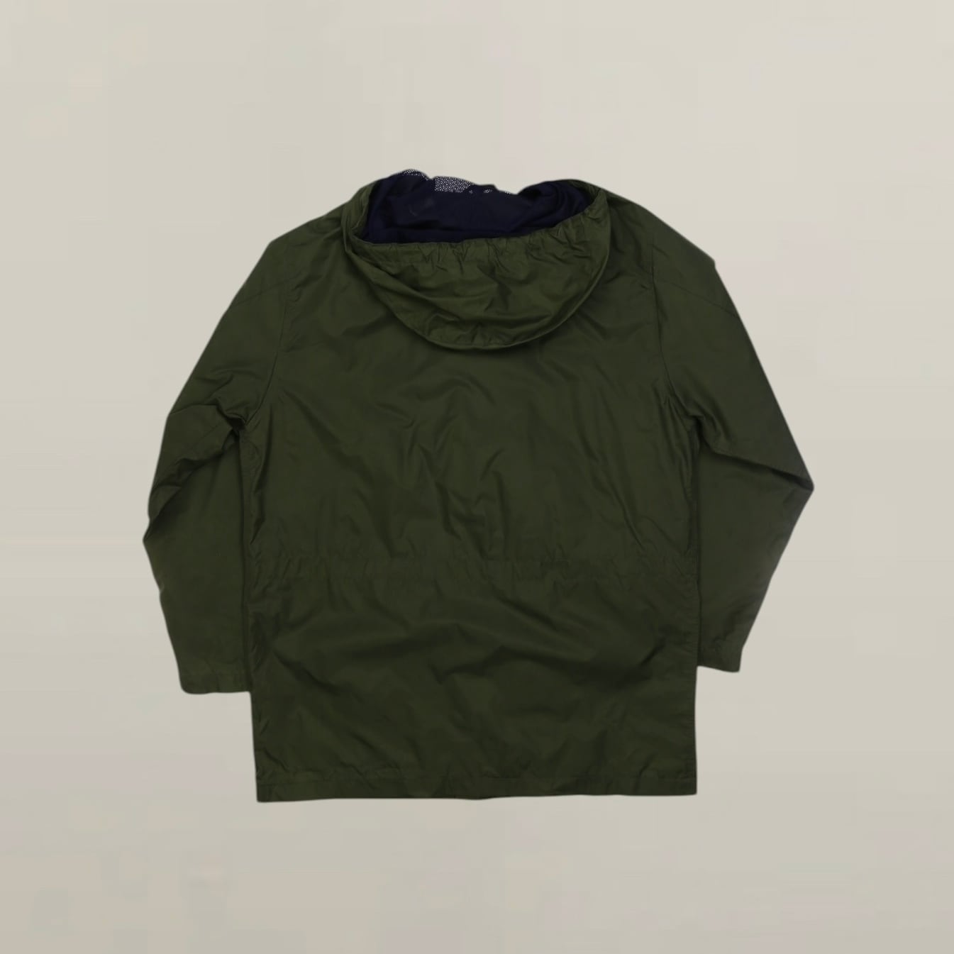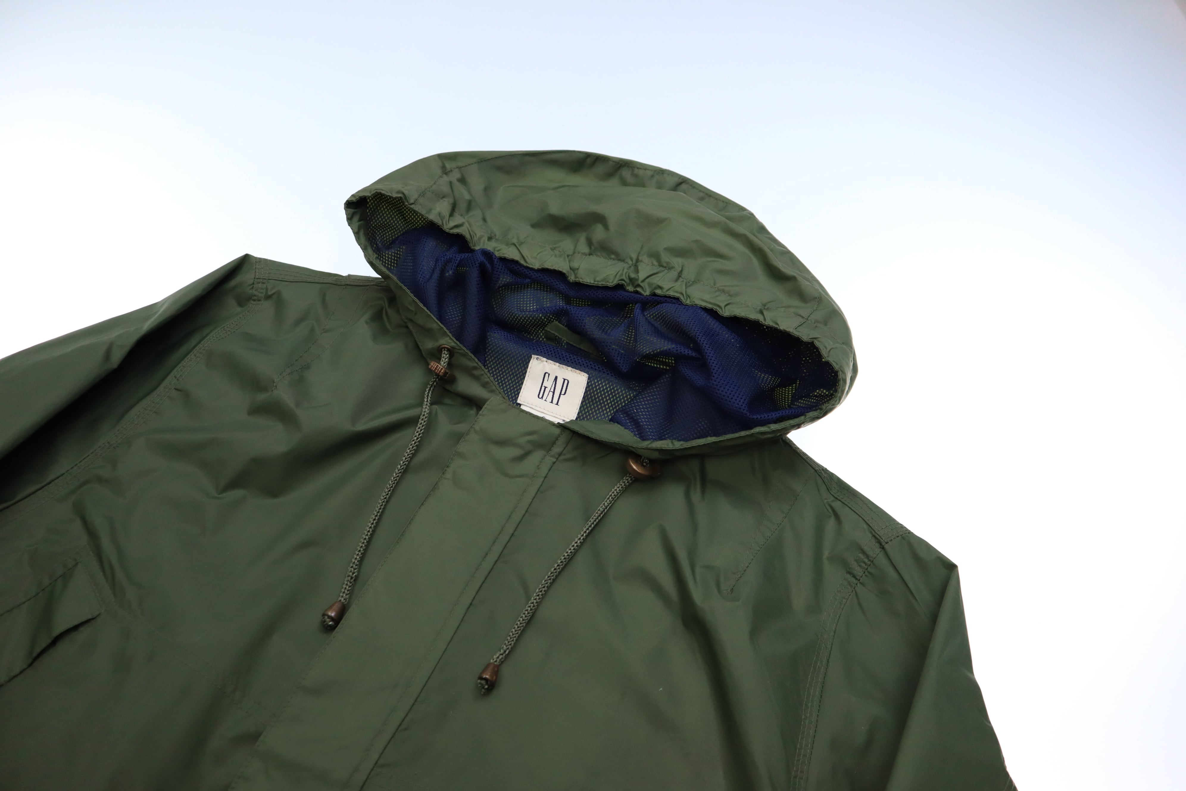 硬めのナイロン生地と、比翼デザイン、フードなどかなり洗練された1着。