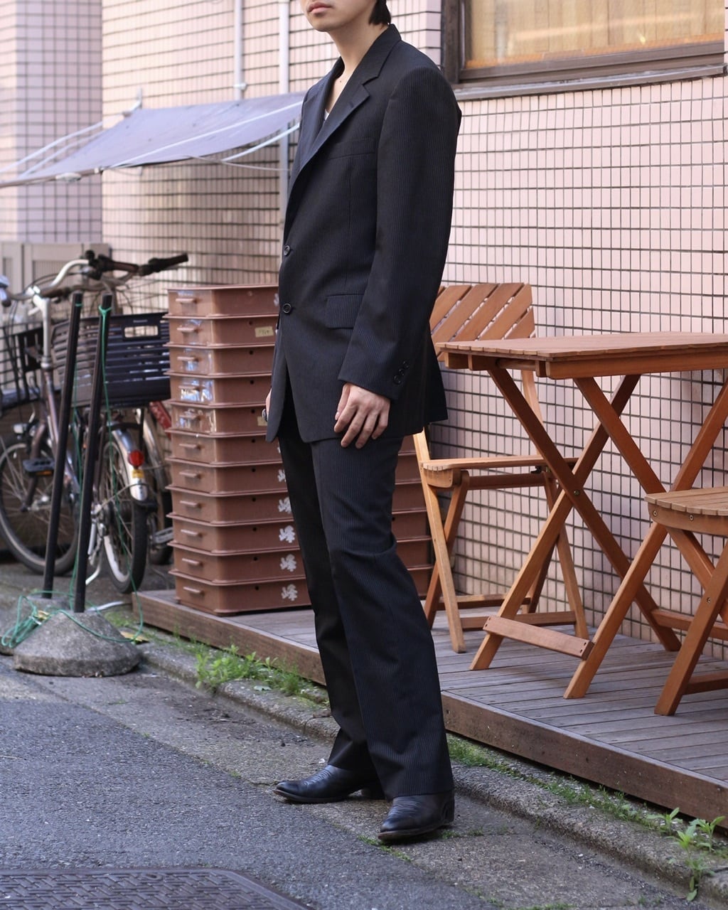 1980's suit setup / tailored jacket single & no-tuck slacks【MM-1369】