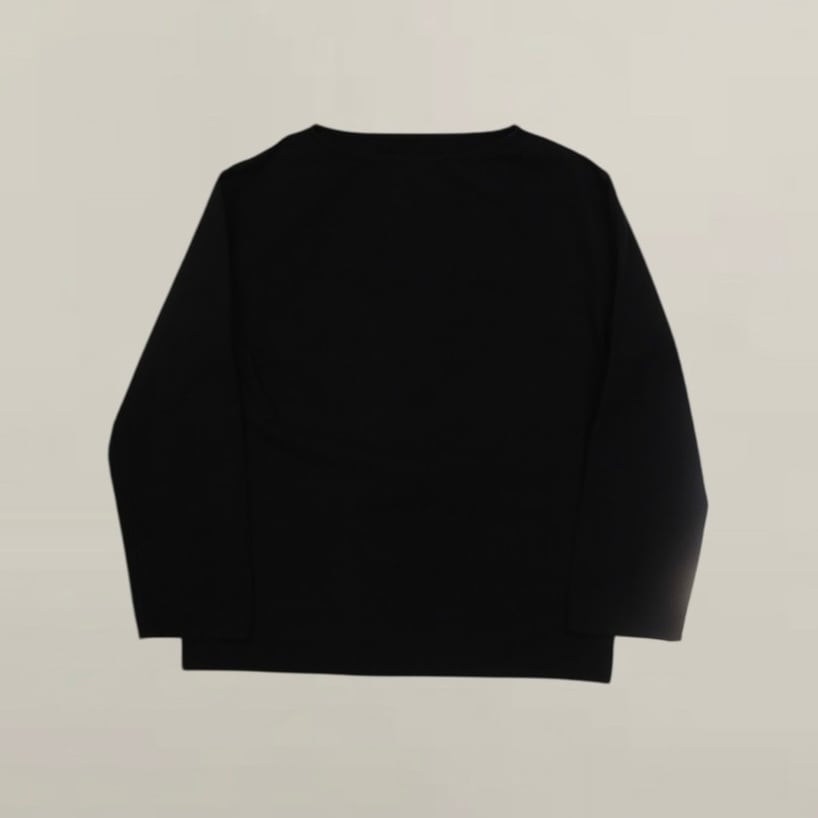クルーネックの広がりが程よいラフさと上品さを兼ね備えています。
