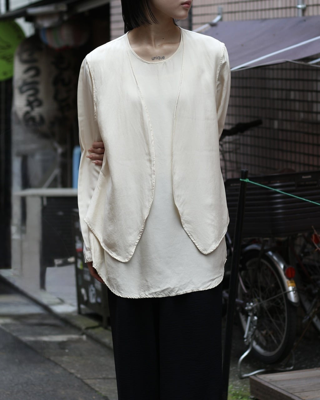 1990’s "GIORGIO ARMANI" faux layered silk fabric cutsewn【MM-1388】
