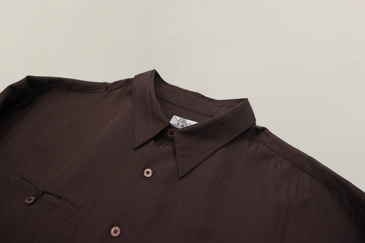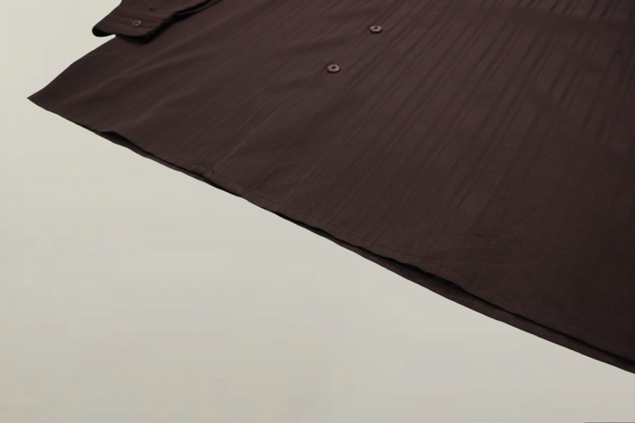 艶感のある深いブラウンに織りの同色ストライプが野暮ったさも消してくれてるのでより身を委ねて着やすいかと!